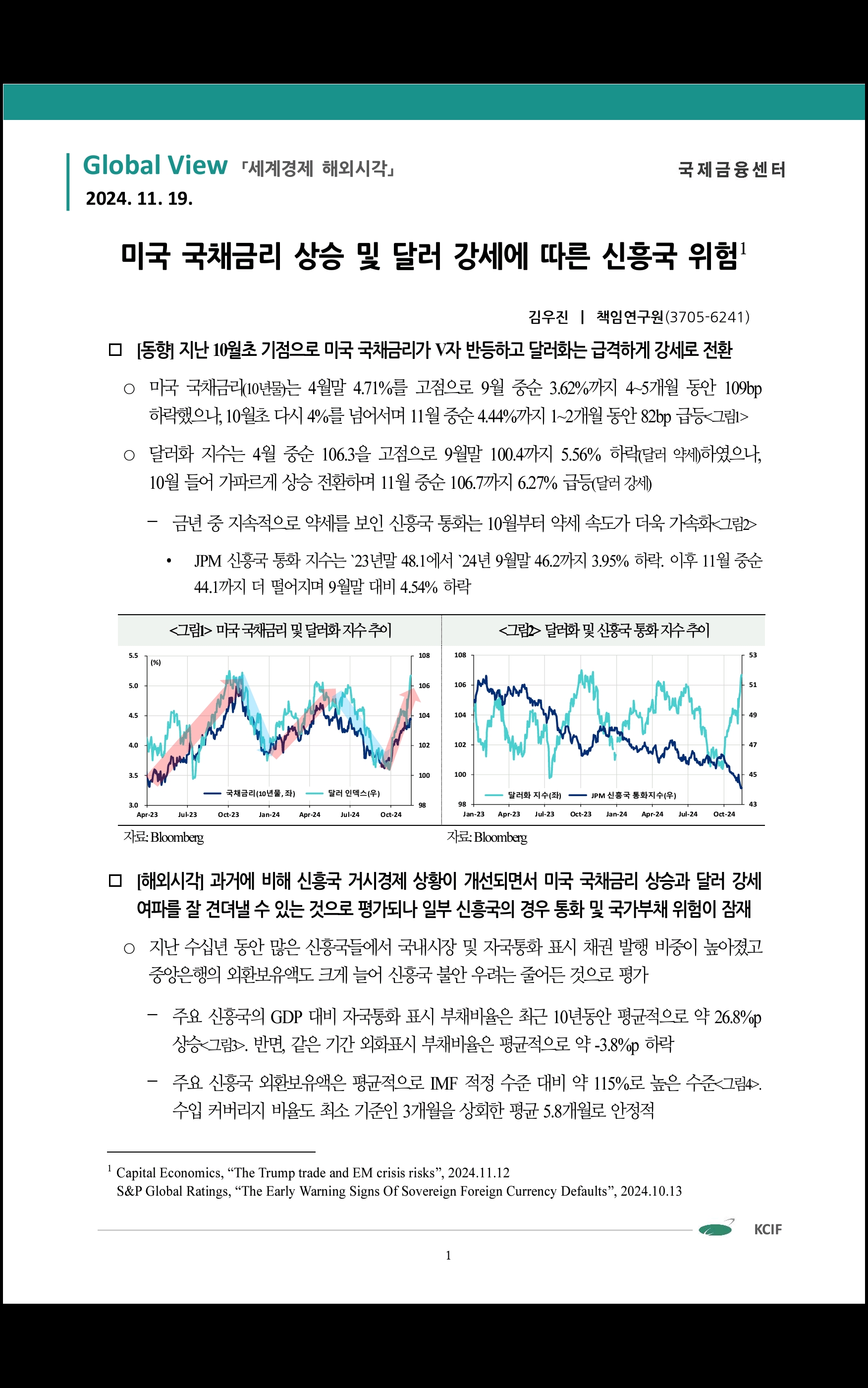 미국 국채금리 상승 및 달러 강세에 따른 신흥국 위험 (국제금융센터)