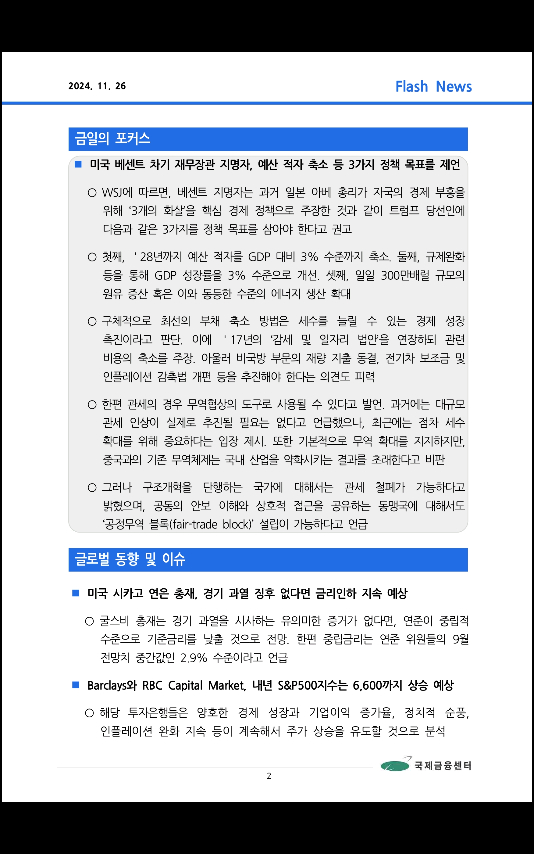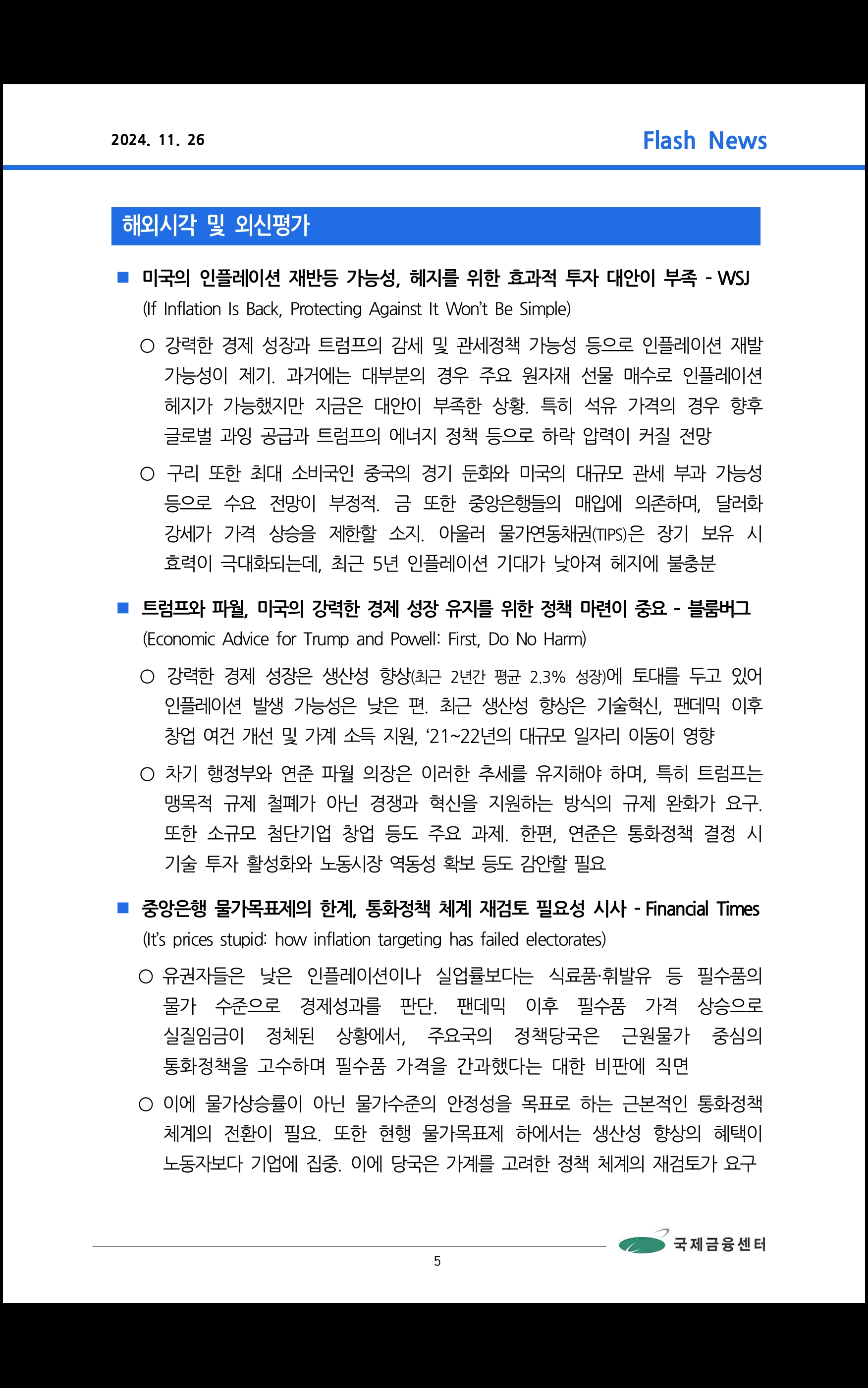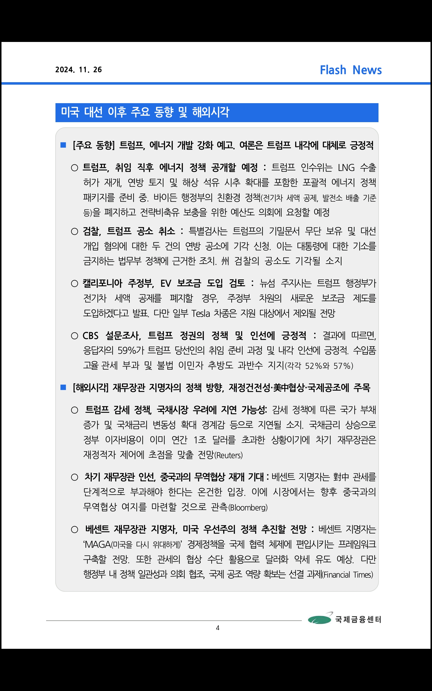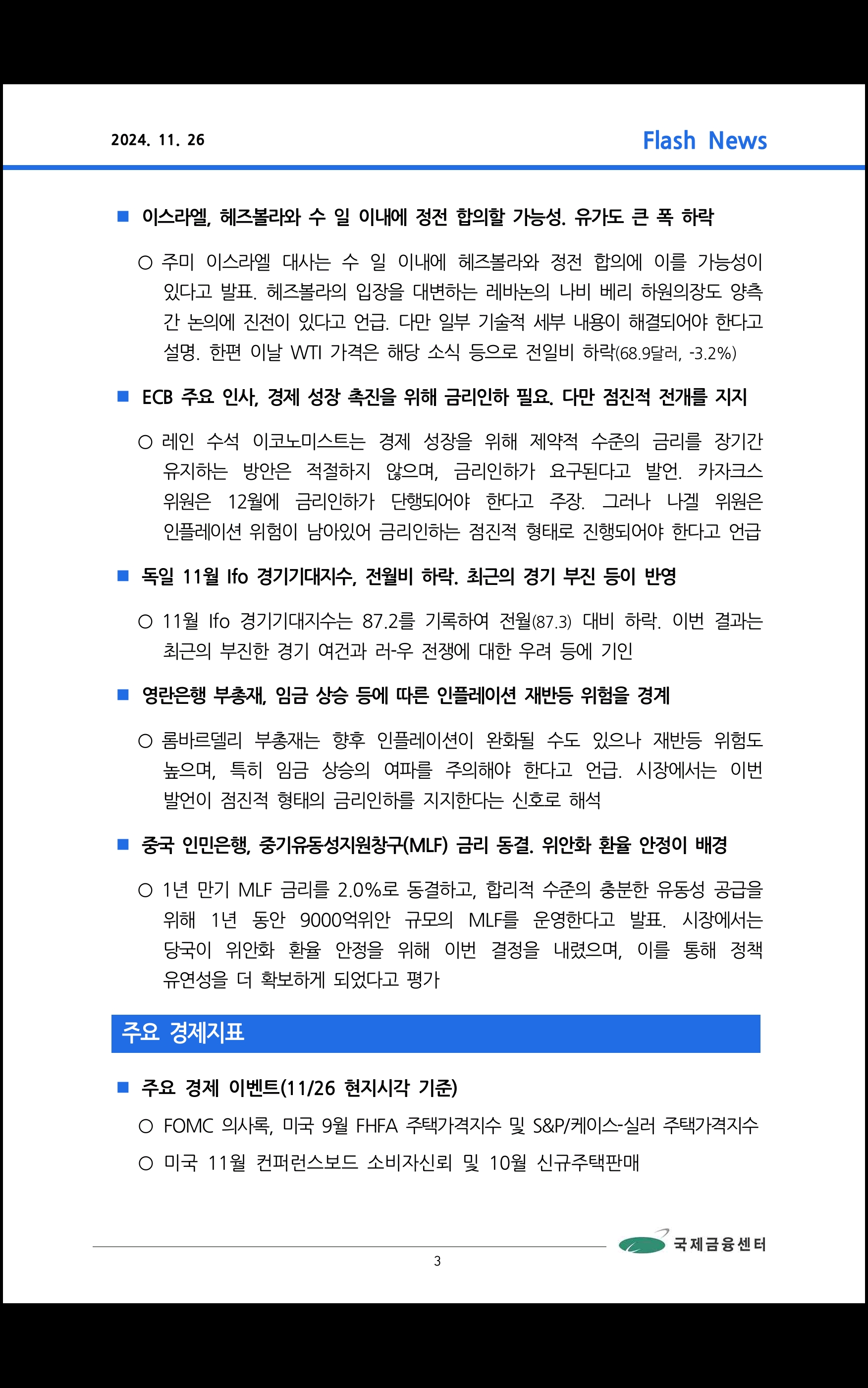 데일리 브리핑 ('24.11.26 국제금융센터)
