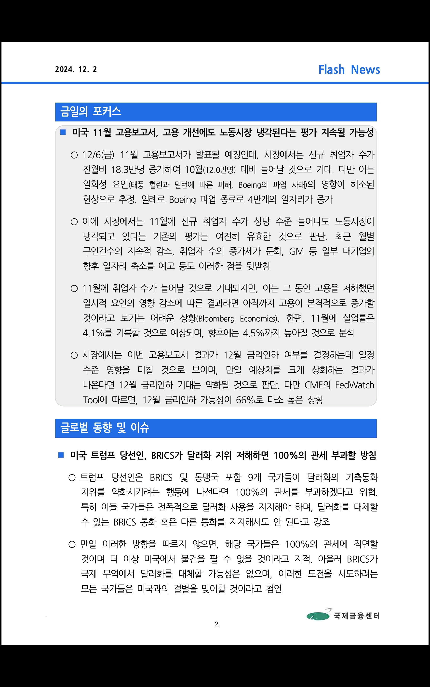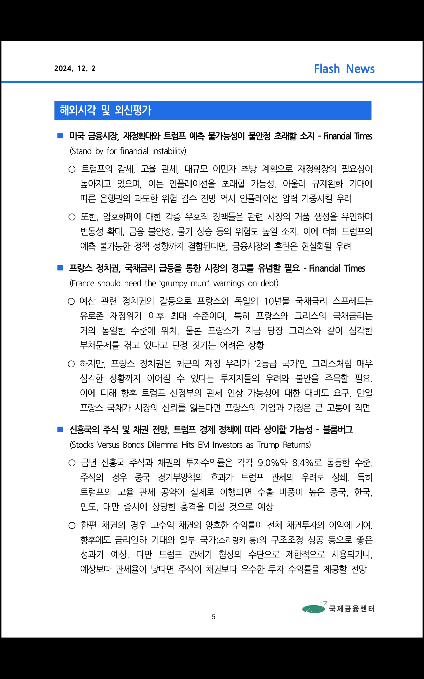 데일리 브리핑 ('24.12.2 국제금융센터)