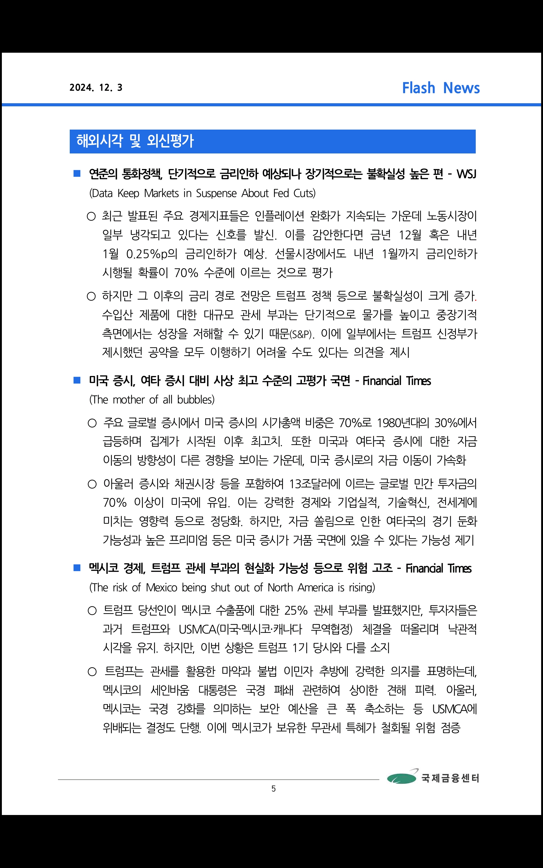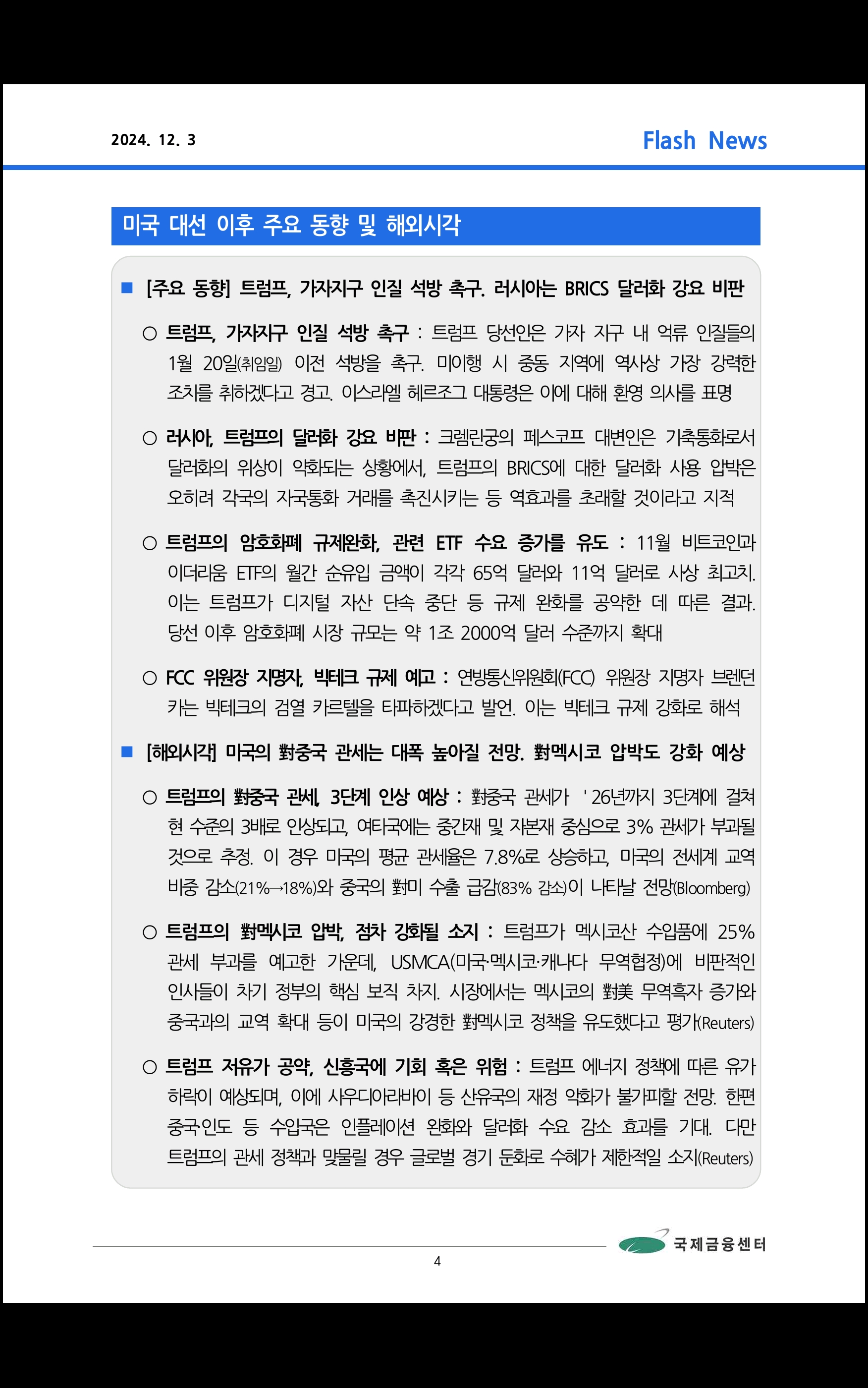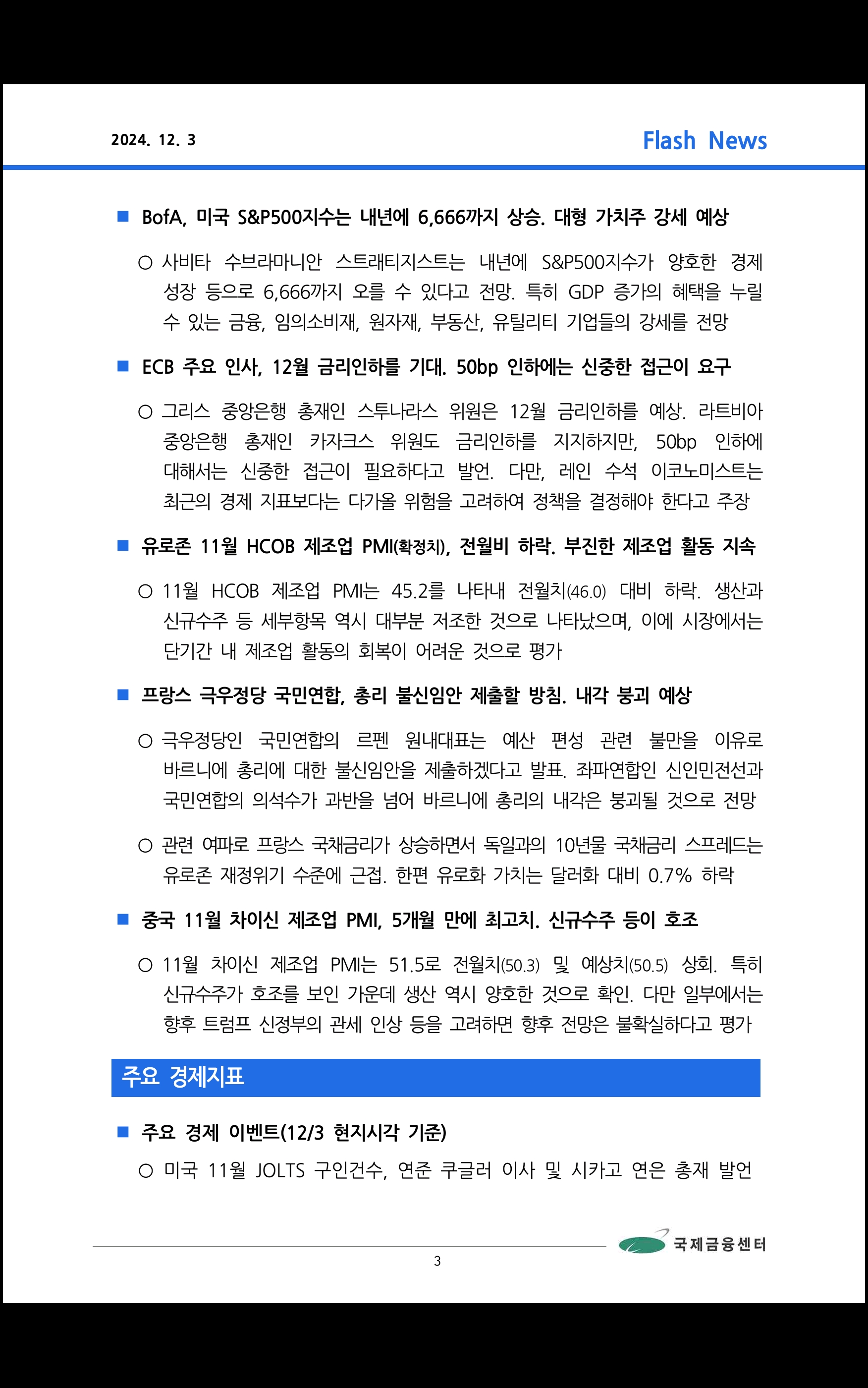데일리 브리핑 ('24.12.3 국제금융센터)