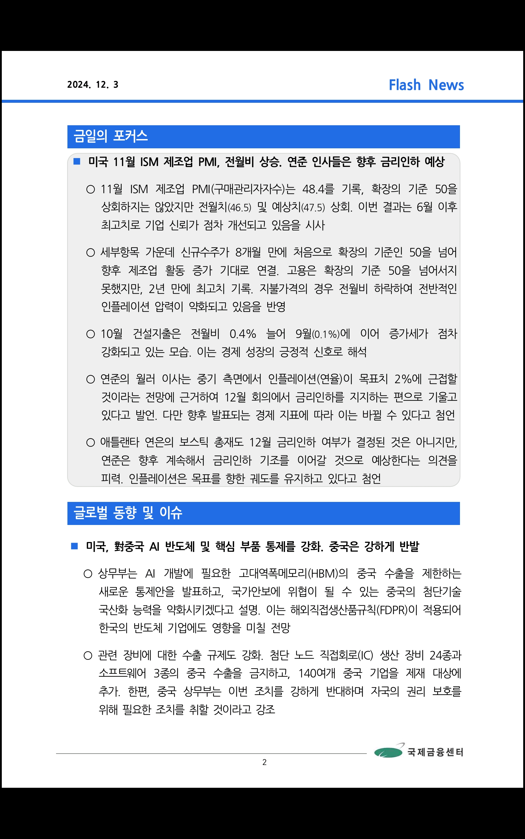 데일리 브리핑 ('24.12.2 국제금융센터)