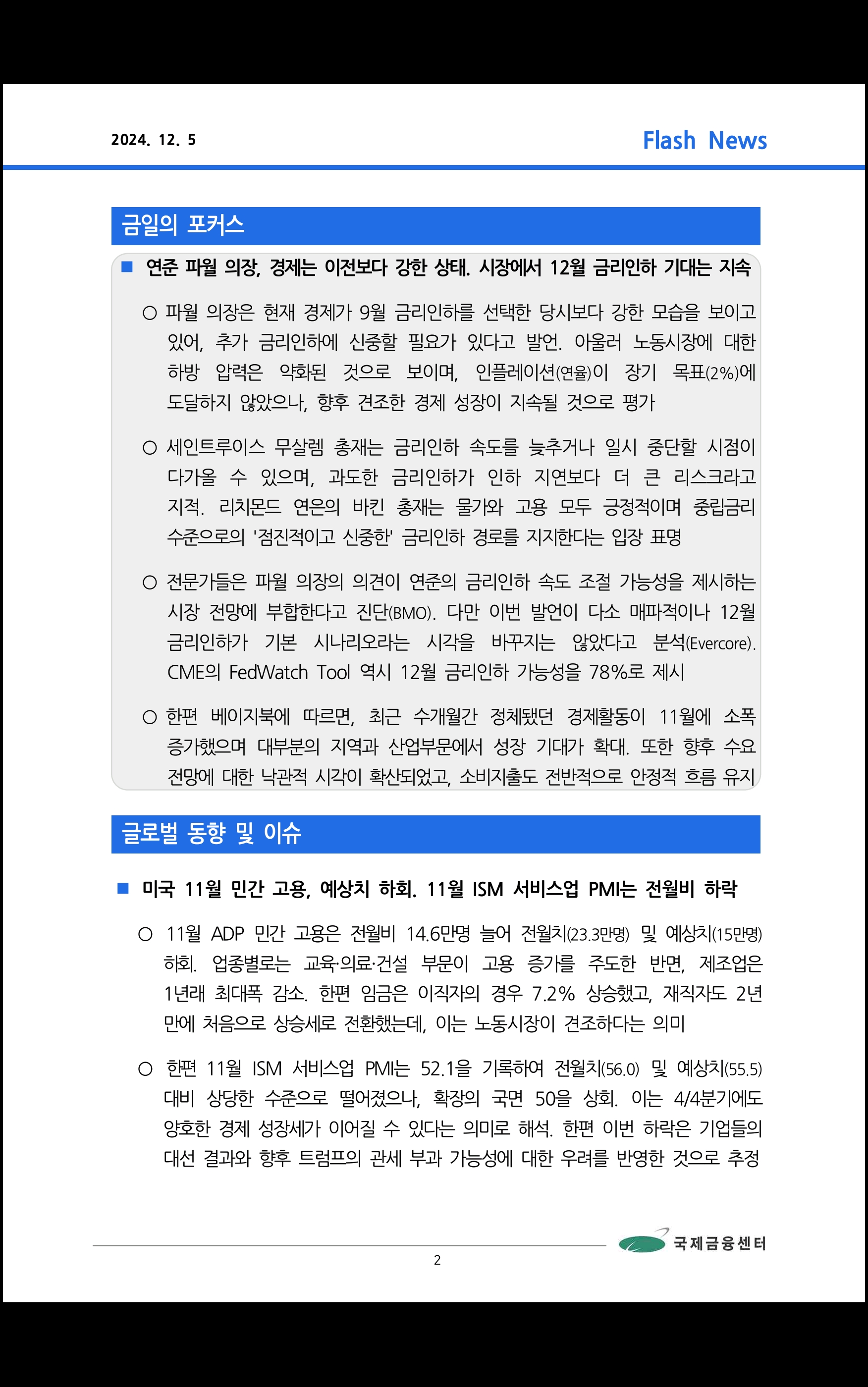 데일리 브리핑 ('24.12.2 국제금융센터)