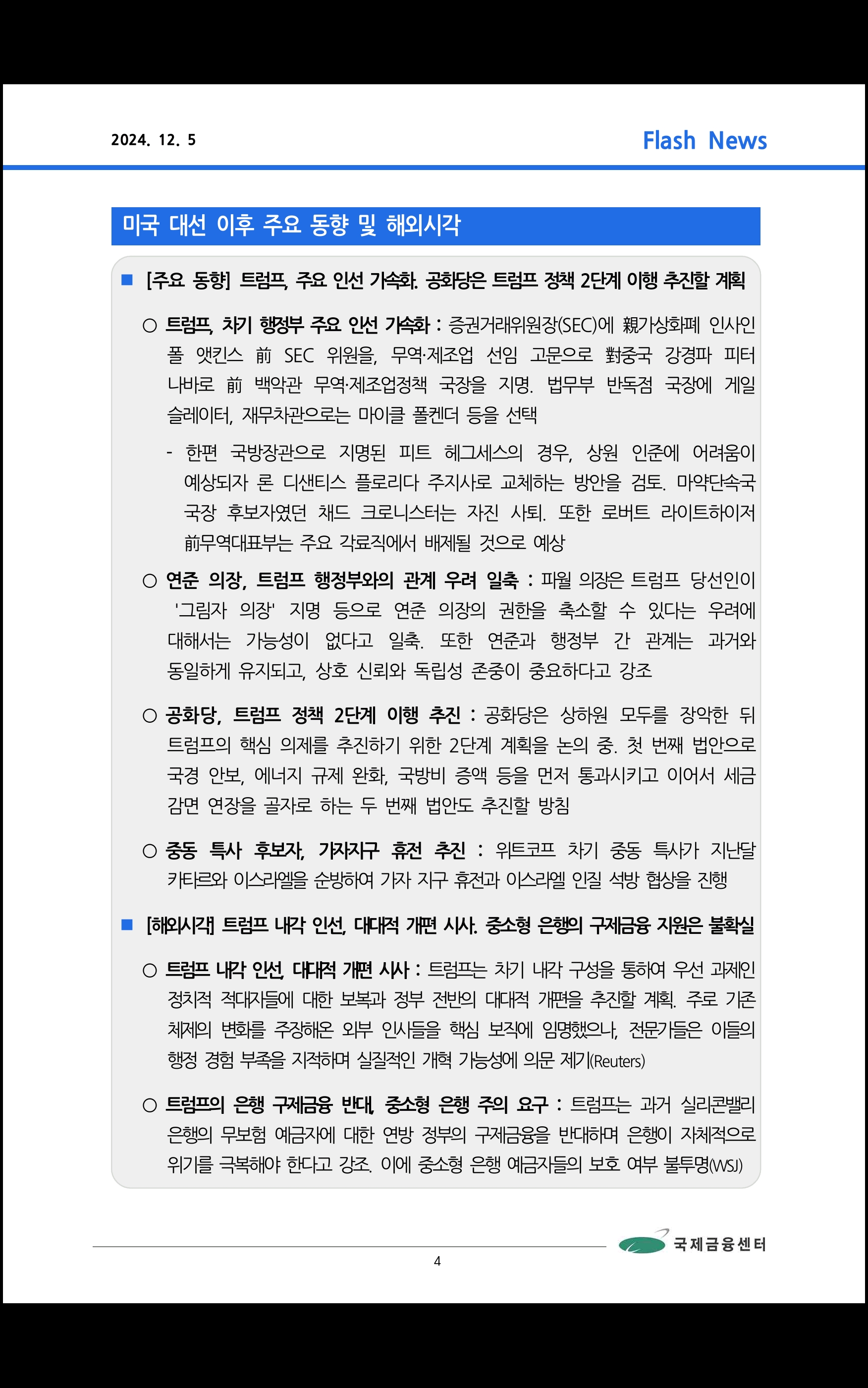 데일리 브리핑 ('24.12.4 국제금융센터)