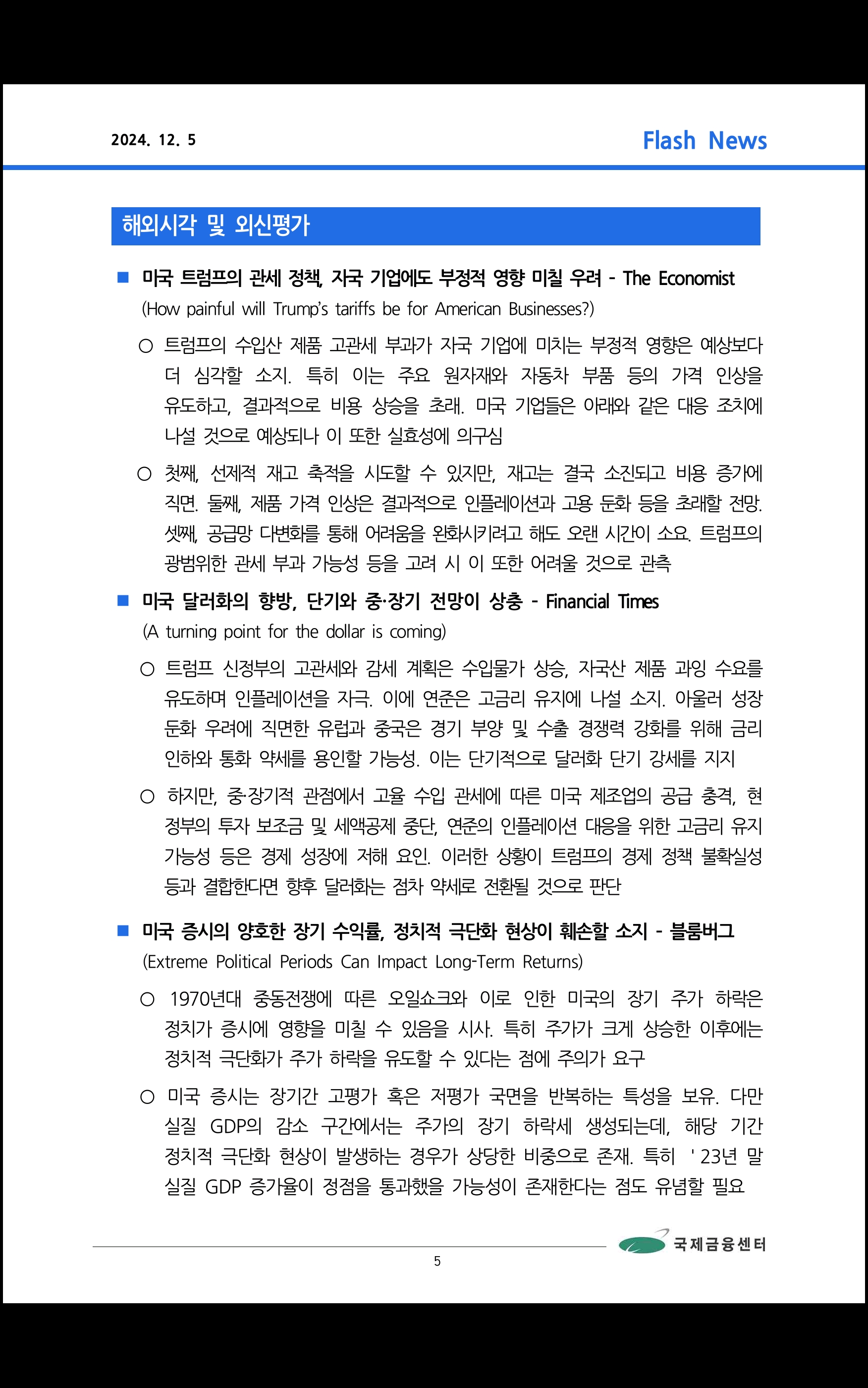 데일리 브리핑 ('24.12.5 국제금융센터)