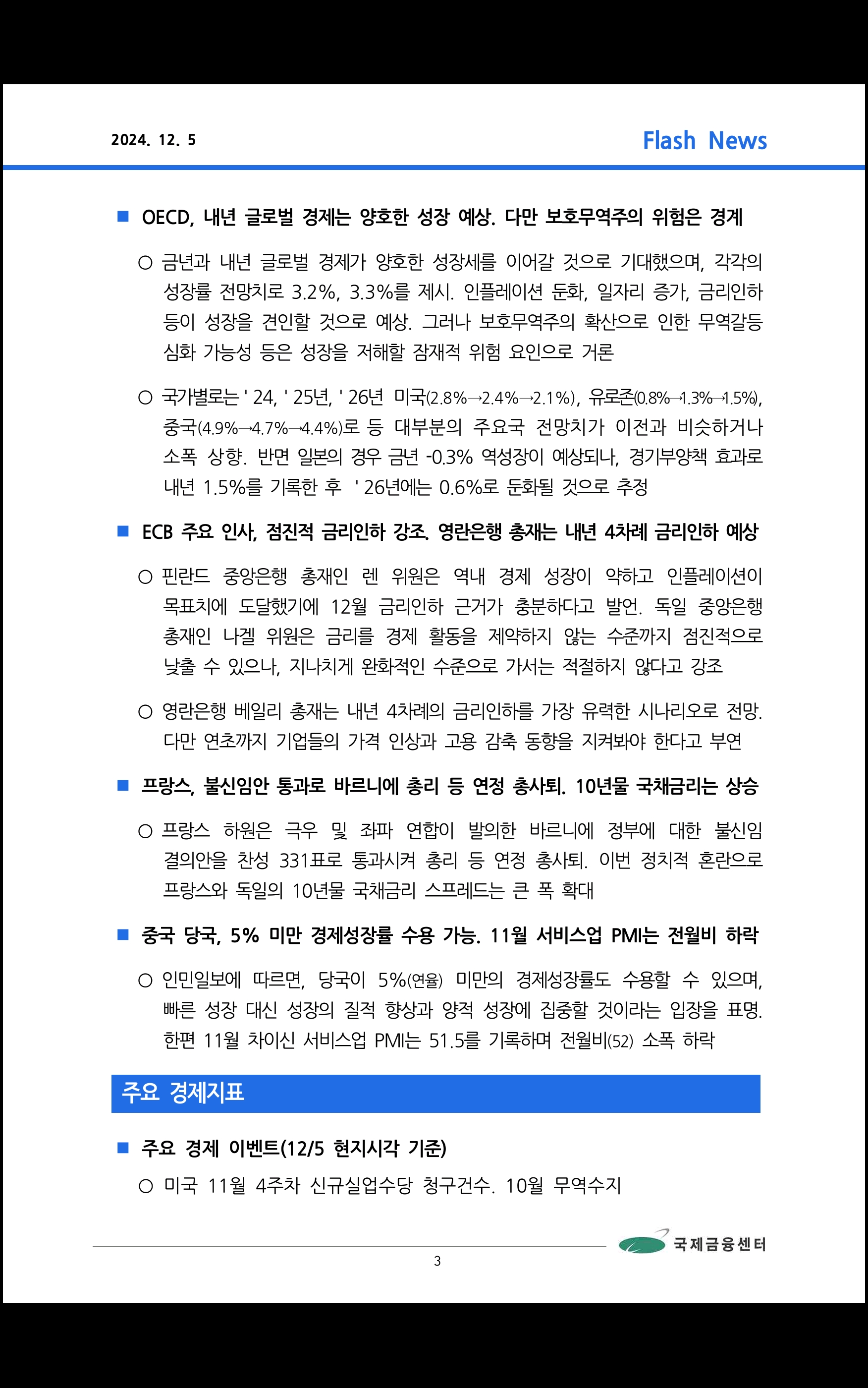 데일리 브리핑 ('24.12.3 국제금융센터)