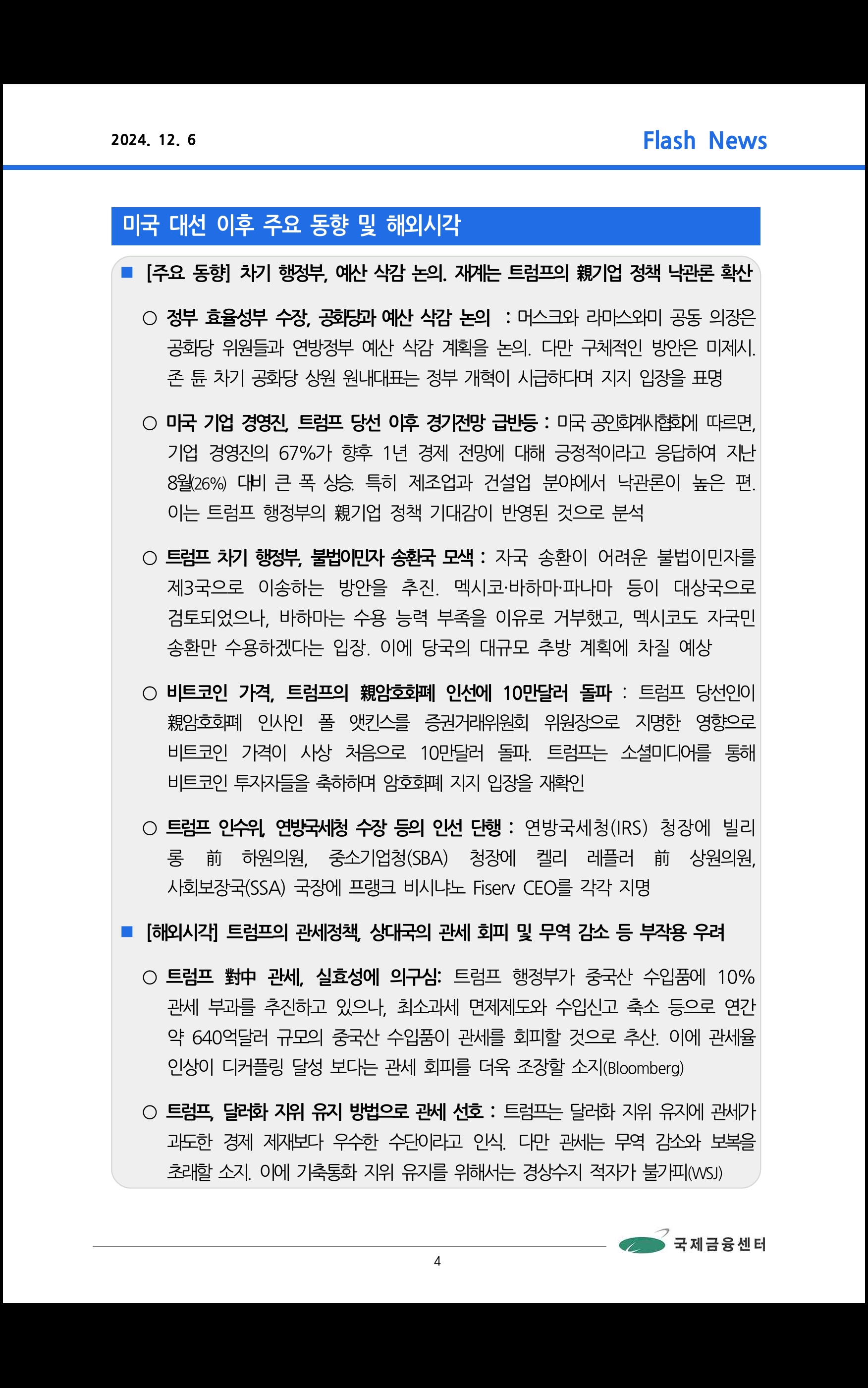 데일리 브리핑 ('24.12.4 국제금융센터)