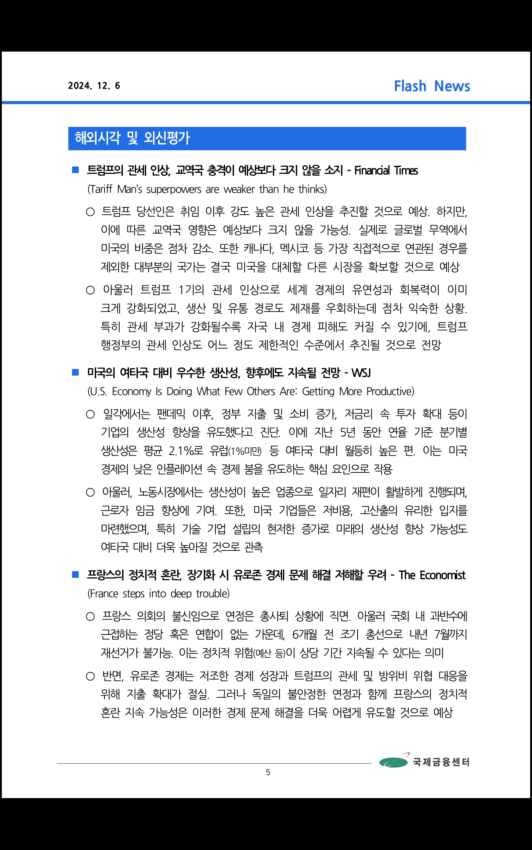 데일리 브리핑 ('24.12.5 국제금융센터)