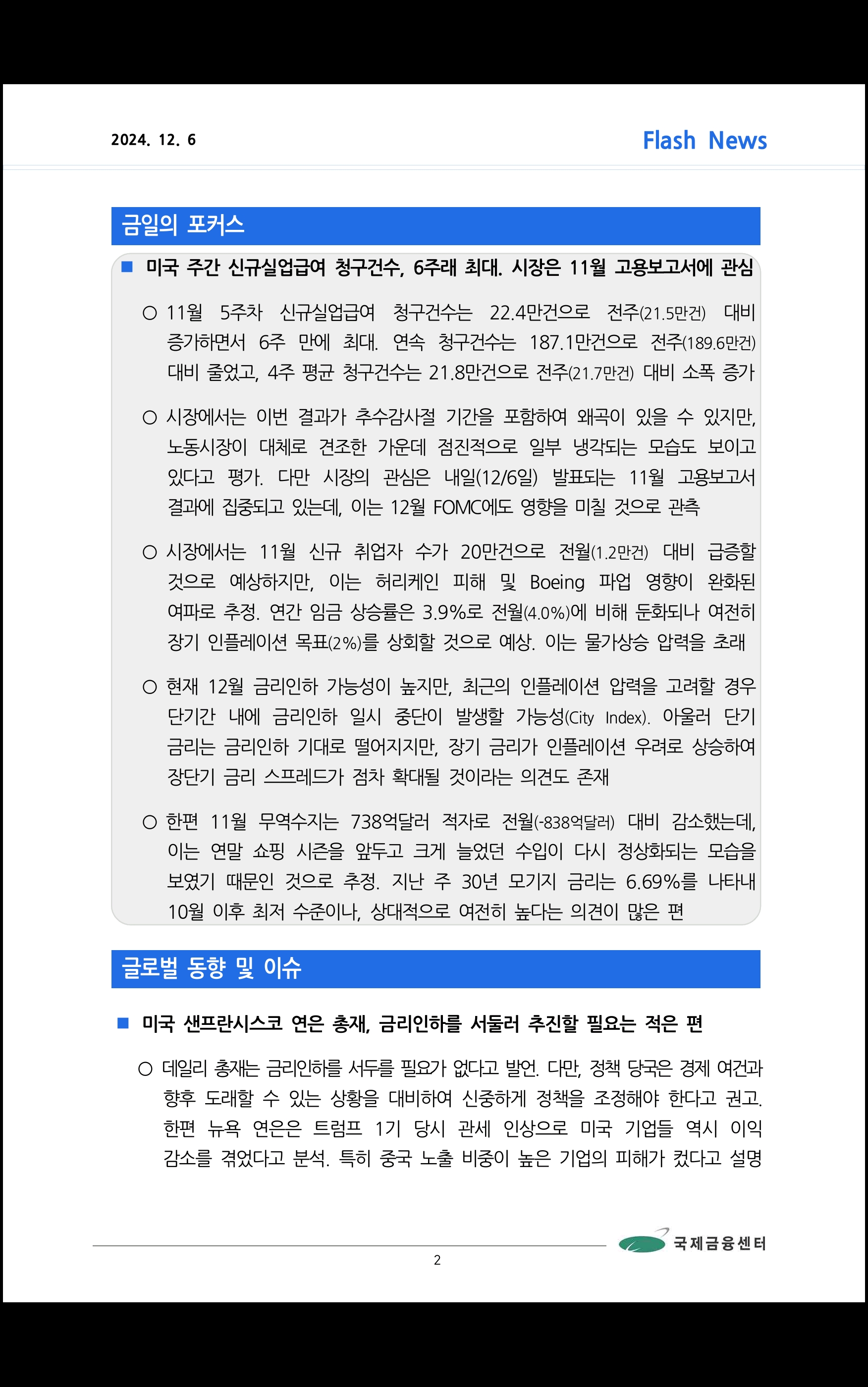 데일리 브리핑 ('24.12.6 국제금융센터)
