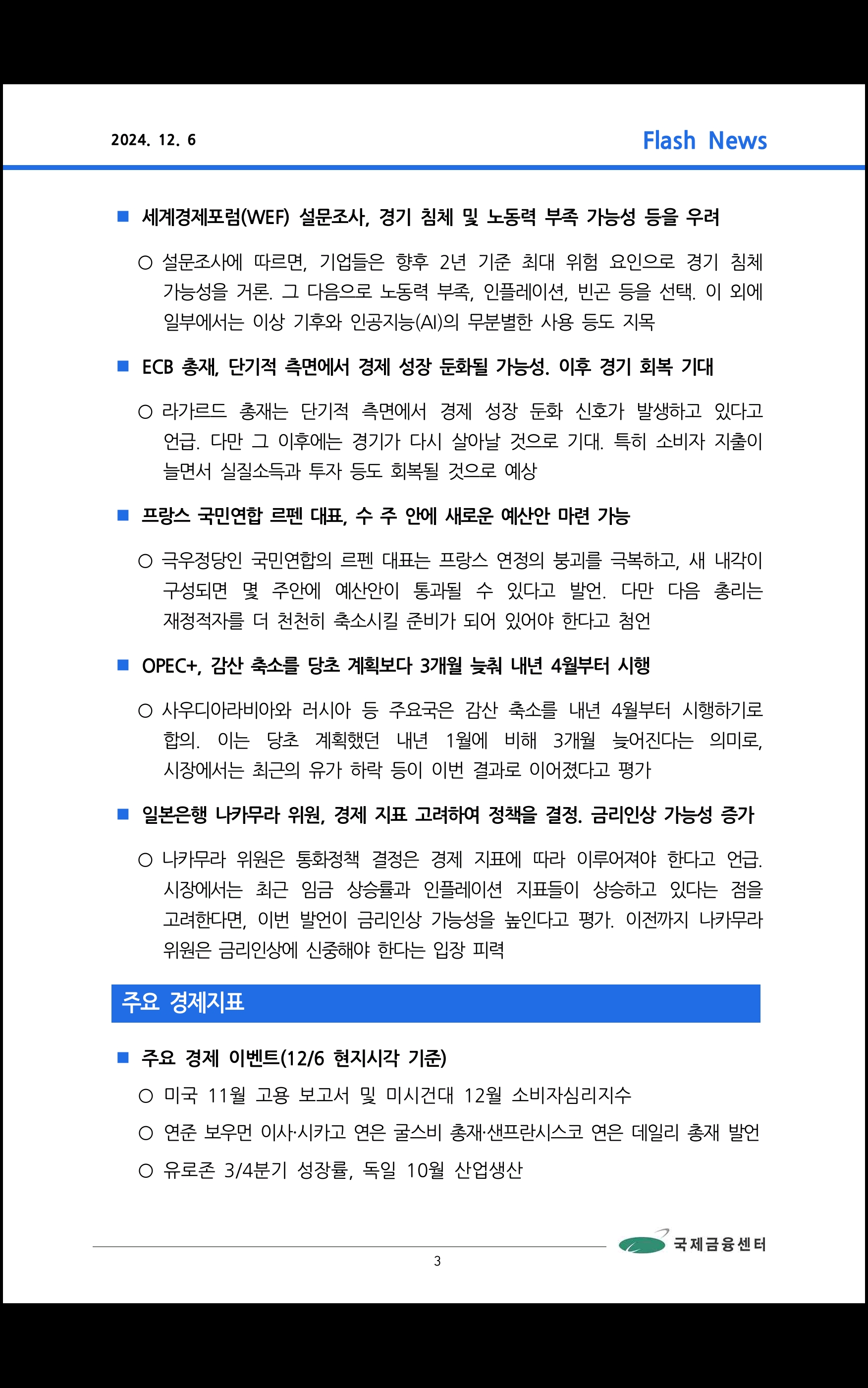 데일리 브리핑 ('24.12.3 국제금융센터)