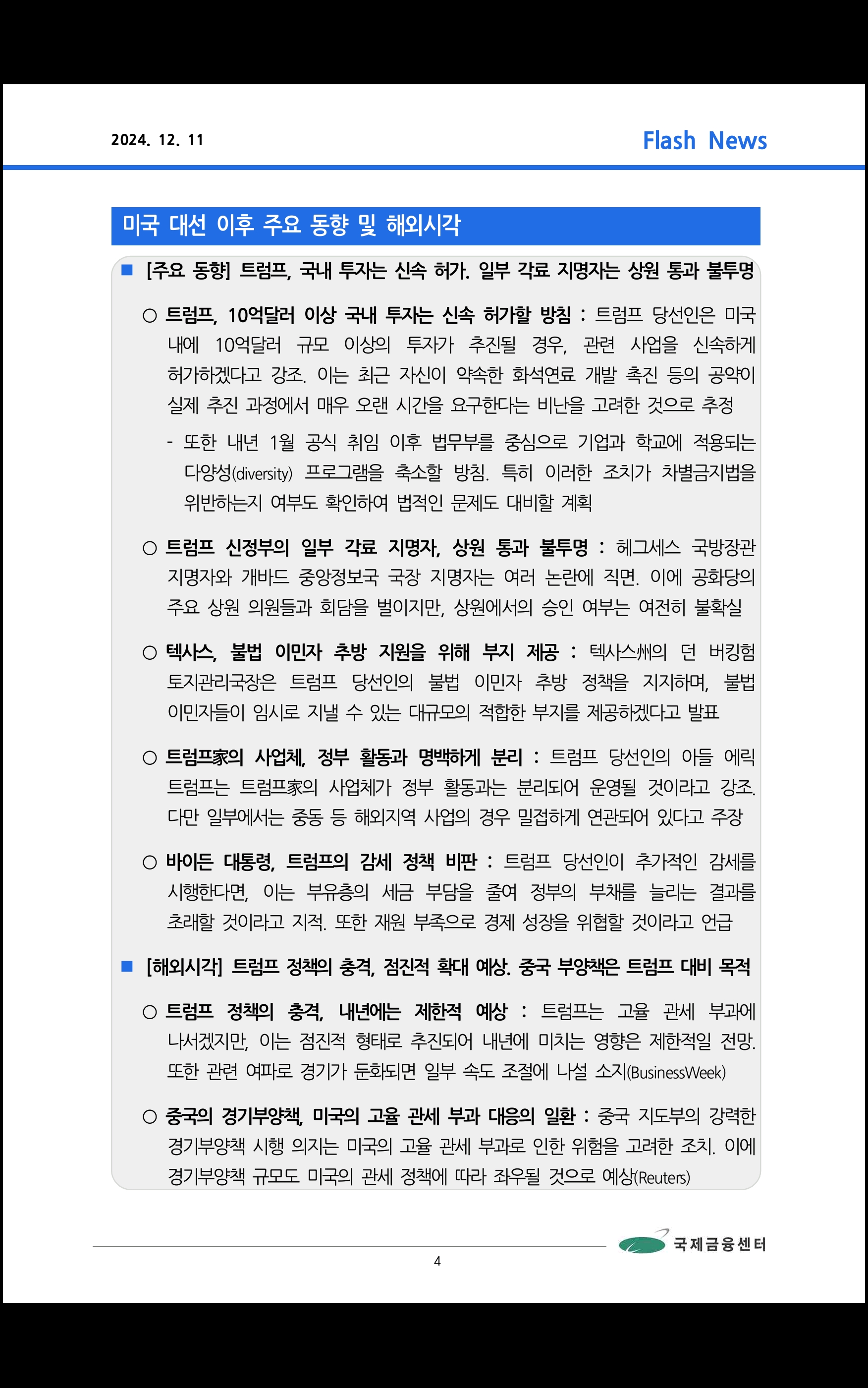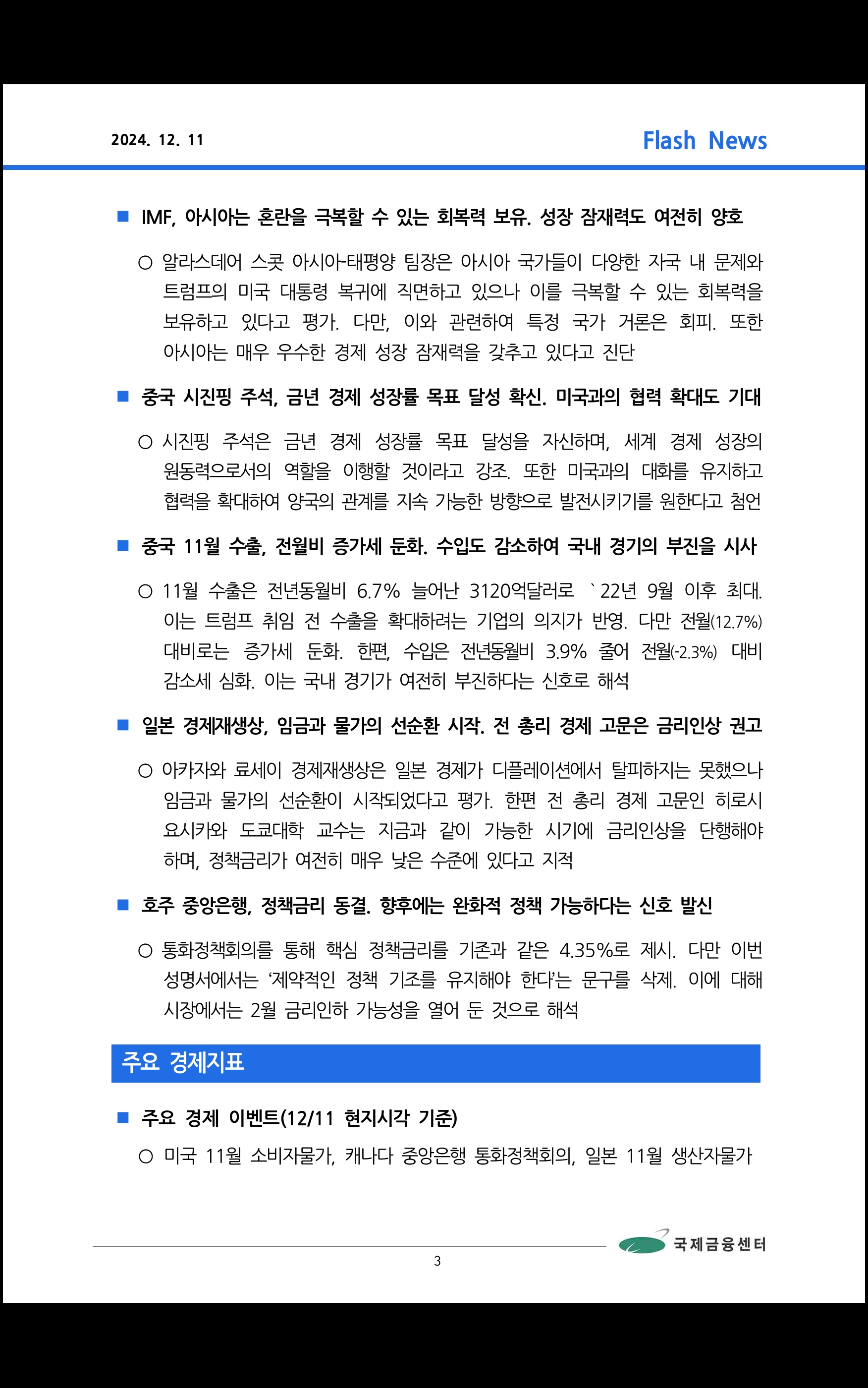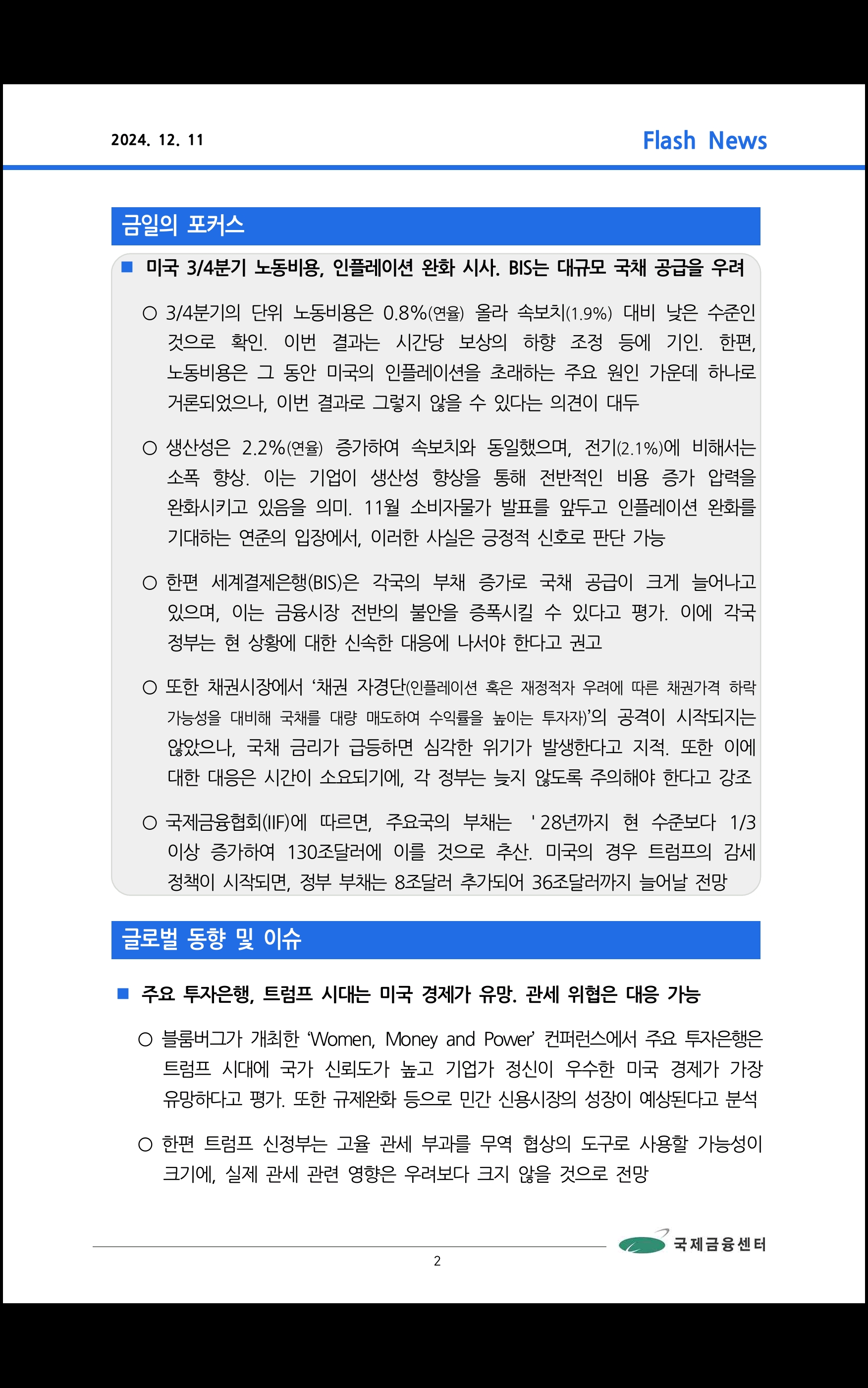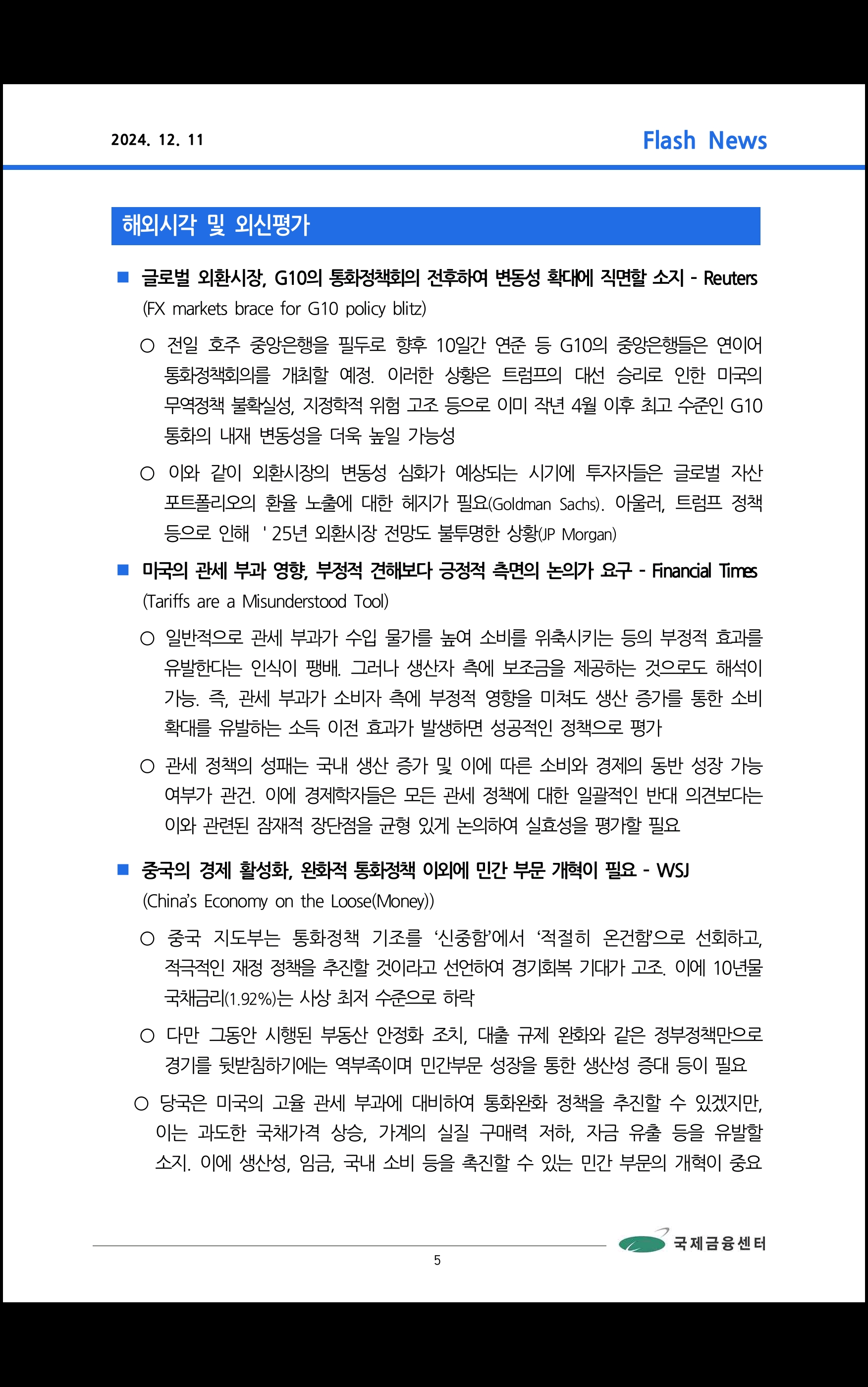 데일리 브리핑 ('24.12.11 국제금융센터)