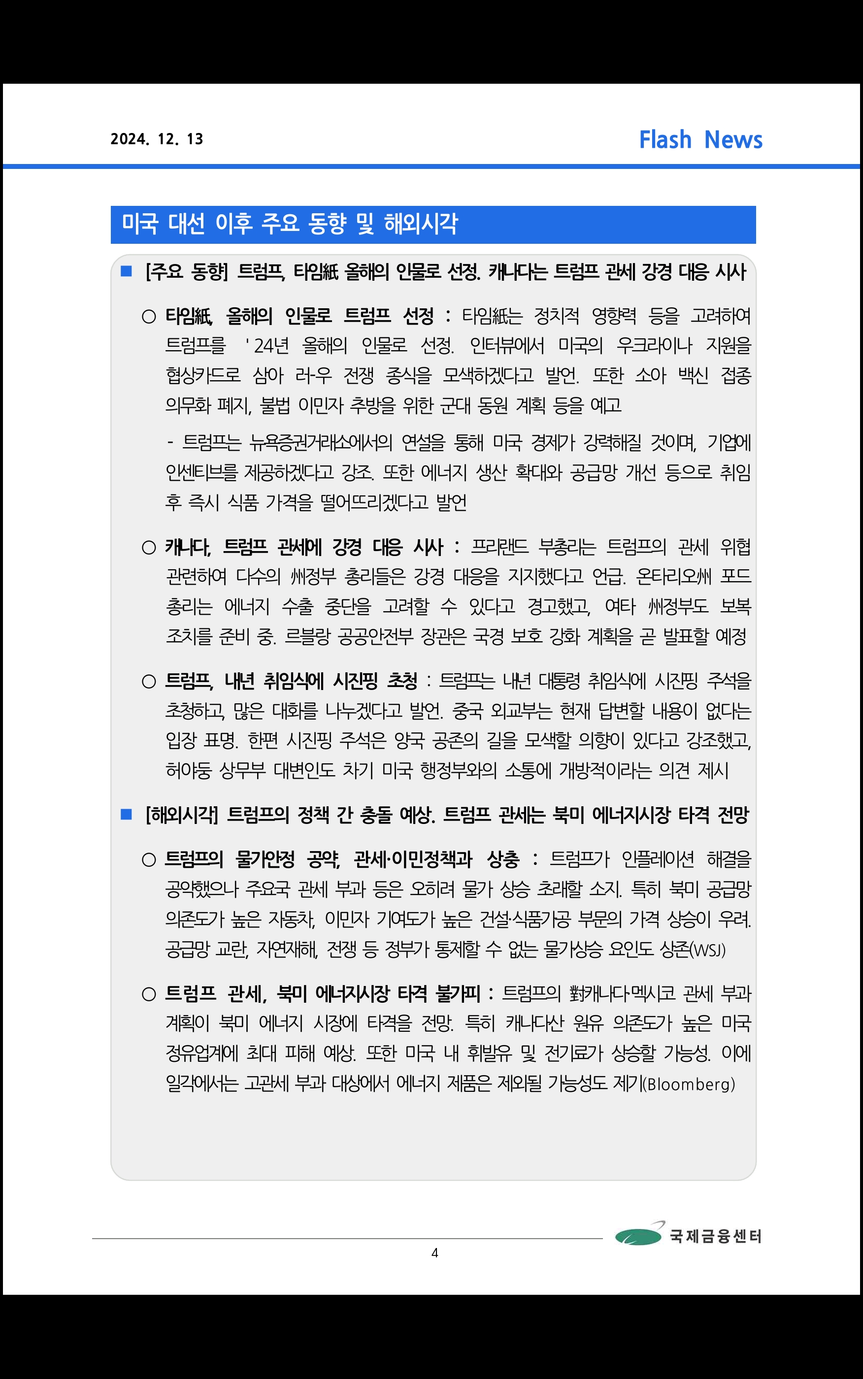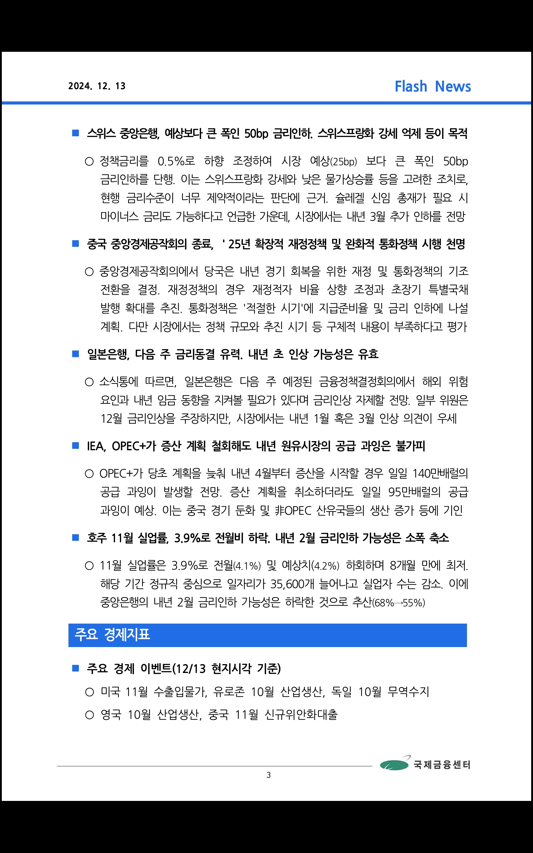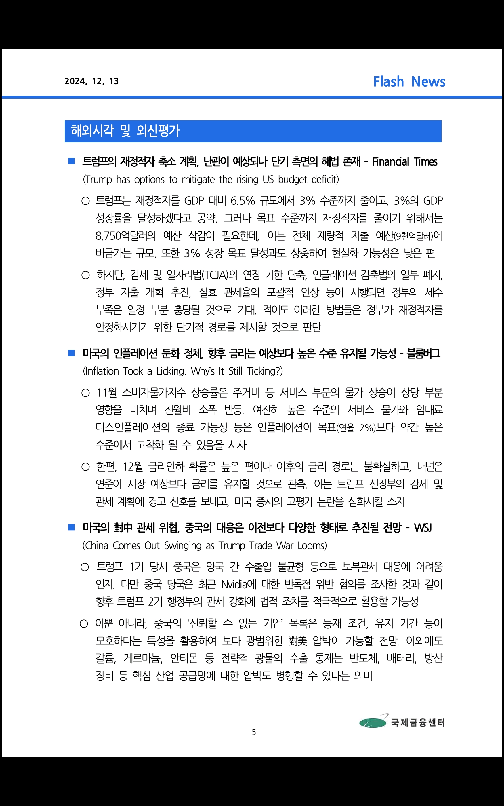 데일리 브리핑 ('24.12.13 국제금융센터)