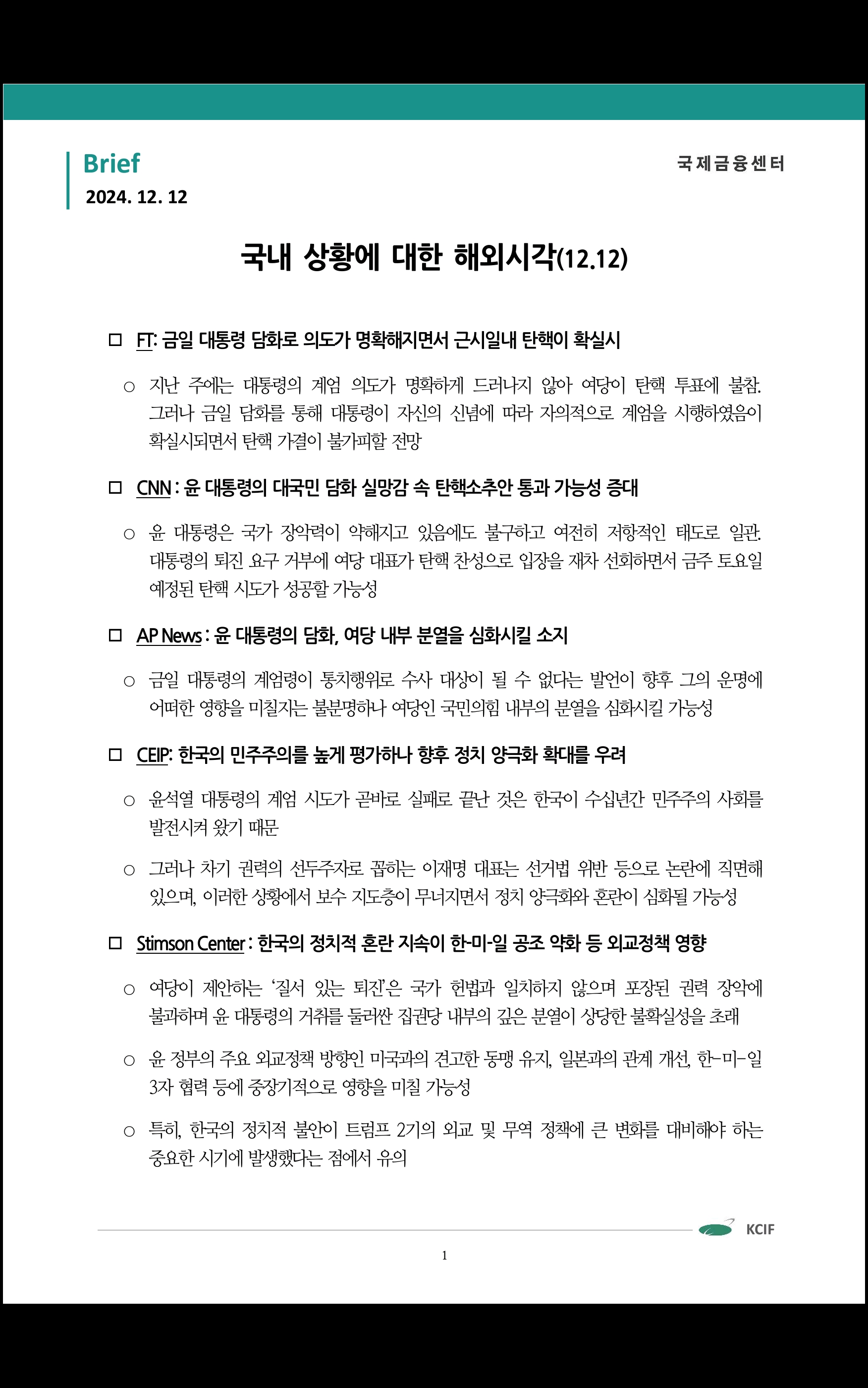 데일리 브리핑 ('24.12.12 국제금융센터)