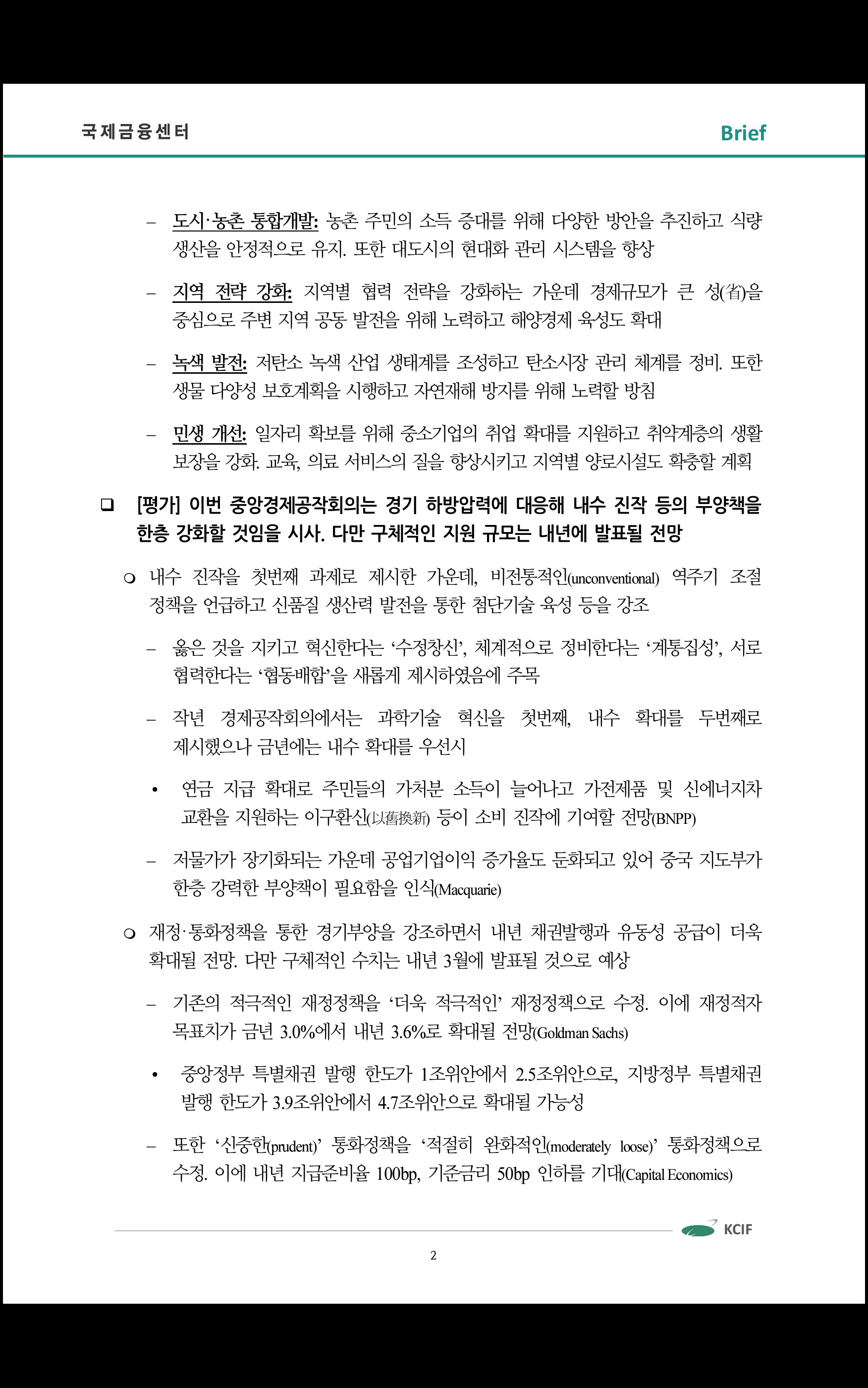 중국 경제공작회의 주요 내용 및 평가 ('24.12.13 국제금융센터)