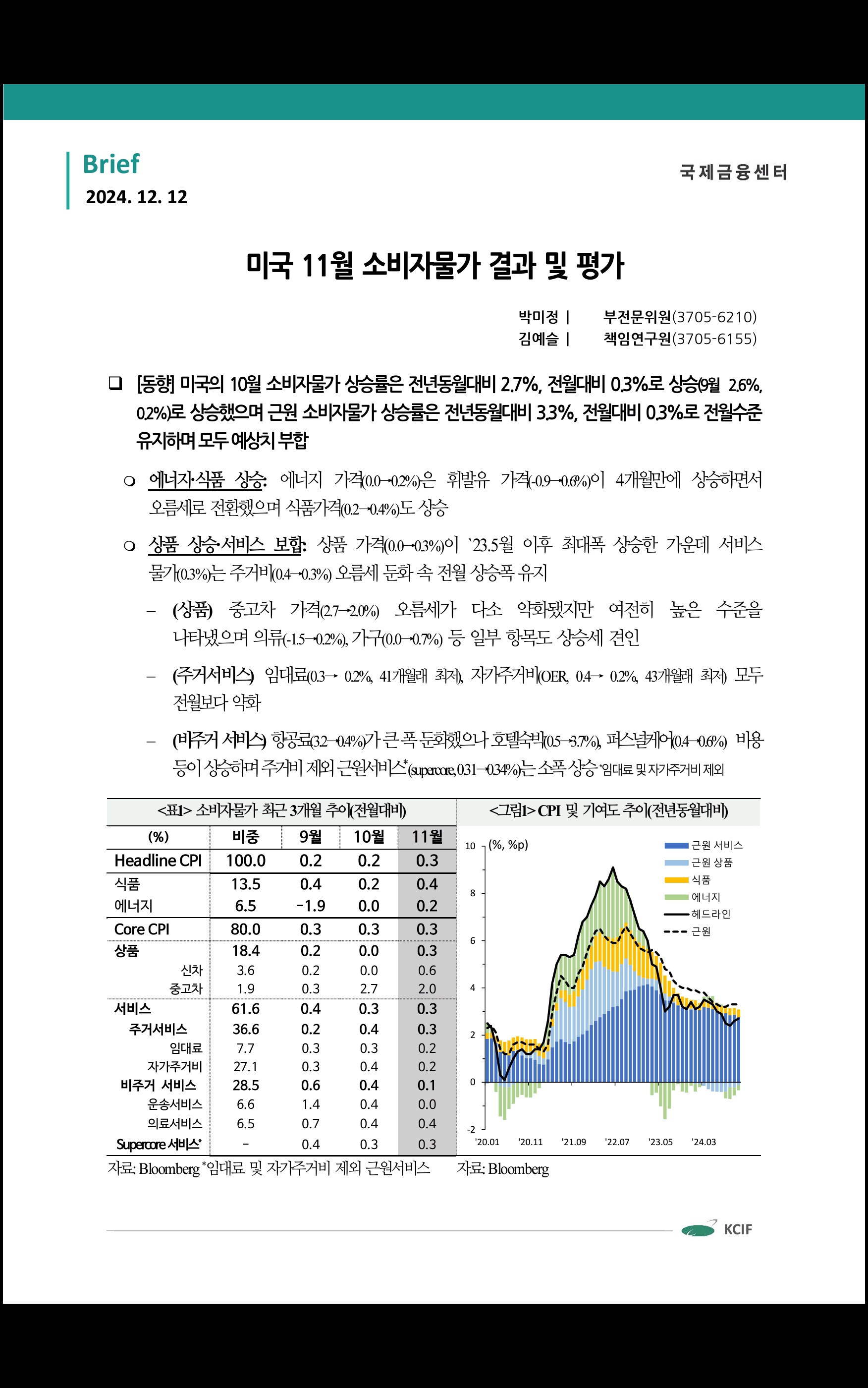 미국 11월 소비자물가 결과 및 평가 (국제금융센터)