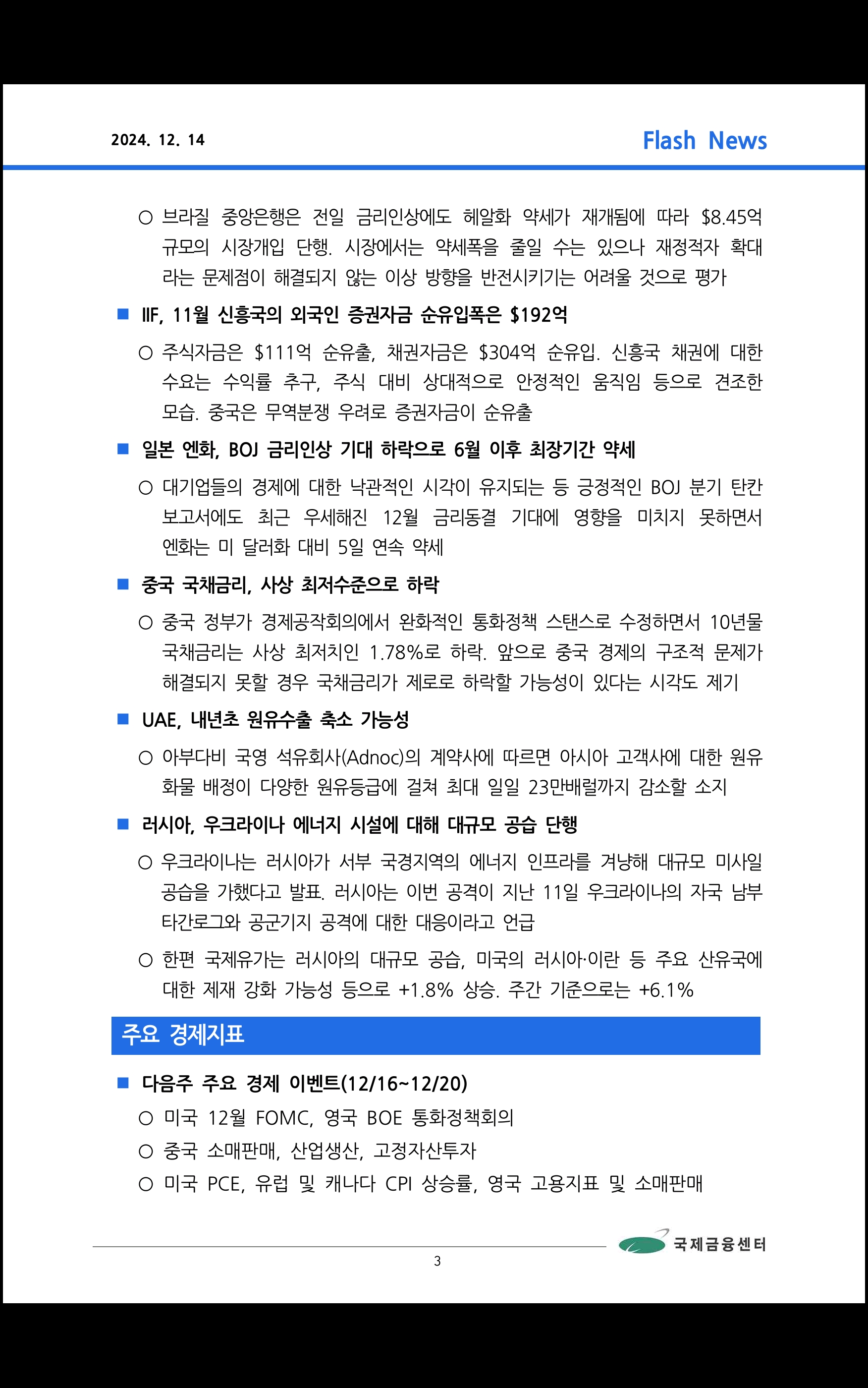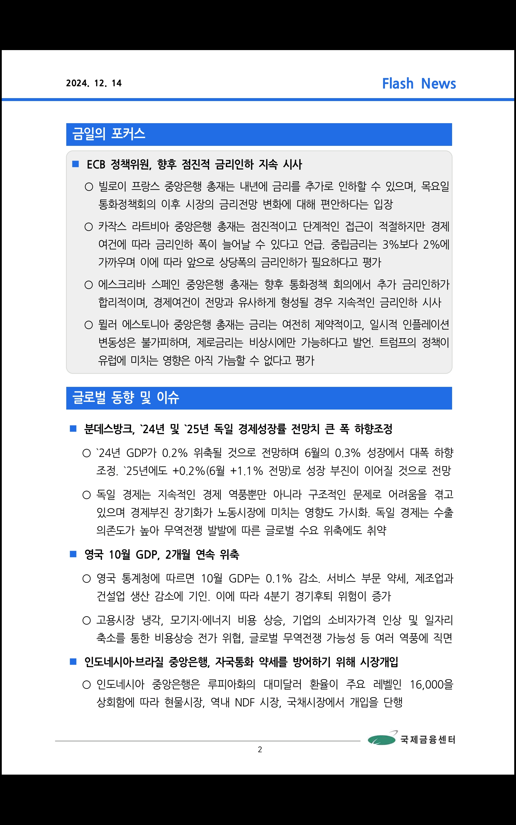 데일리 브리핑 ('24.12.14 국제금융센터)