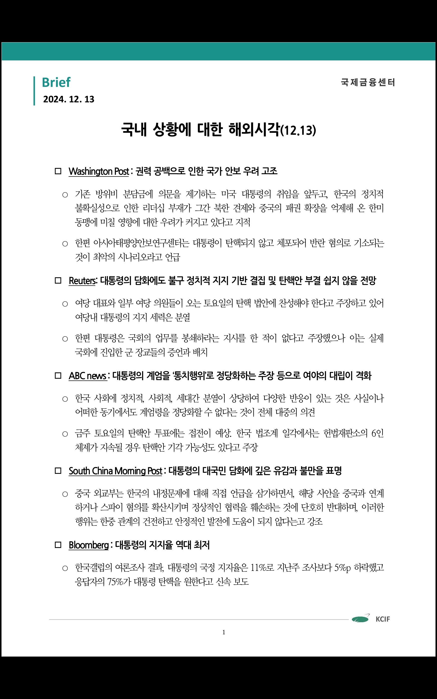 데일리 브리핑 ('24.12.14 국제금융센터)