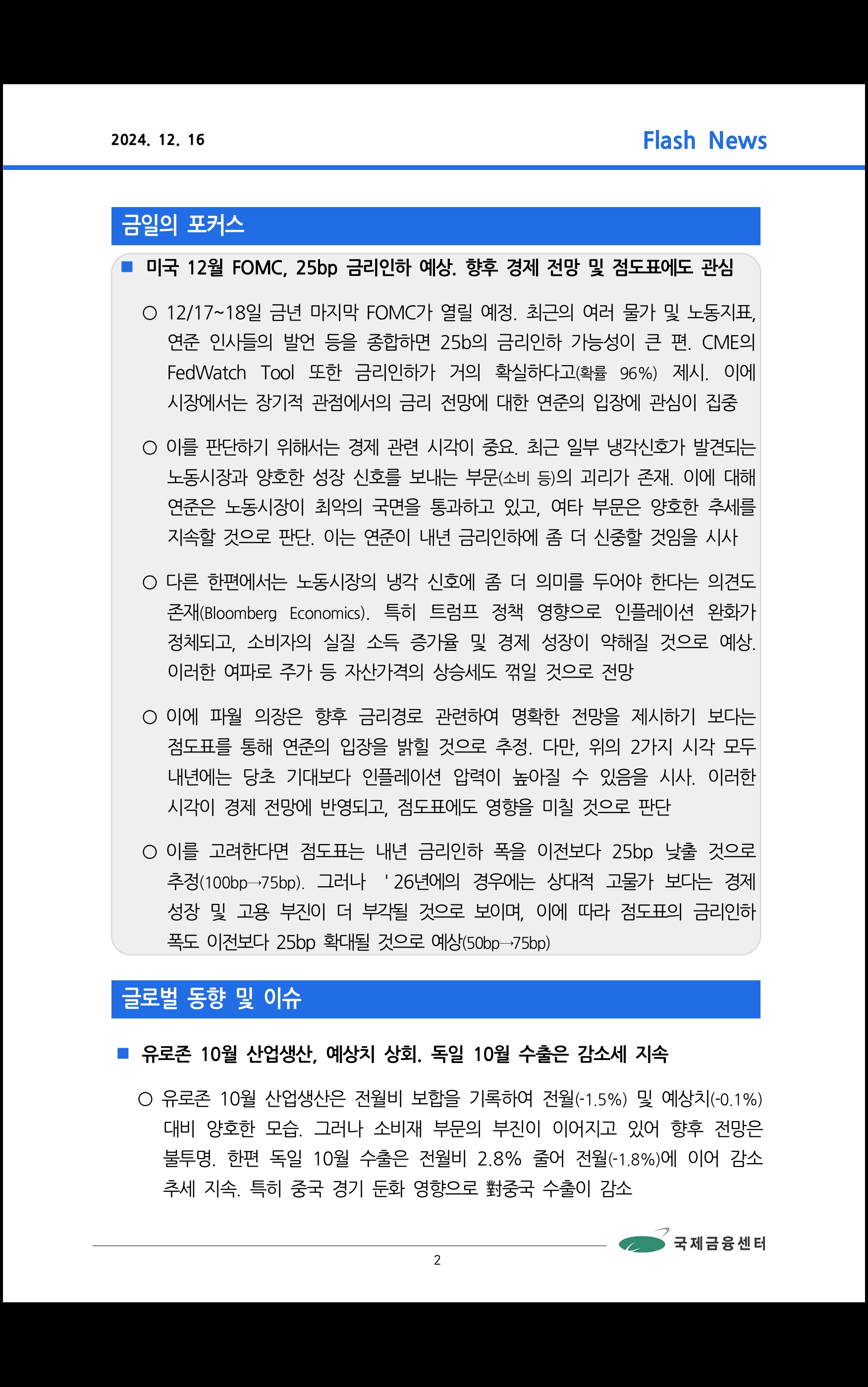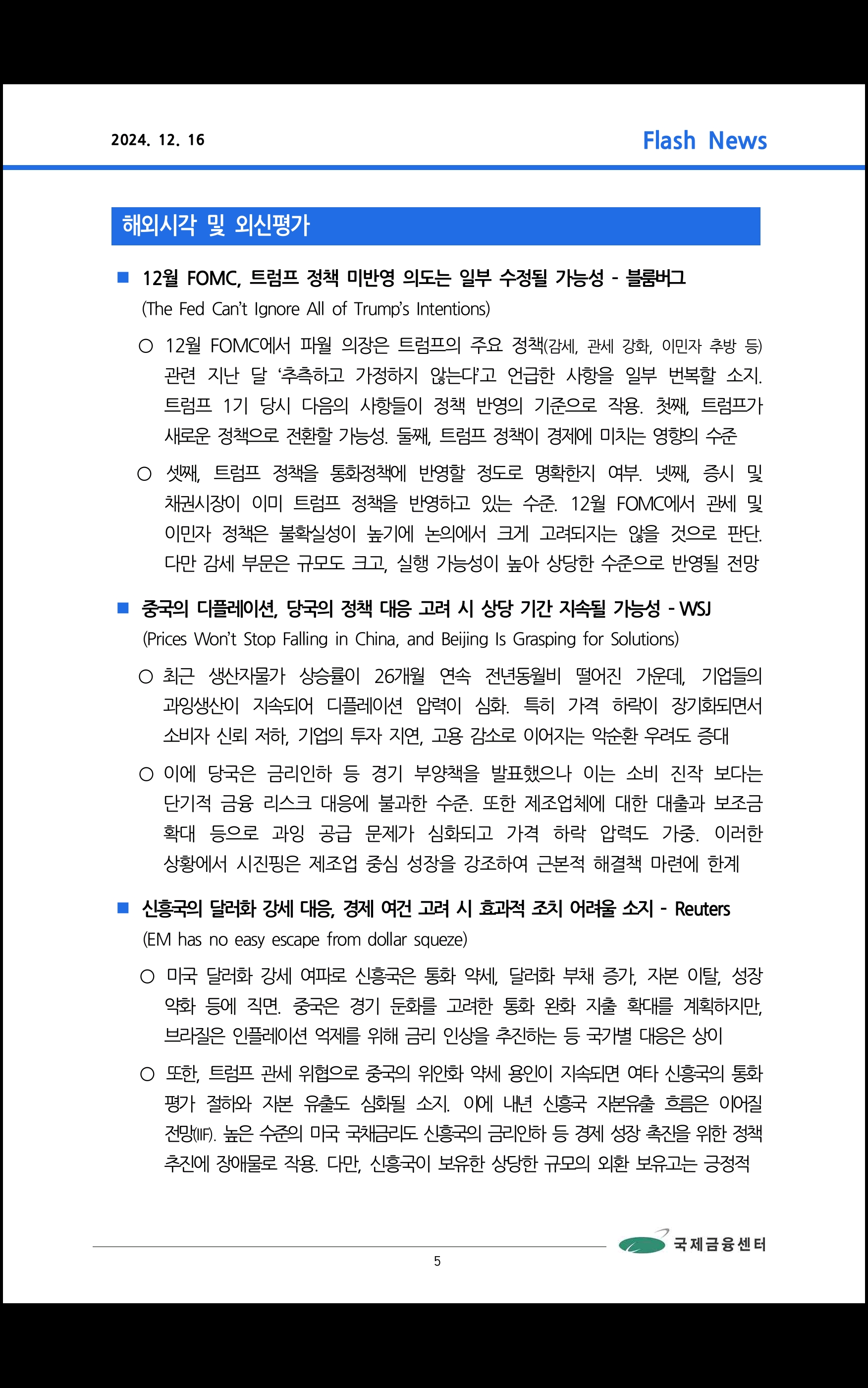 데일리 브리핑 ('24.12.16 국제금융센터)