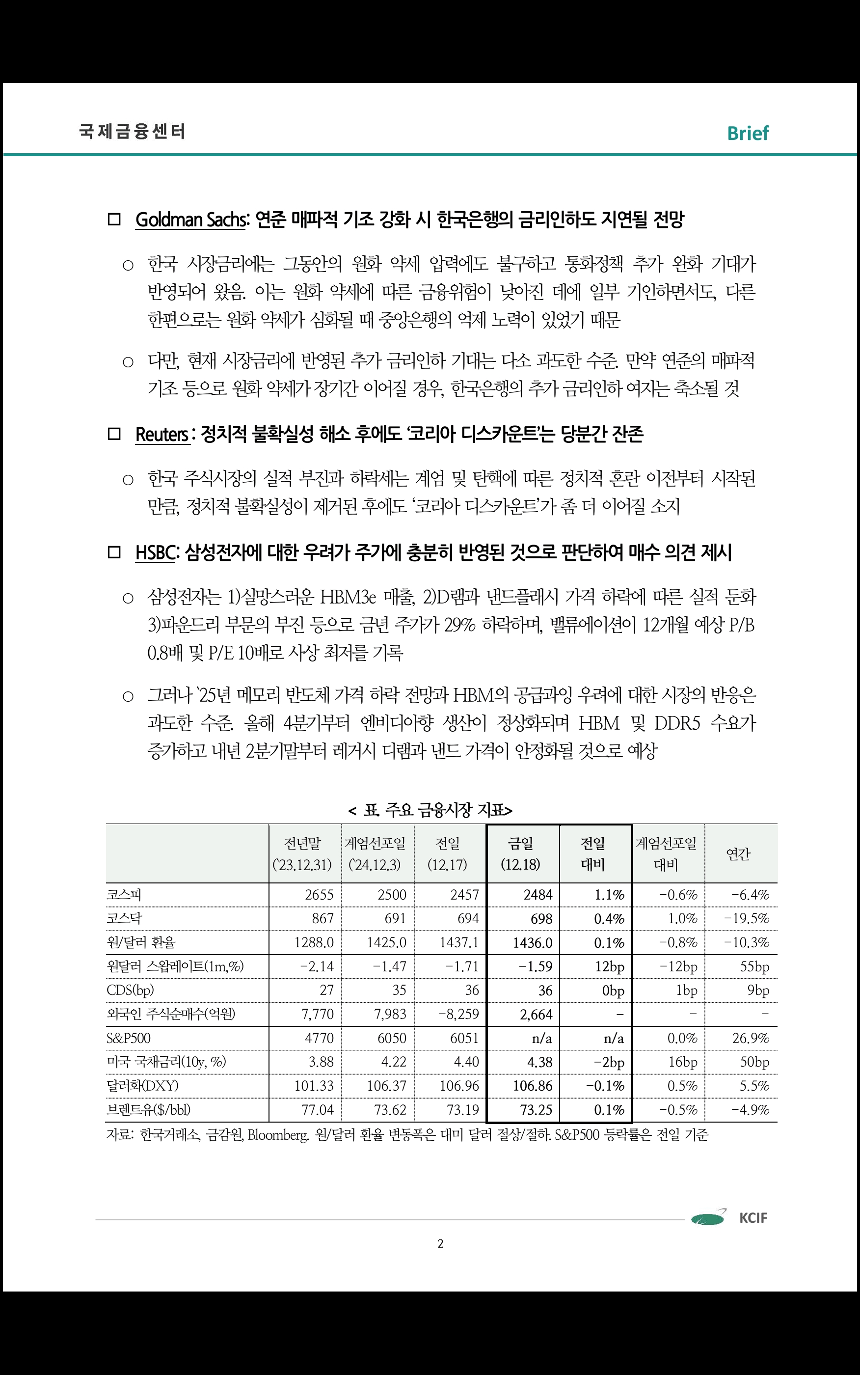 데일리 브리핑 ('24.12.18 국제금융센터)