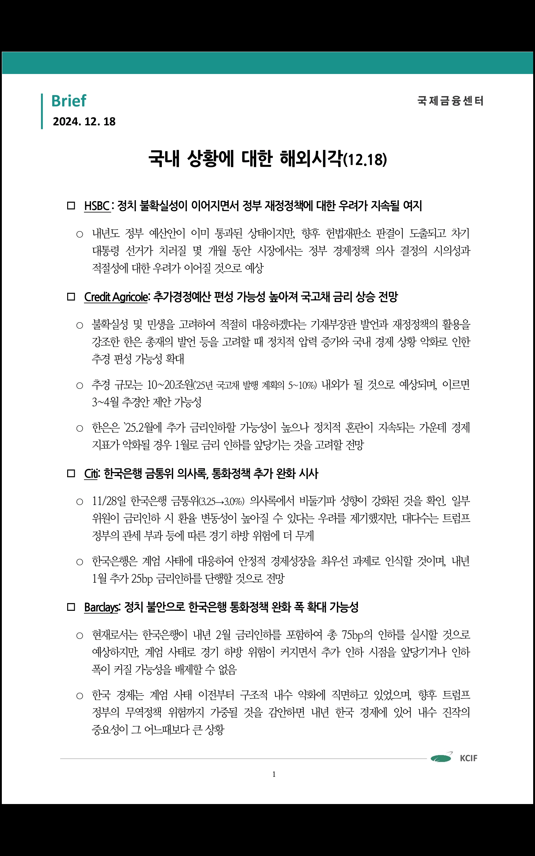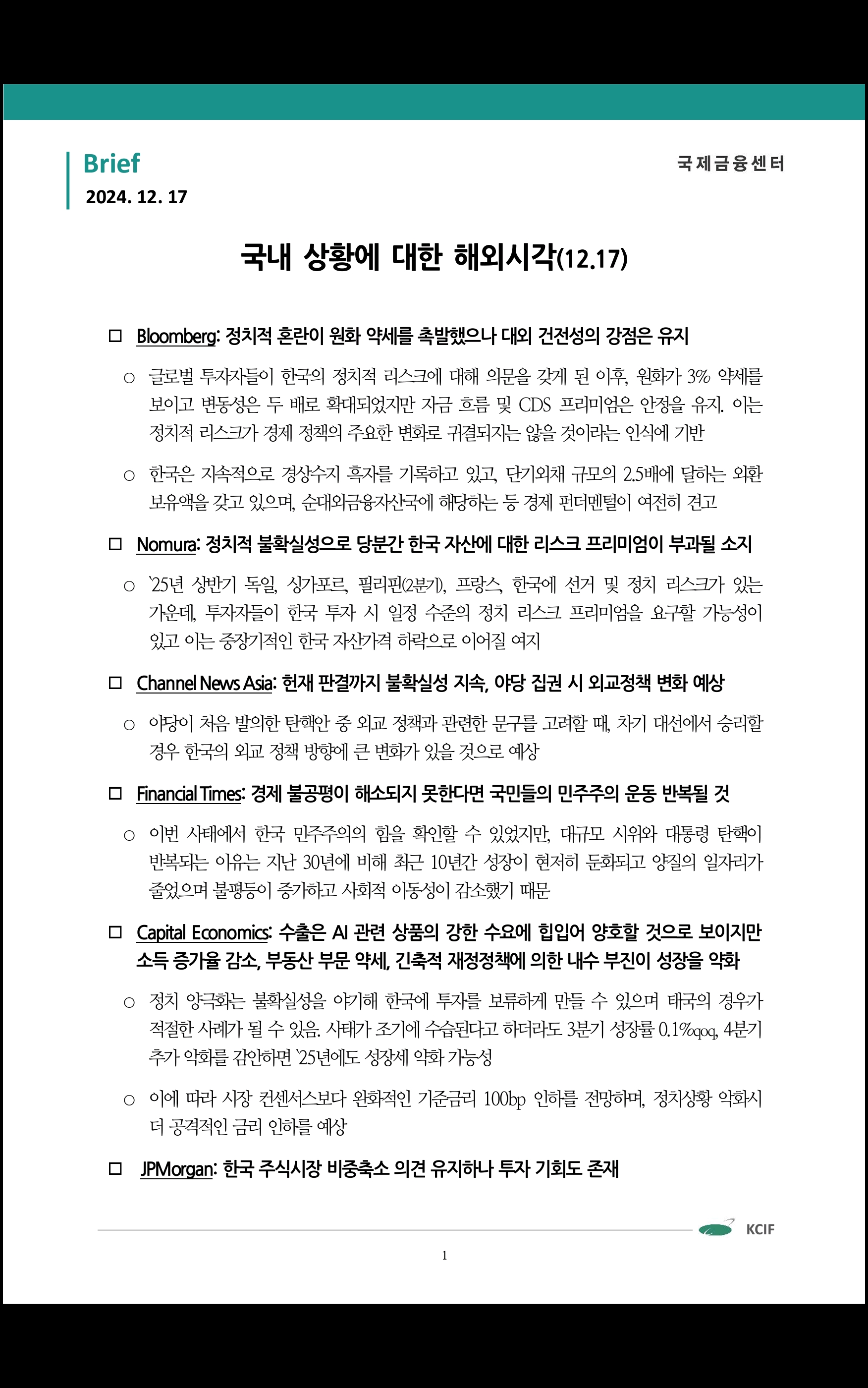 데일리 브리핑 ('24.12.18 국제금융센터)