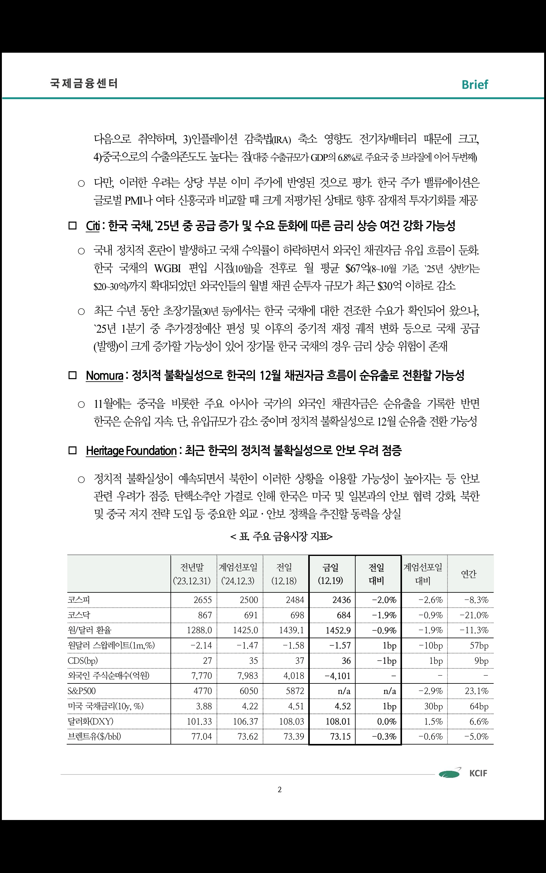데일리 브리핑 ('24.12.19 국제금융센터)