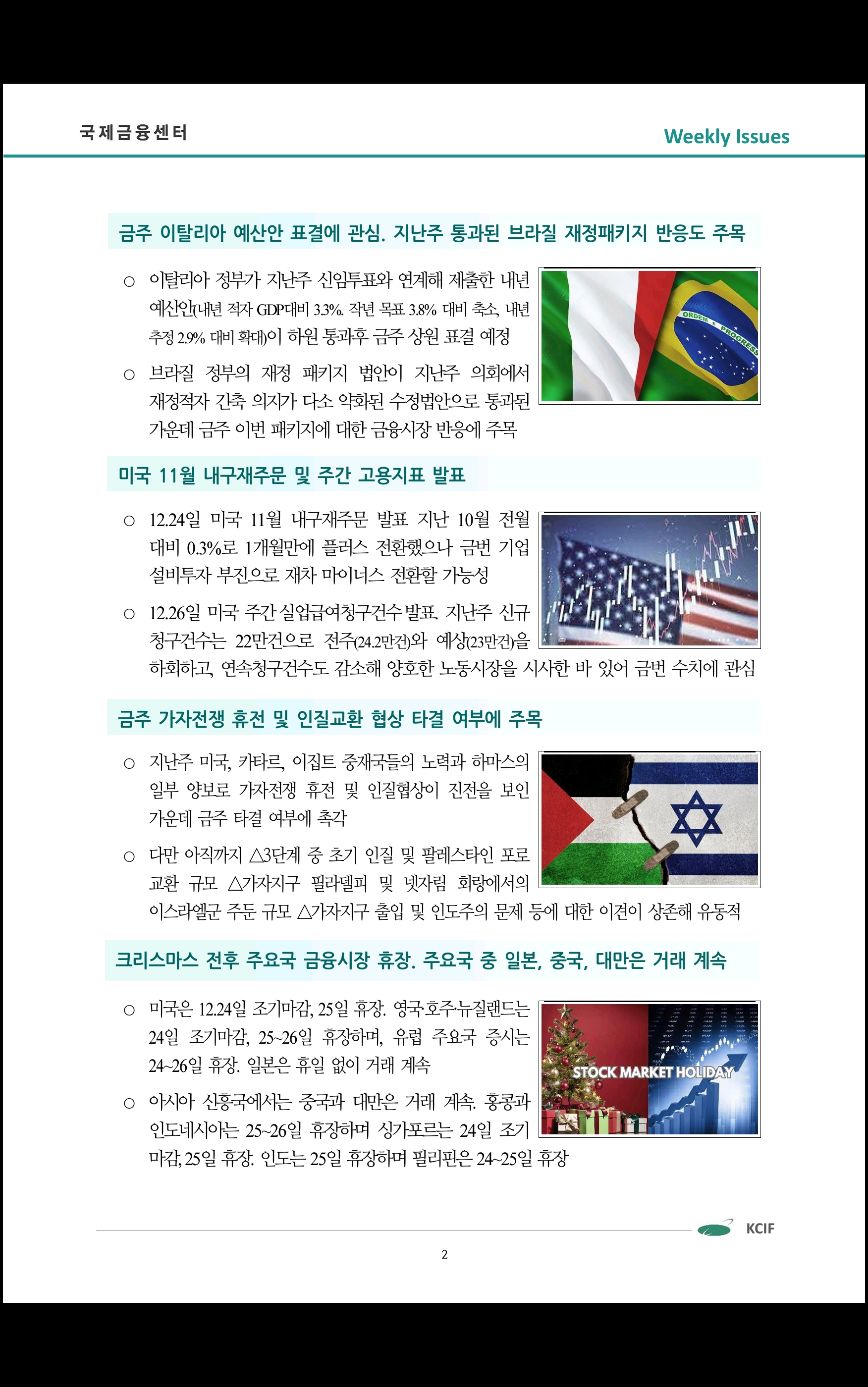 주간 국제금융 주요 이슈 및 전망 ('24.12.23 국제금융센터)