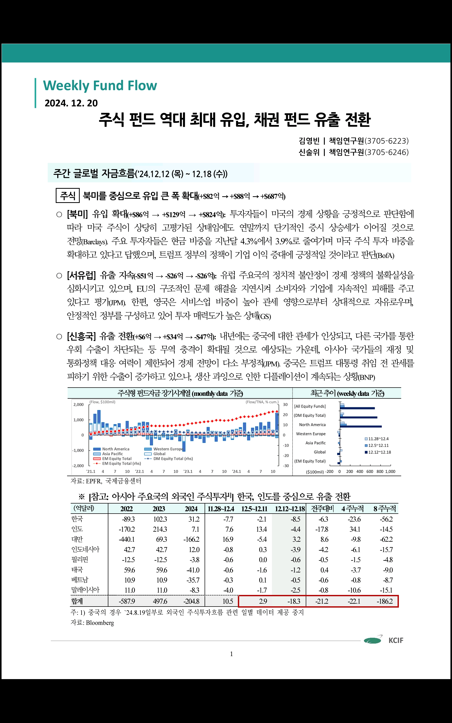 Weekly Fund Flow ('24.12.20 국제금융센터)