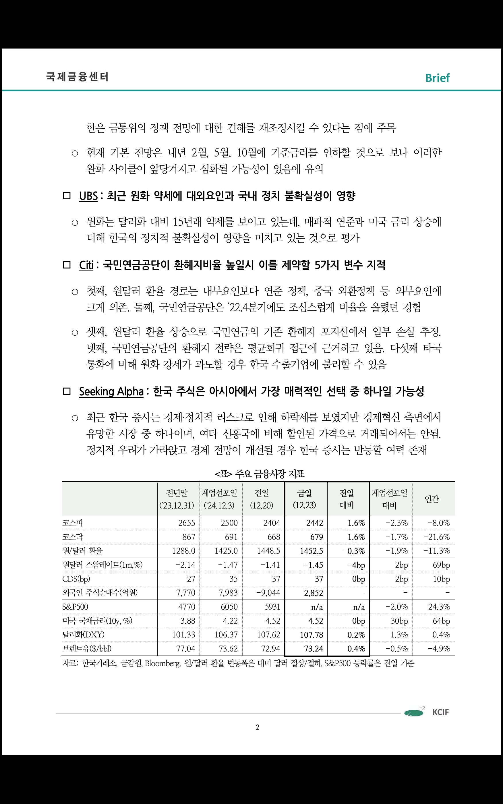 데일리 브리핑 ('24.12.23 국제금융센터)