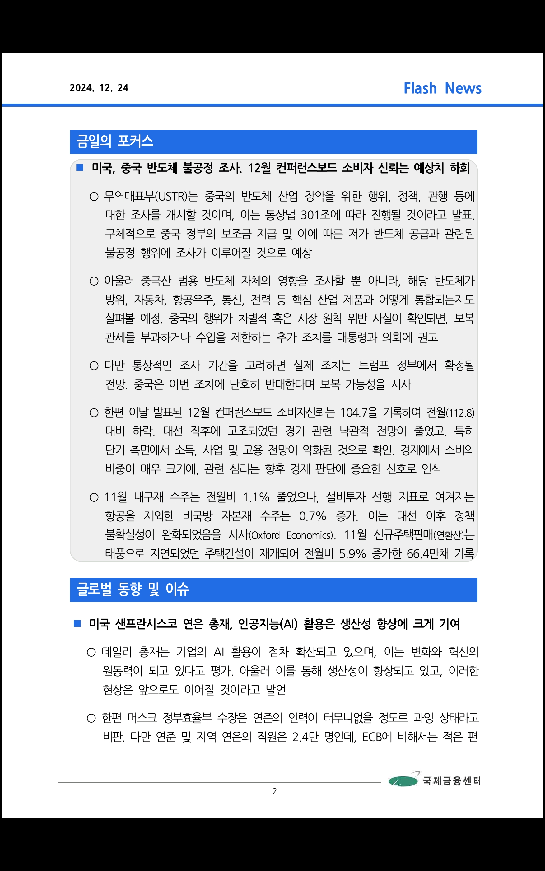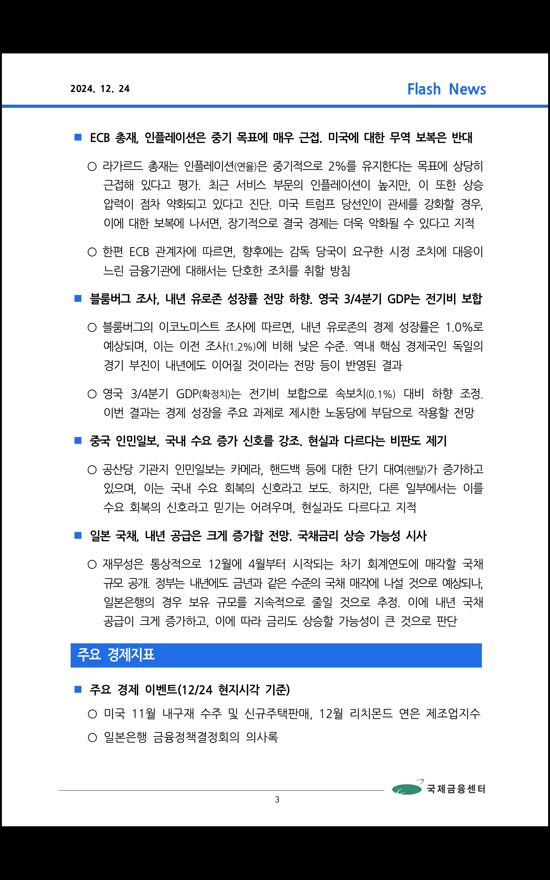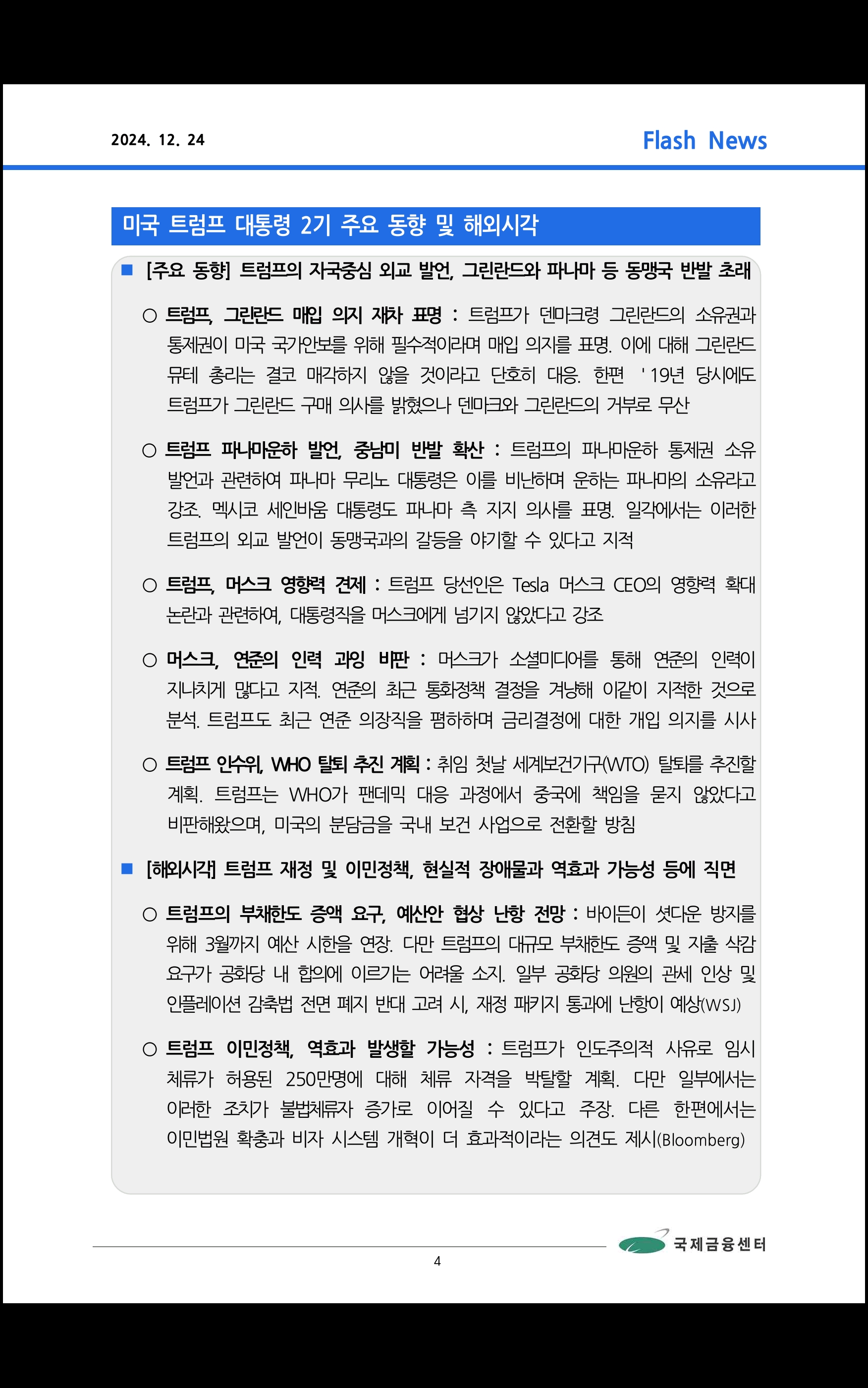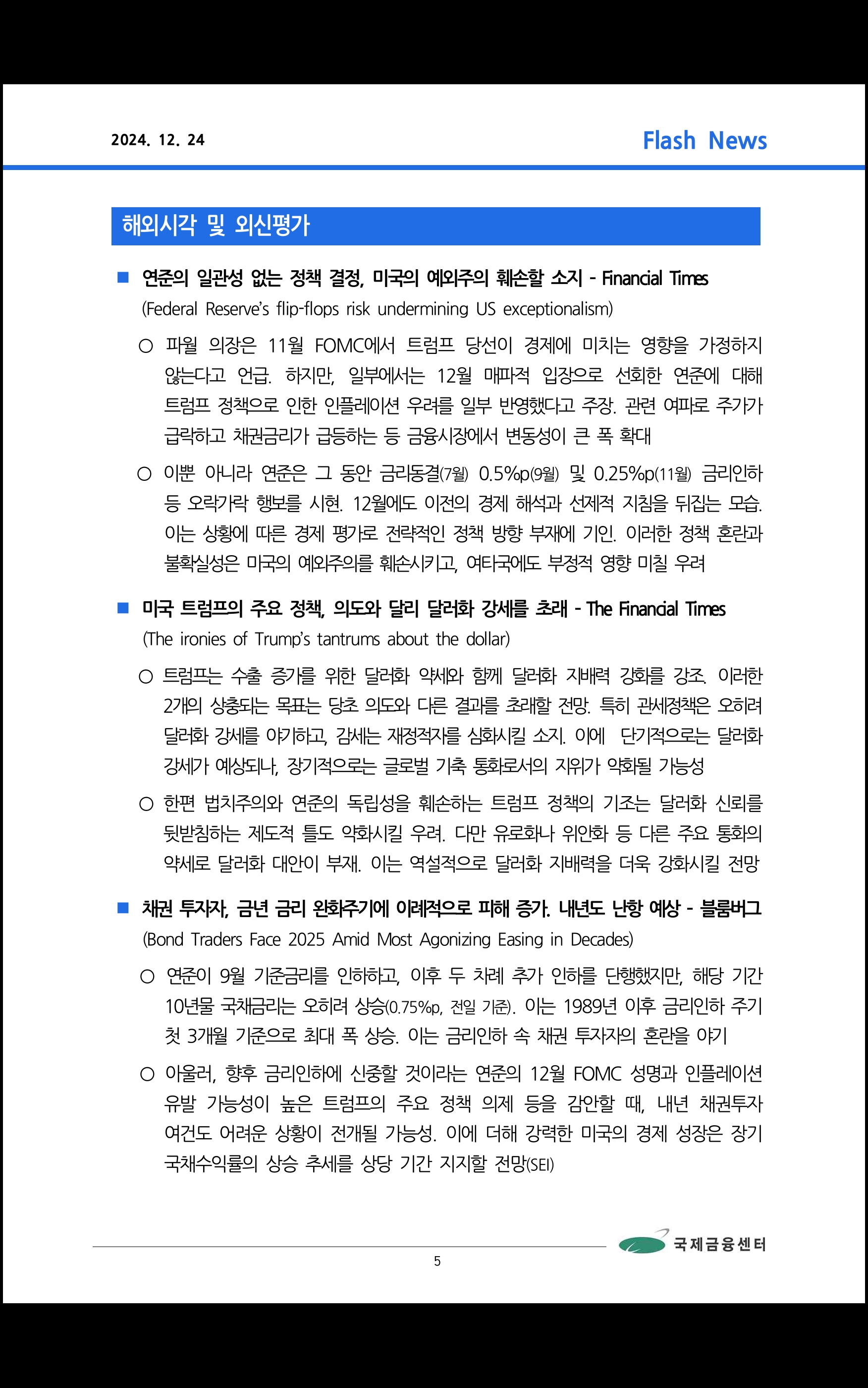 데일리 브리핑 ('24.12.24 국제금융센터)