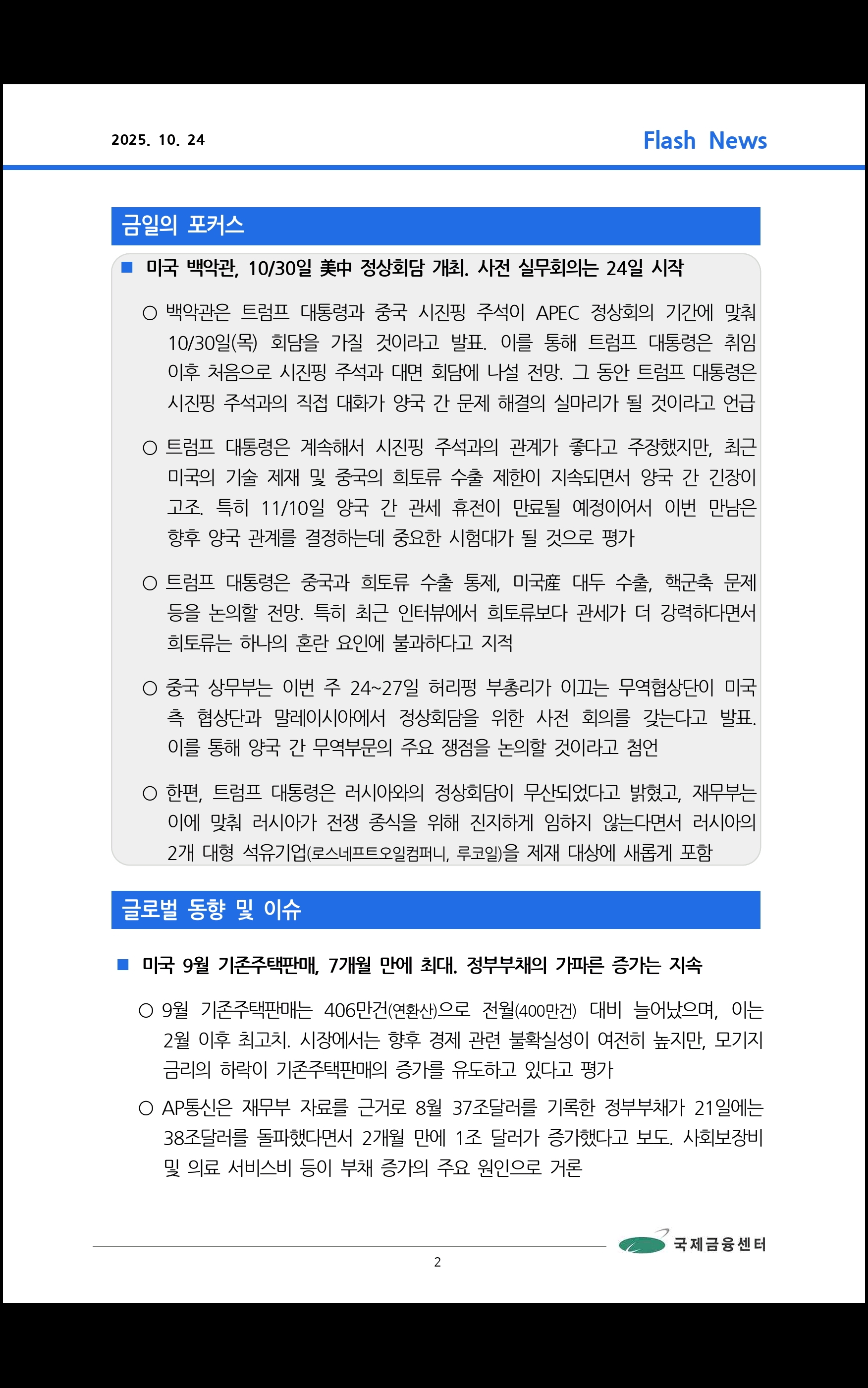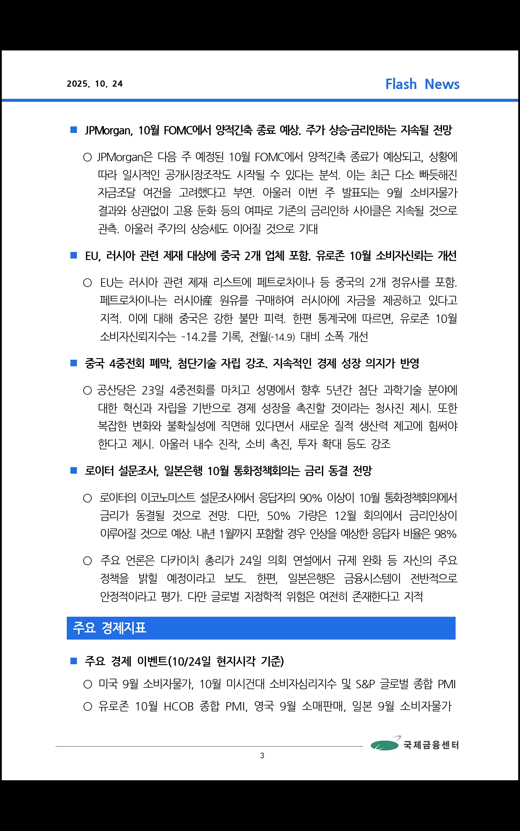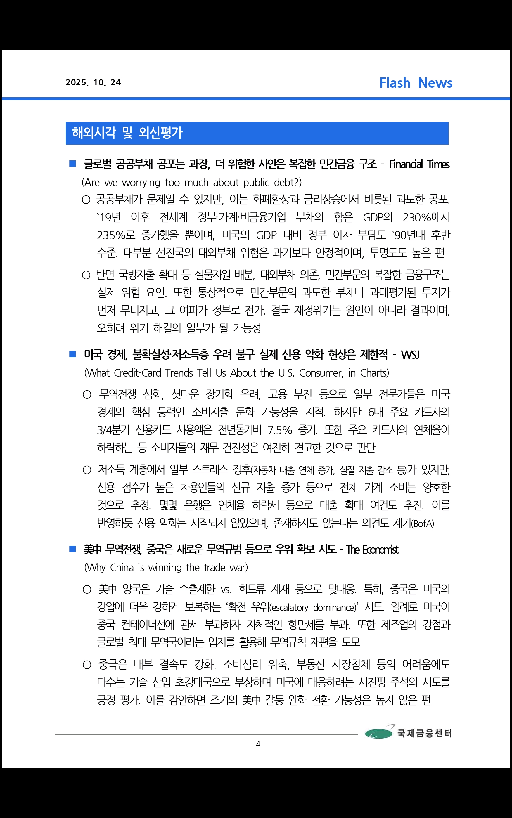 데일리 브리핑 ('25.10.24 국제금융센터)