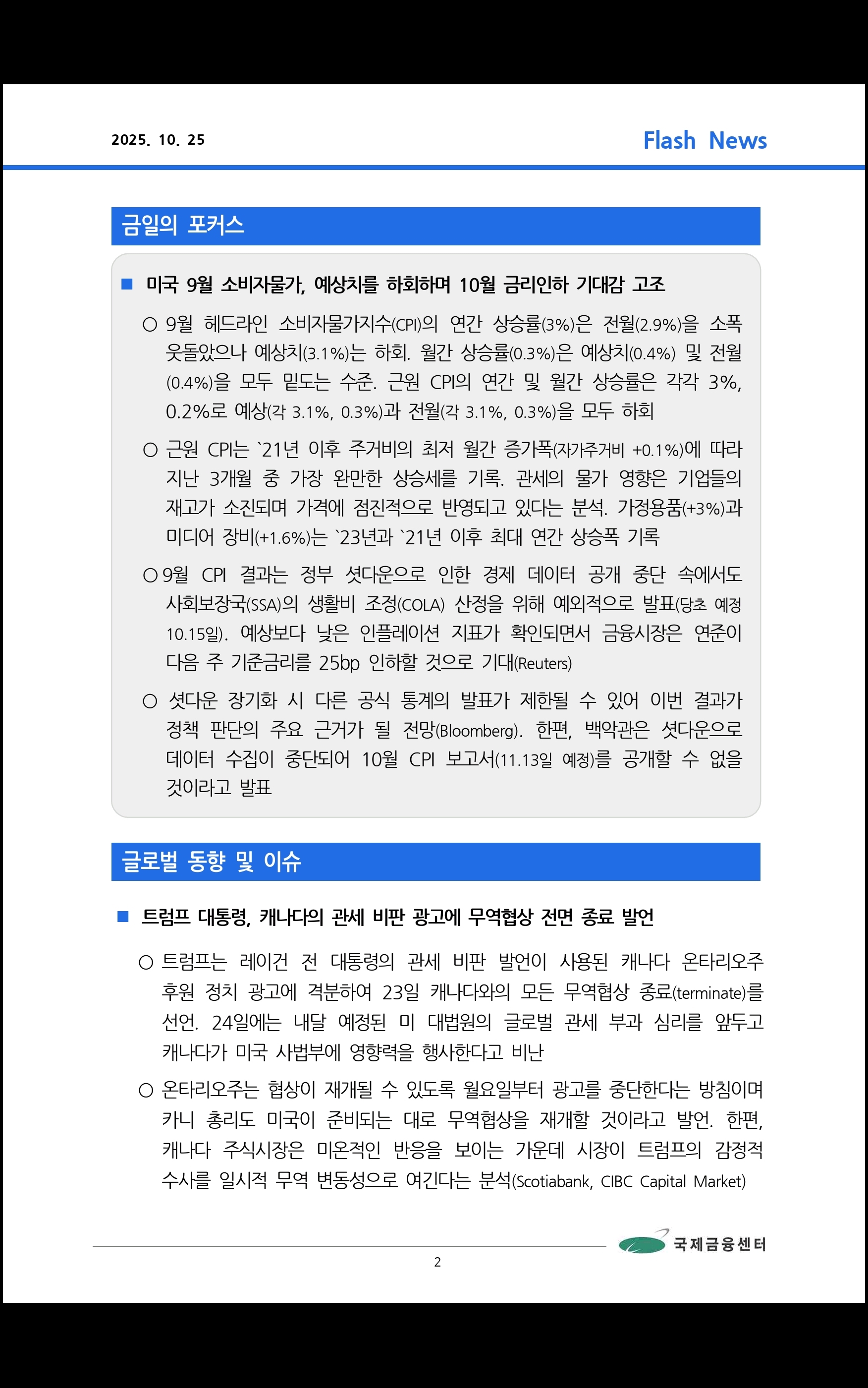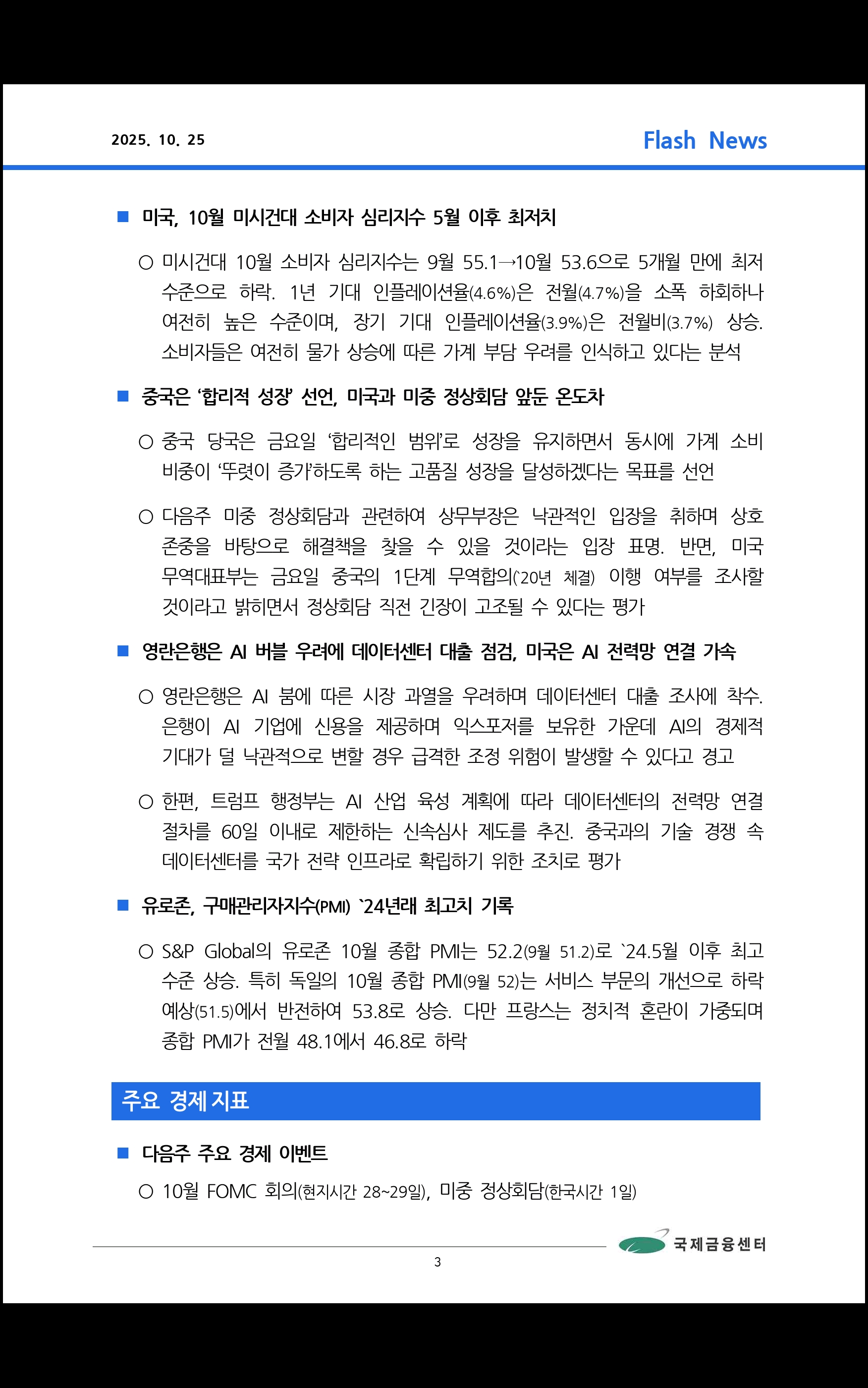 데일리 브리핑 ('25.10.25 국제금융센터)