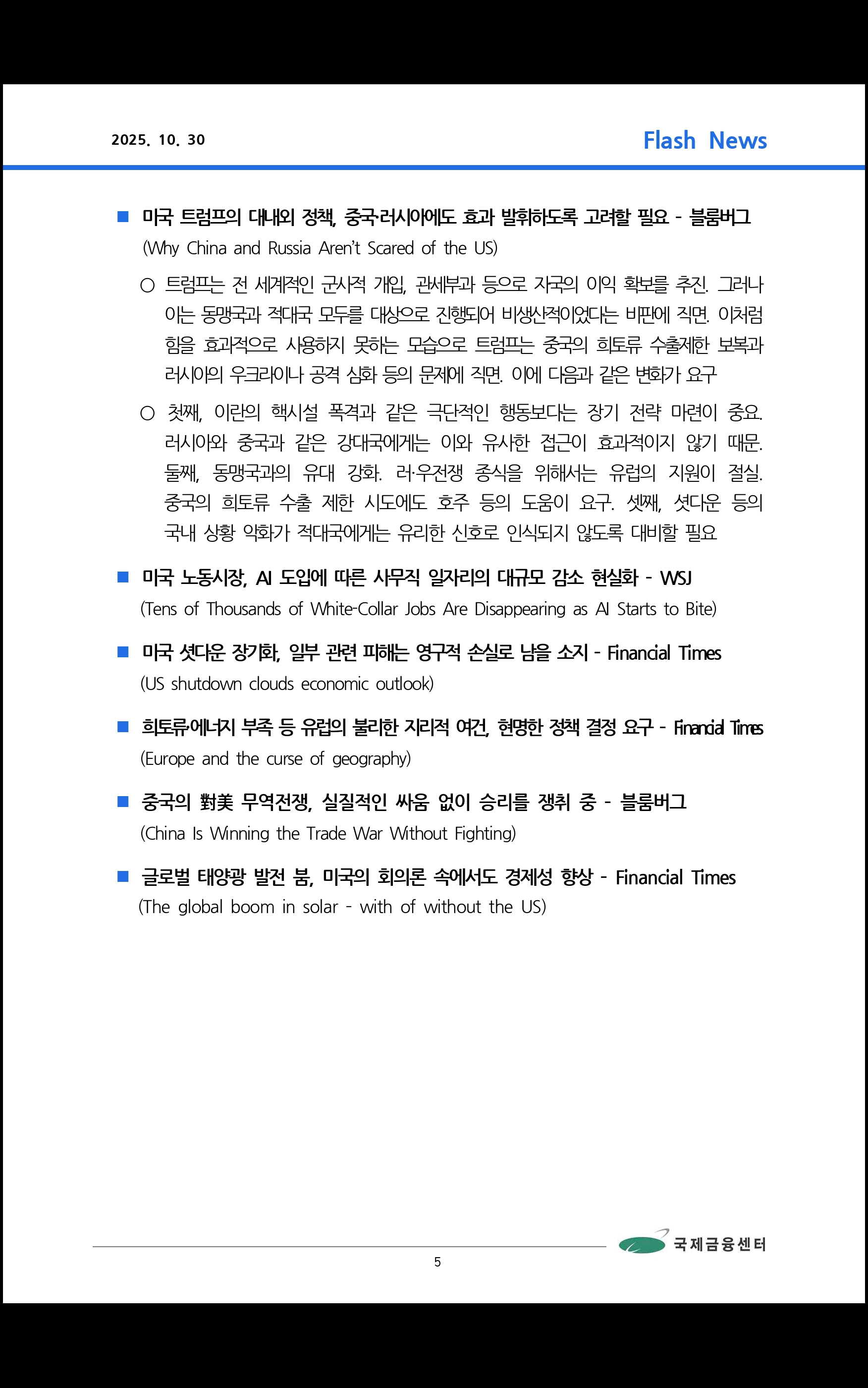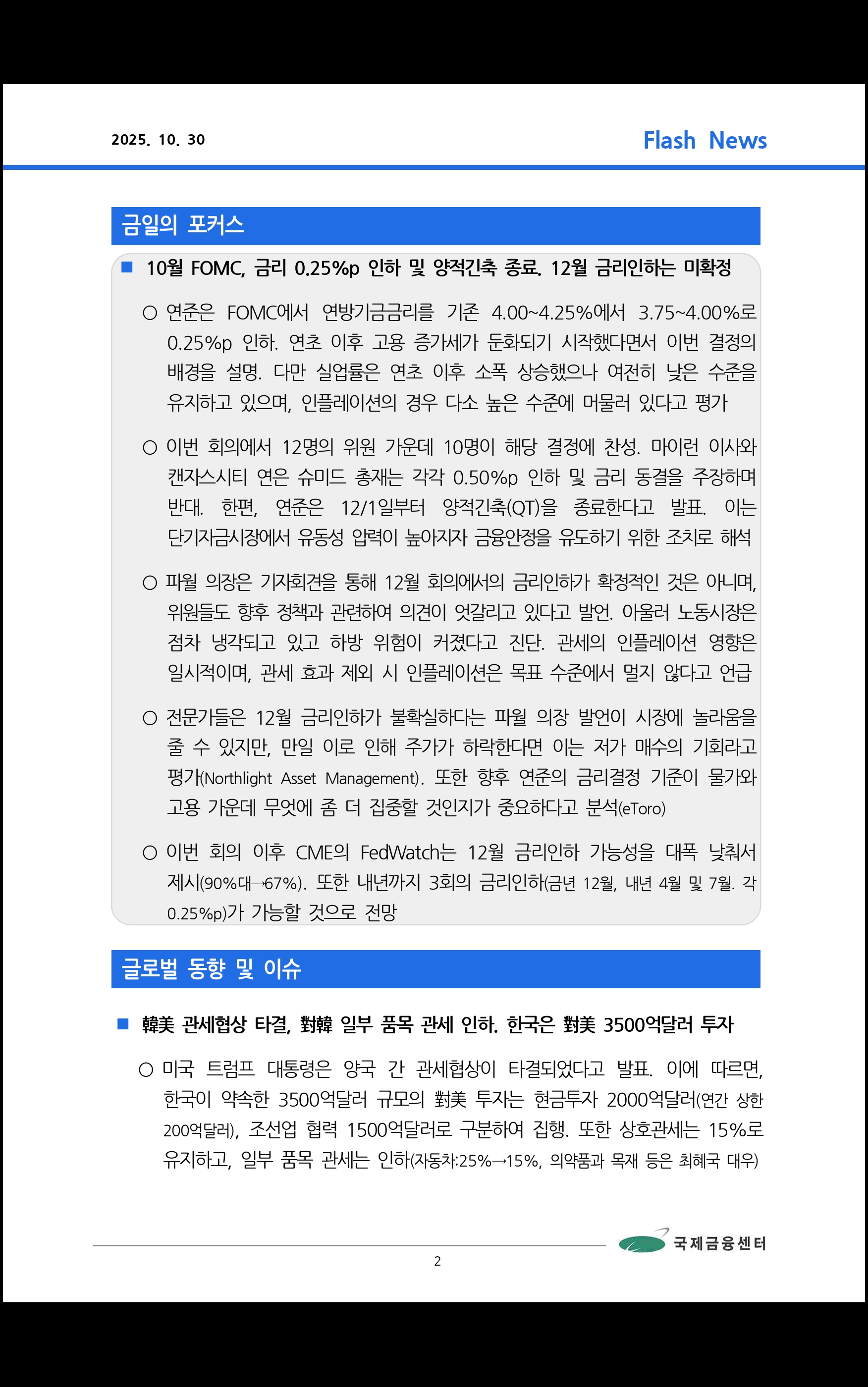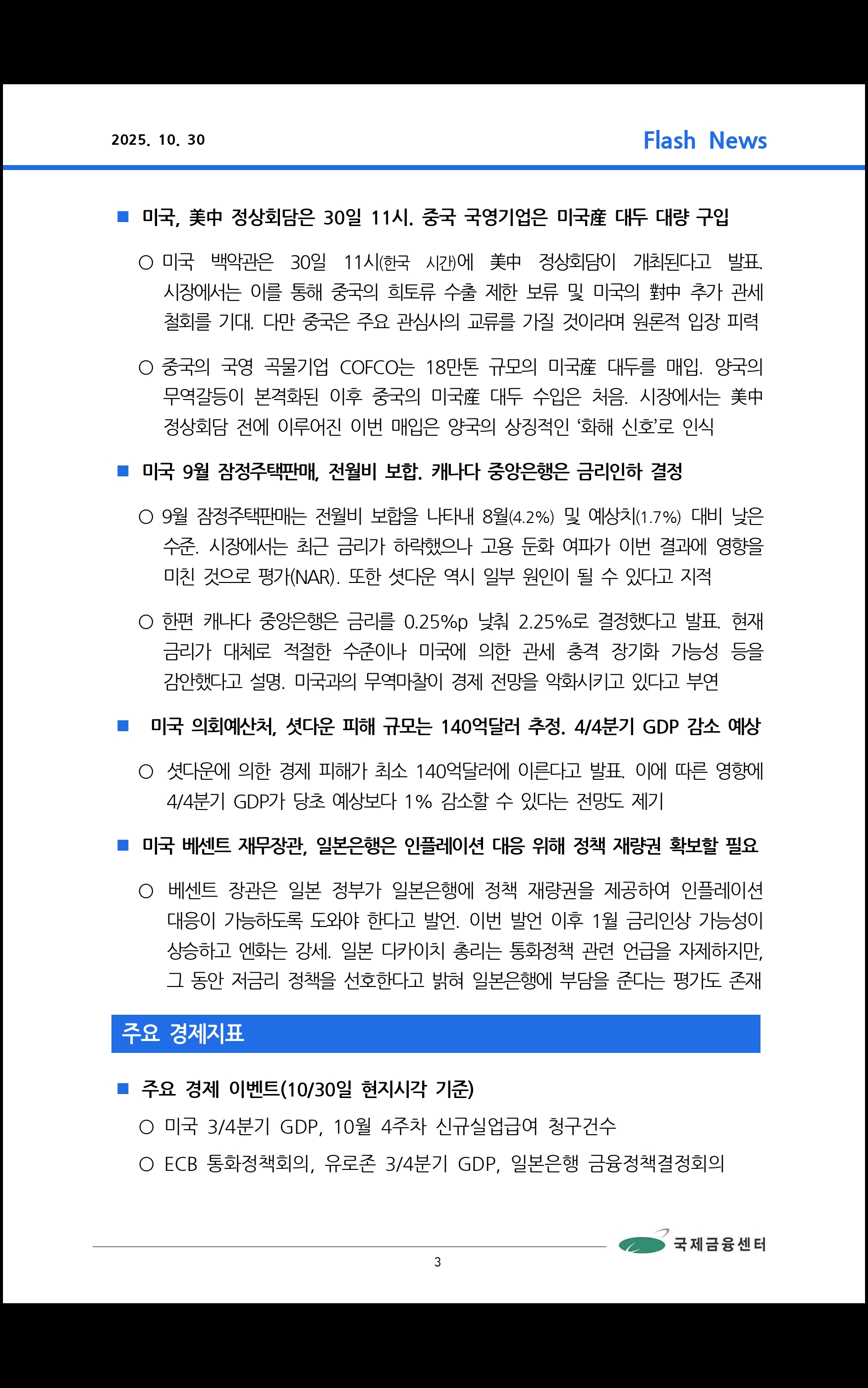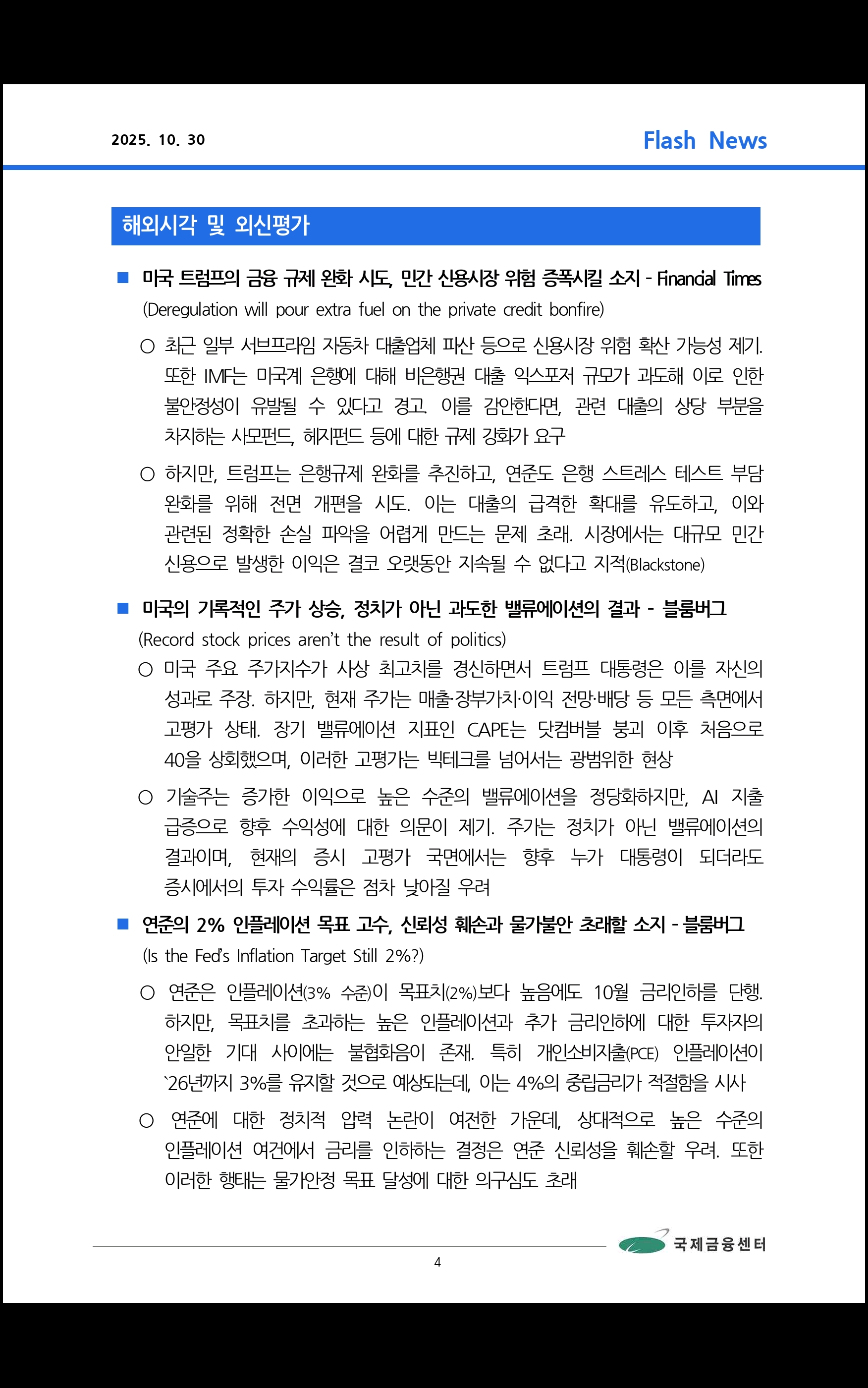 데일리 브리핑 ('25.10.30 국제금융센터)