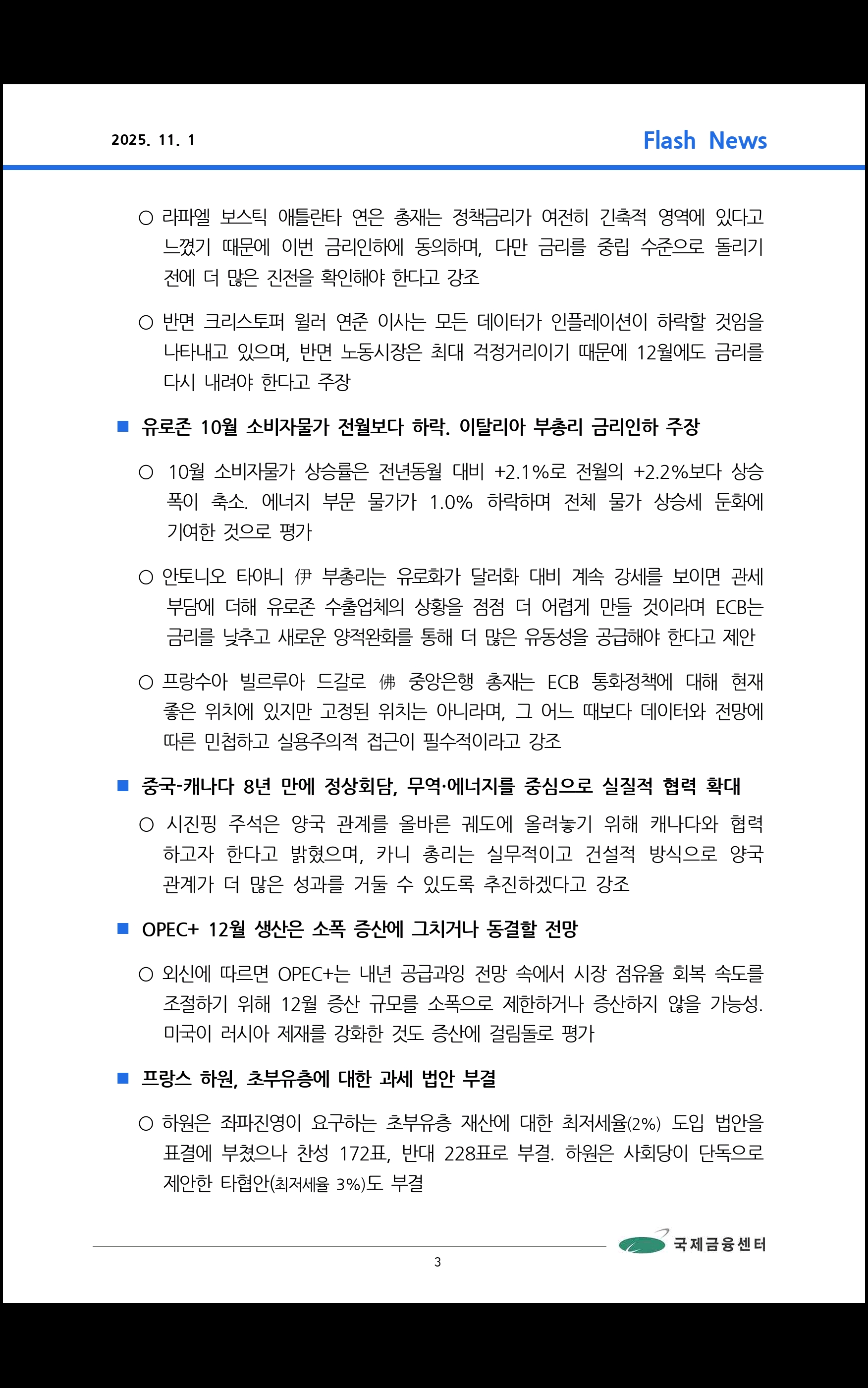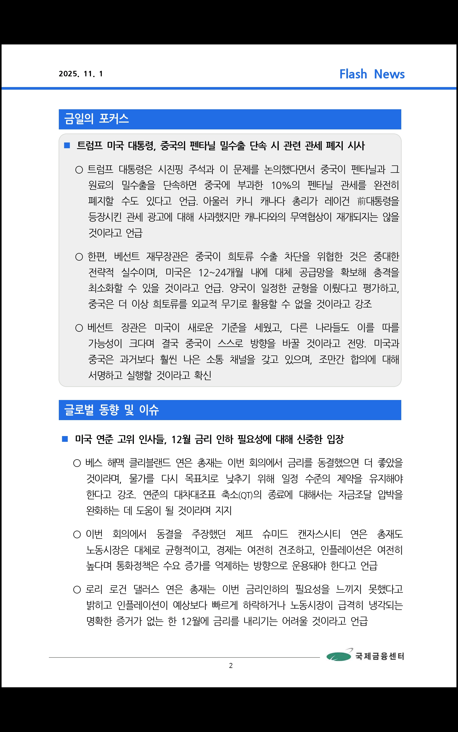 데일리 브리핑 ('25.11.1 국제금융센터)