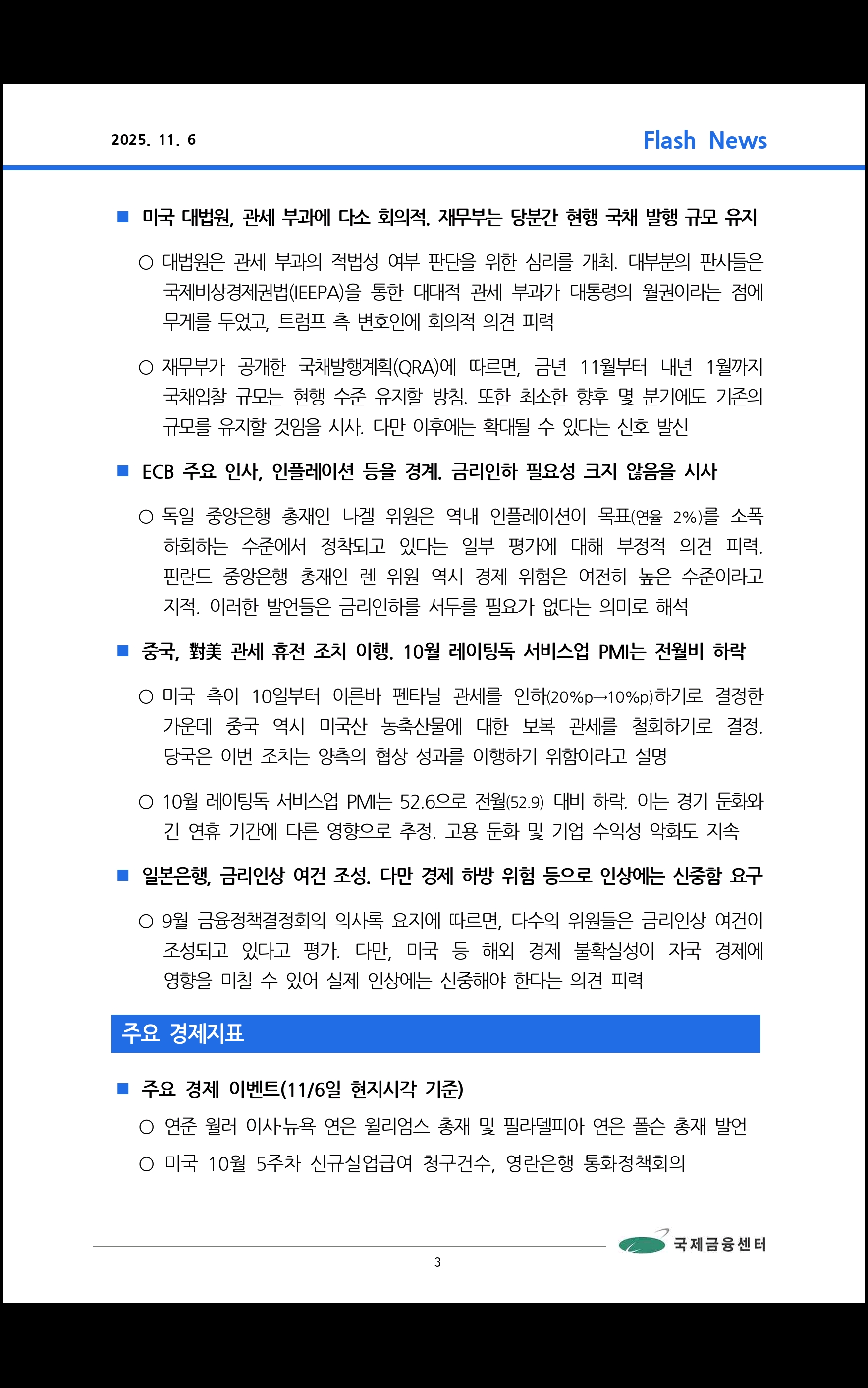 데일리 브리핑 ('25.11.3 국제금융센터)