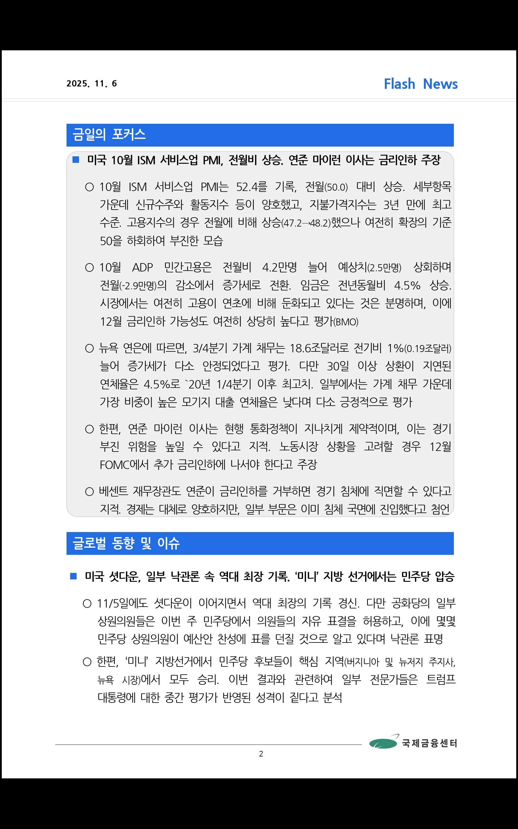 데일리 브리핑 ('25.11.6 국제금융센터)