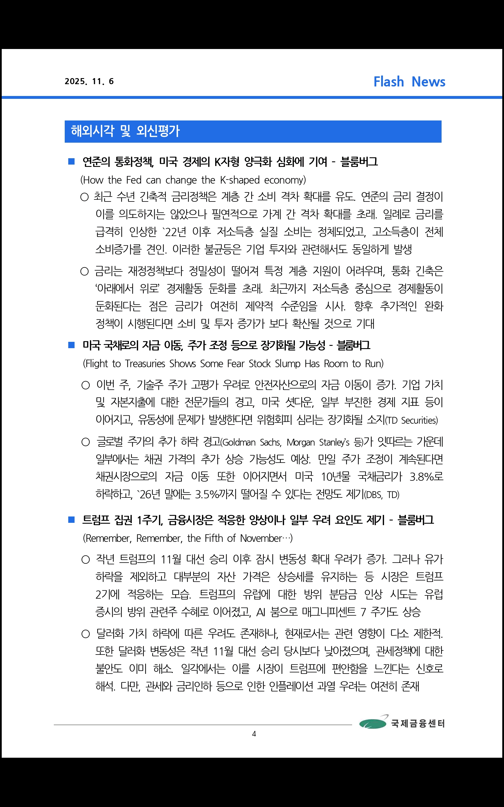 데일리 브리핑 ('25.11.4 국제금융센터)