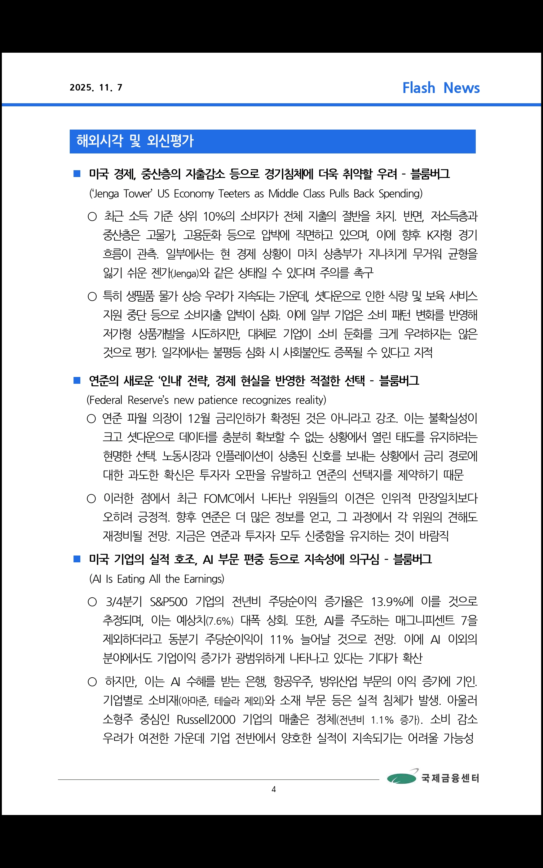 데일리 브리핑 ('25.11.4 국제금융센터)