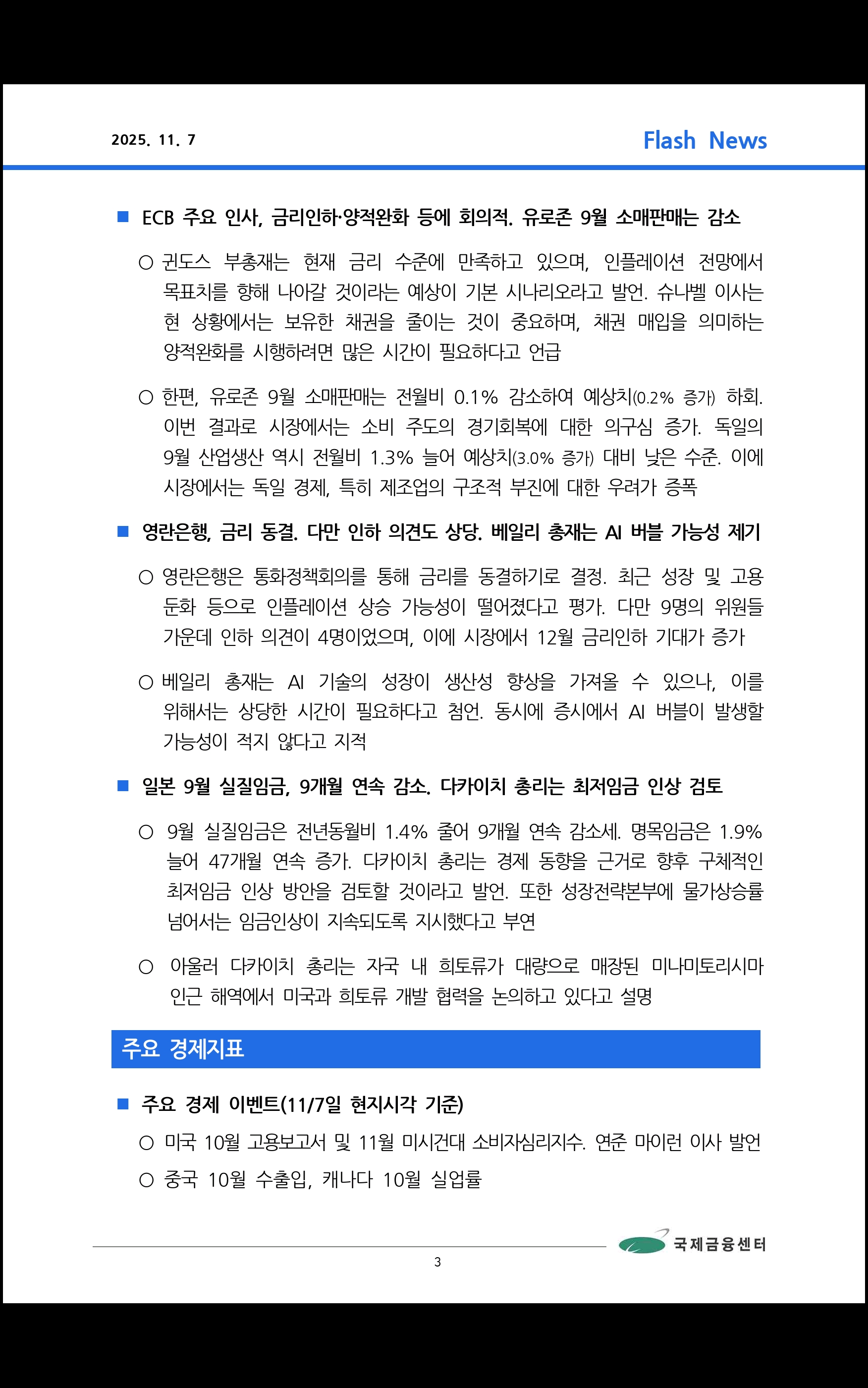 데일리 브리핑 ('25.11.3 국제금융센터)