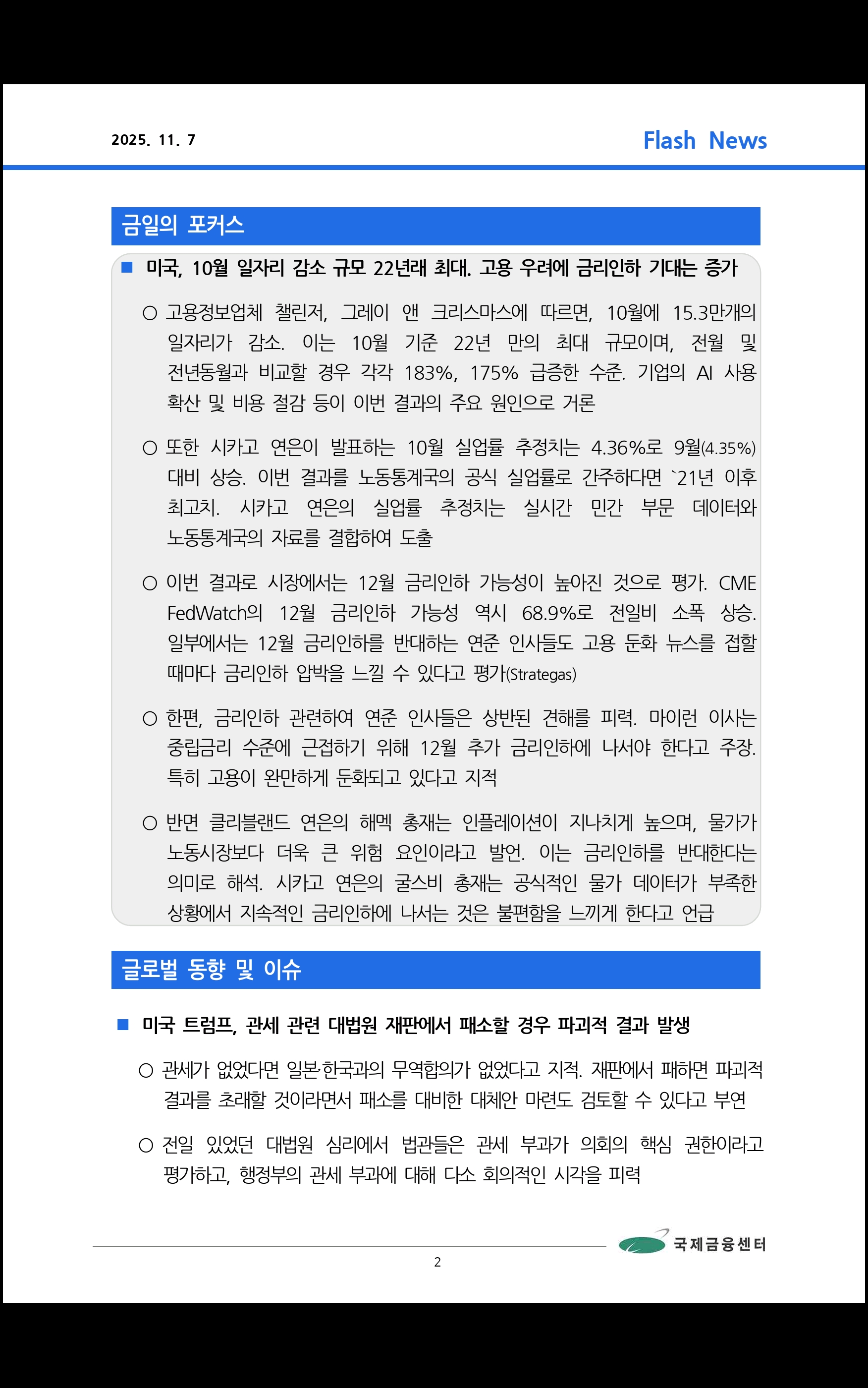 데일리 브리핑 ('25.11.7 국제금융센터)