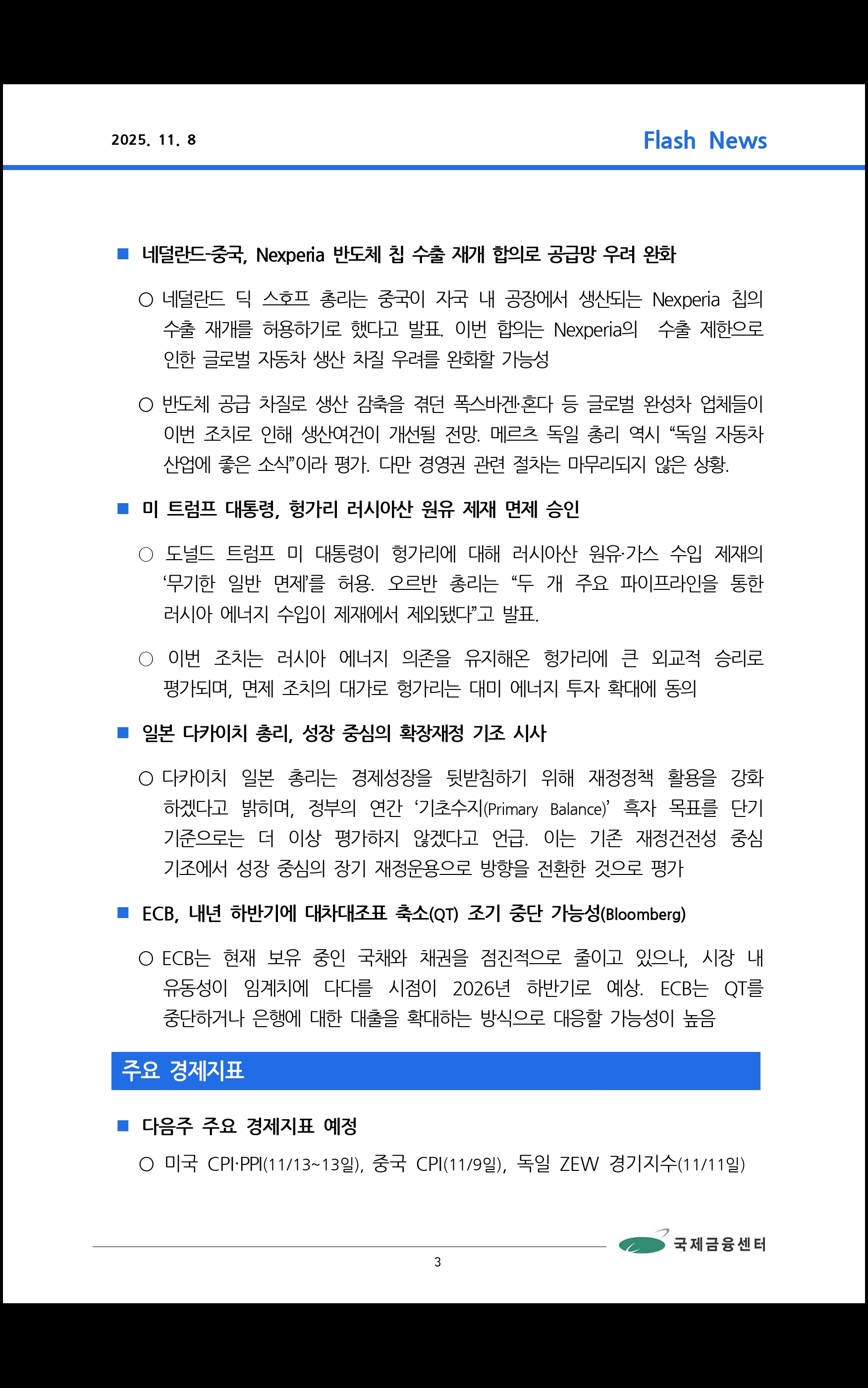 데일리 브리핑 ('25.11.3 국제금융센터)