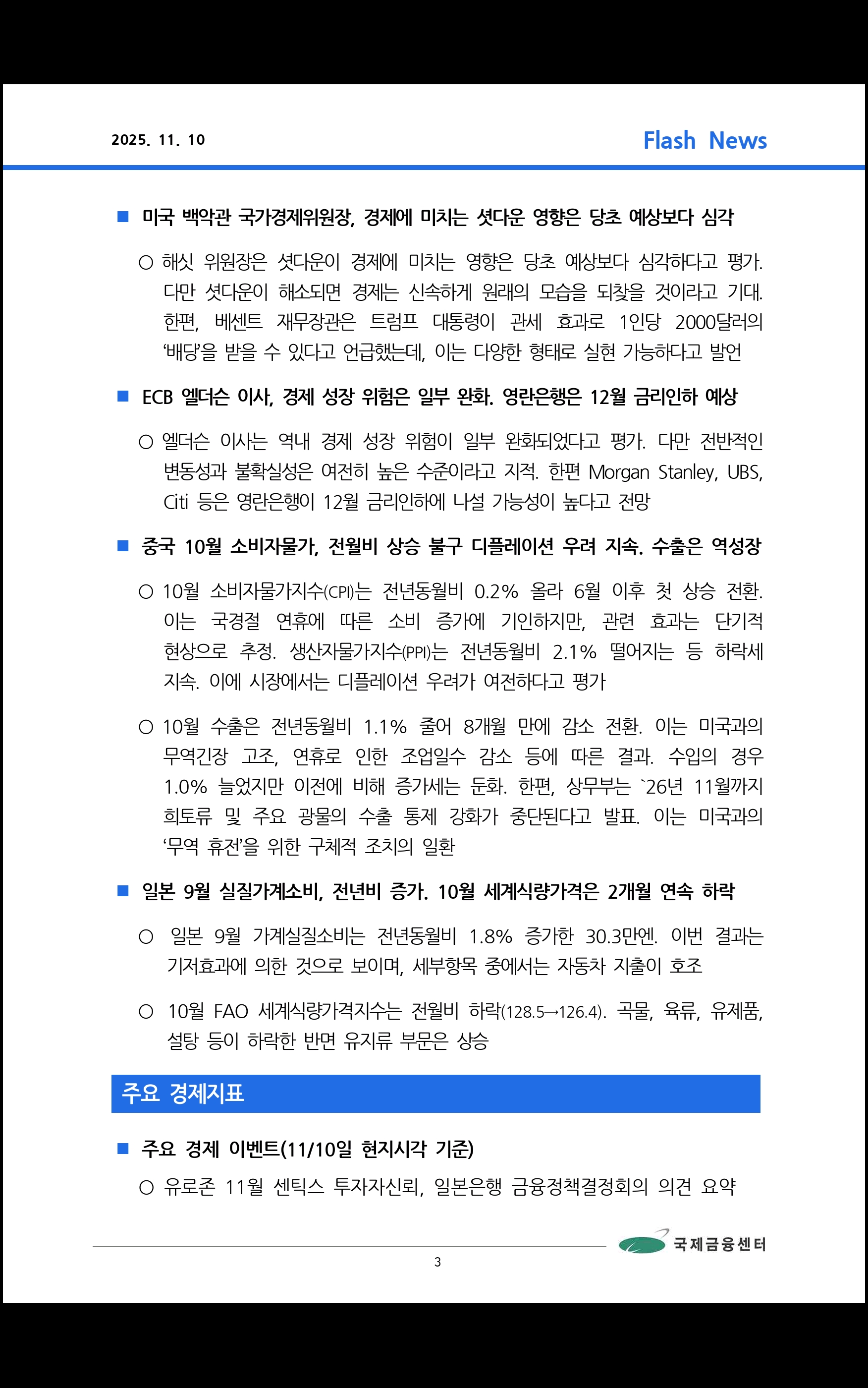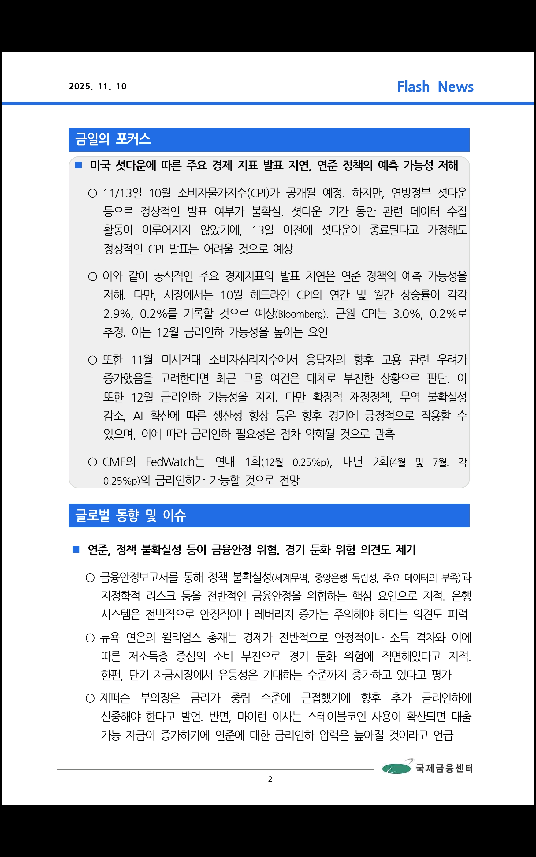 데일리 브리핑 ('25.11.10 국제금융센터)