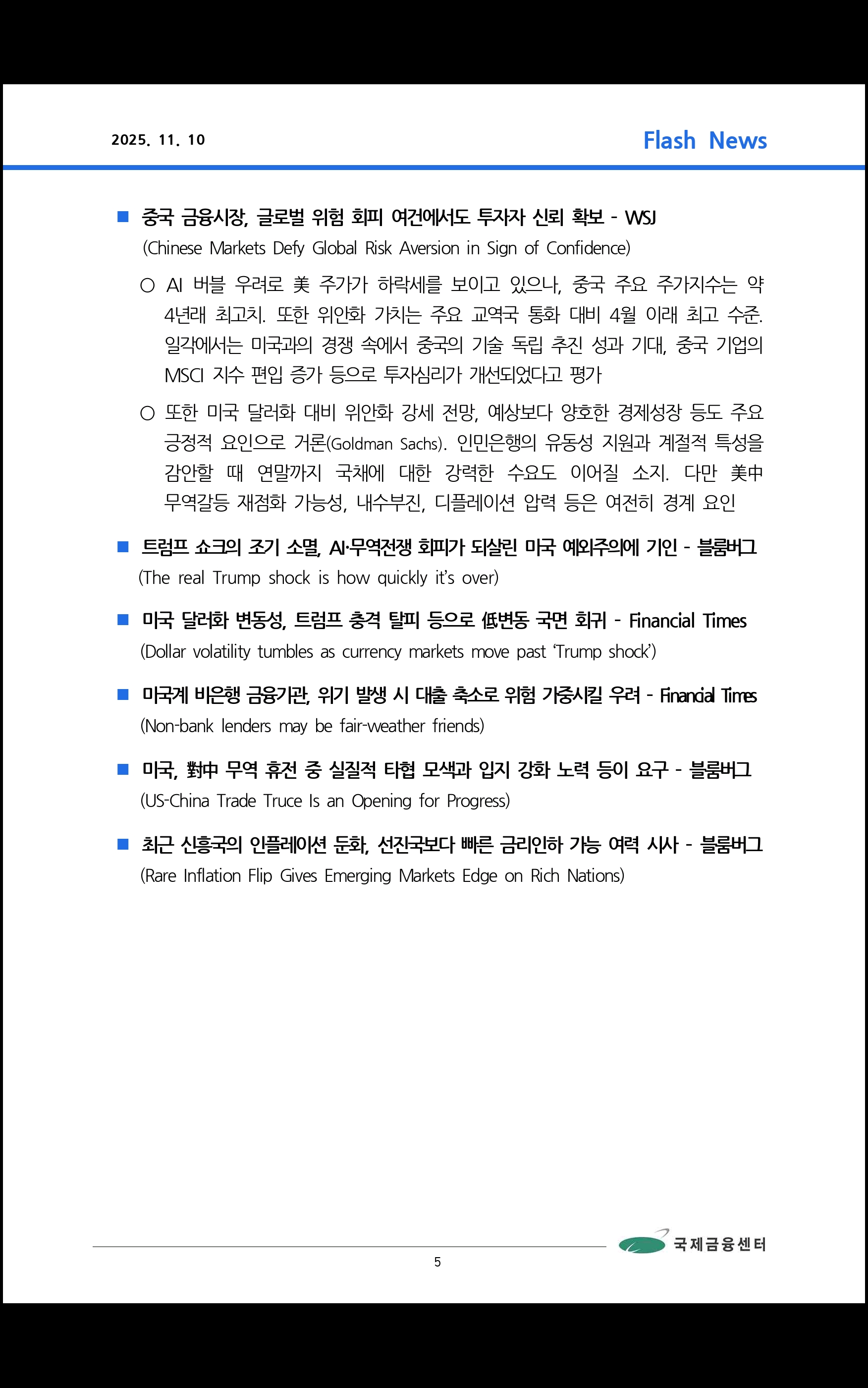 데일리 브리핑 ('25.11.5 국제금융센터)
