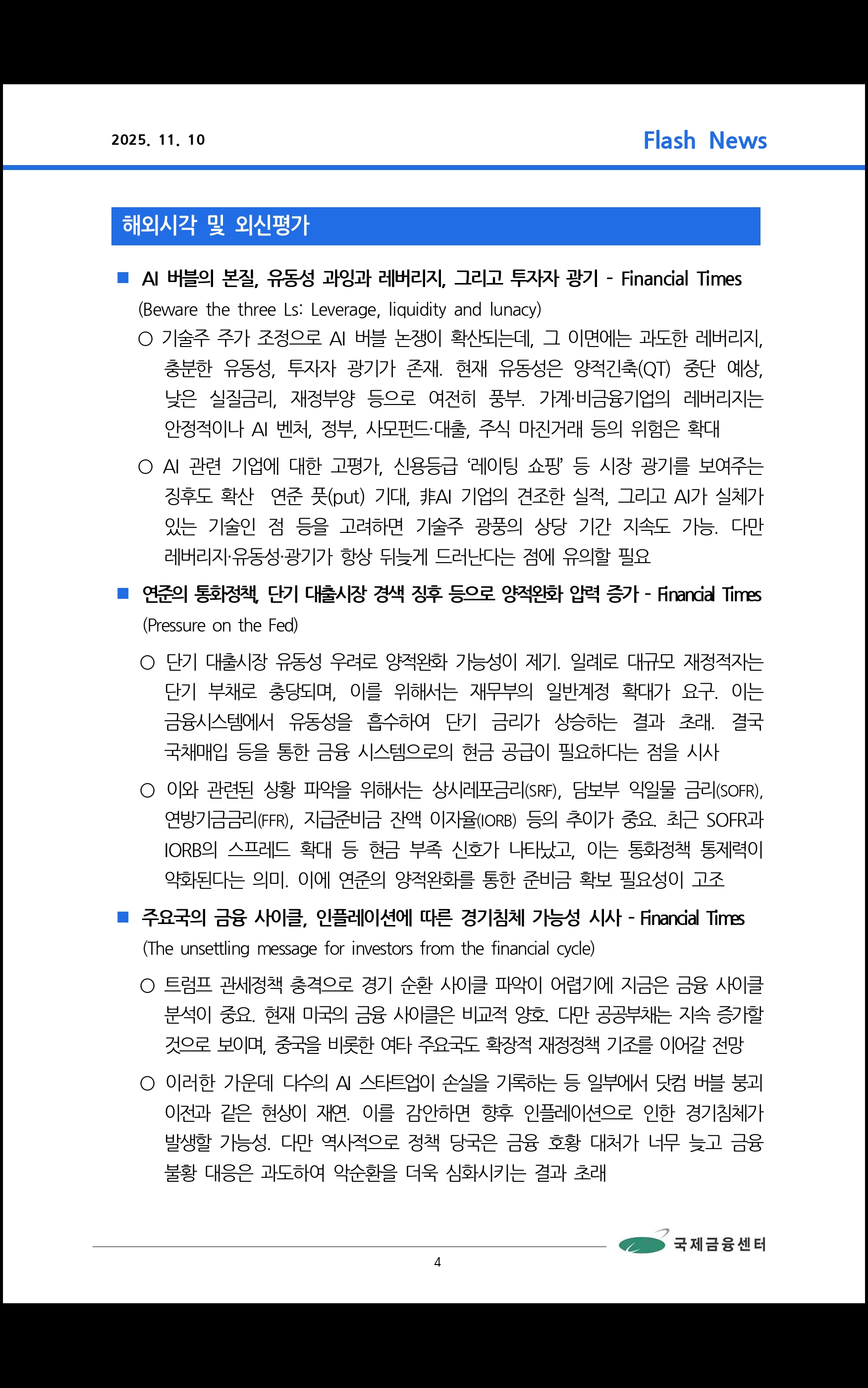 데일리 브리핑 ('25.11.4 국제금융센터)