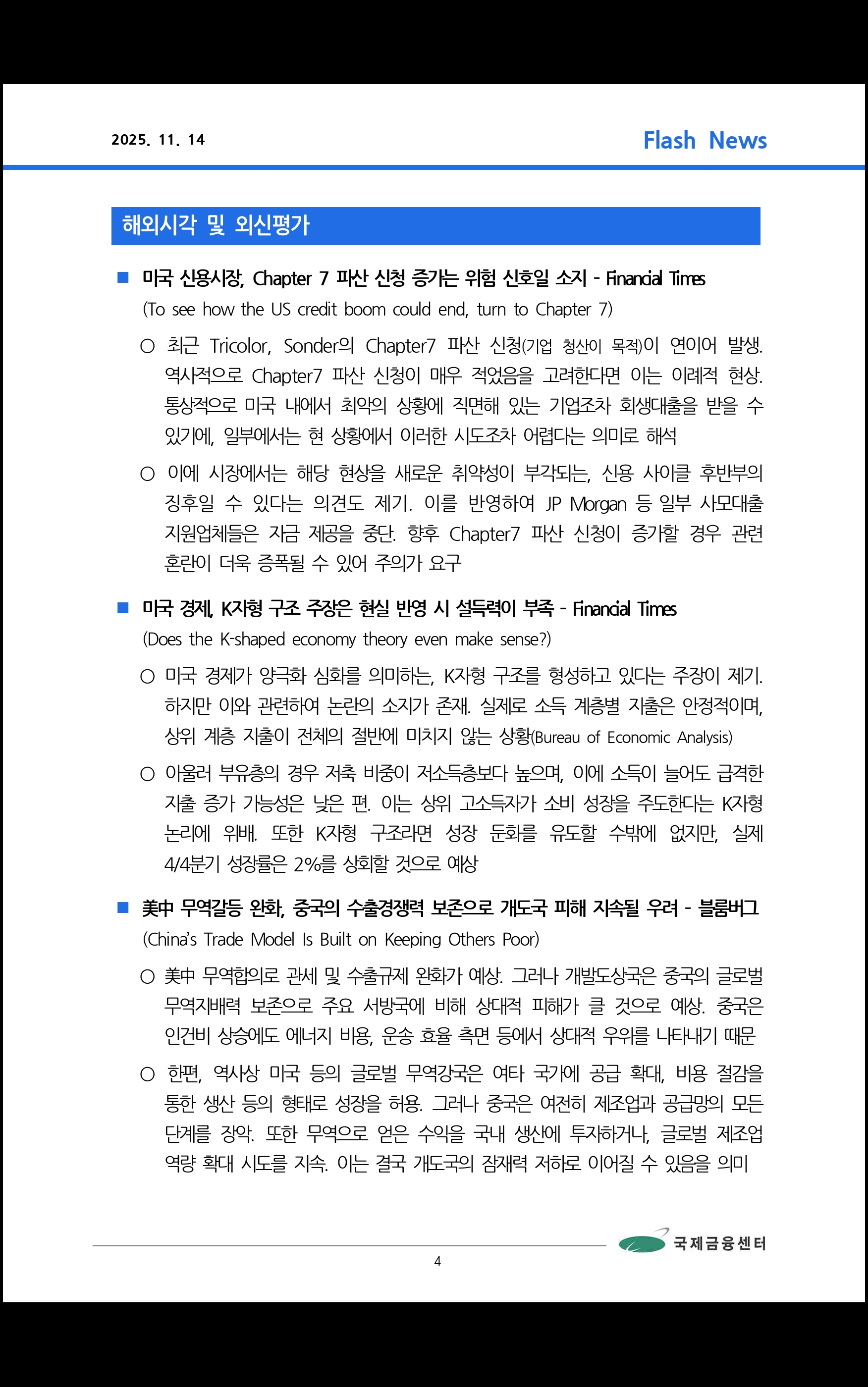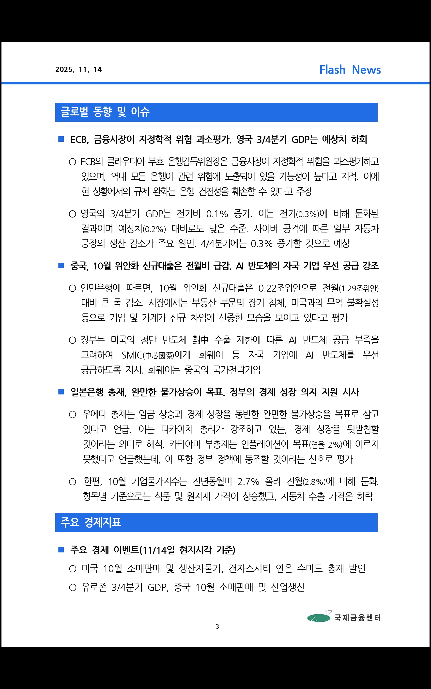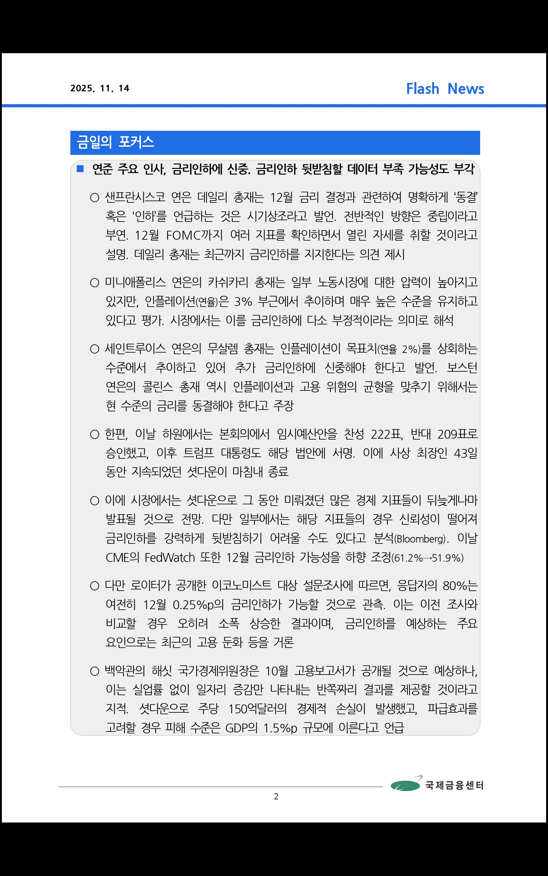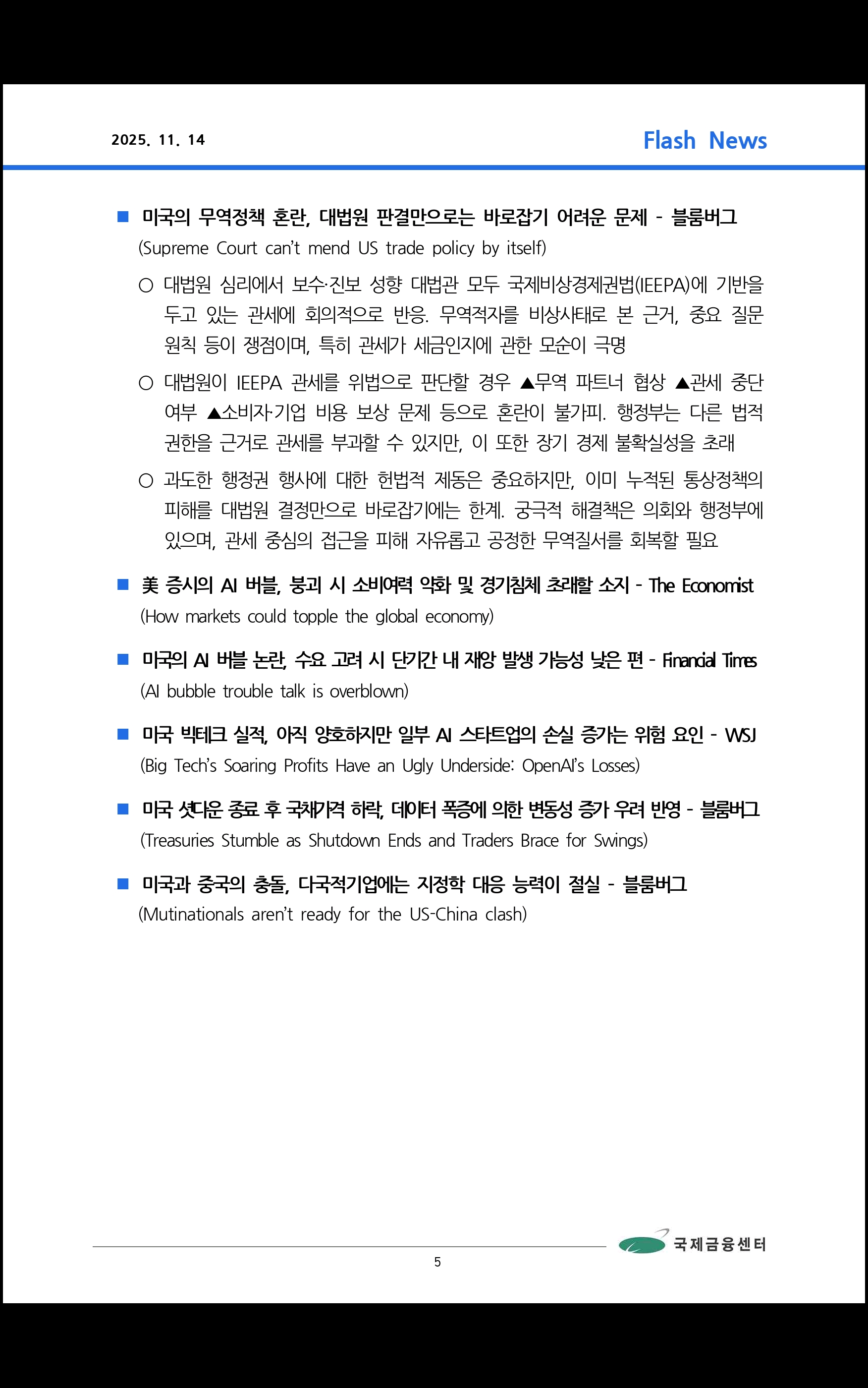 데일리 브리핑 ('25.11.14 국제금융센터)