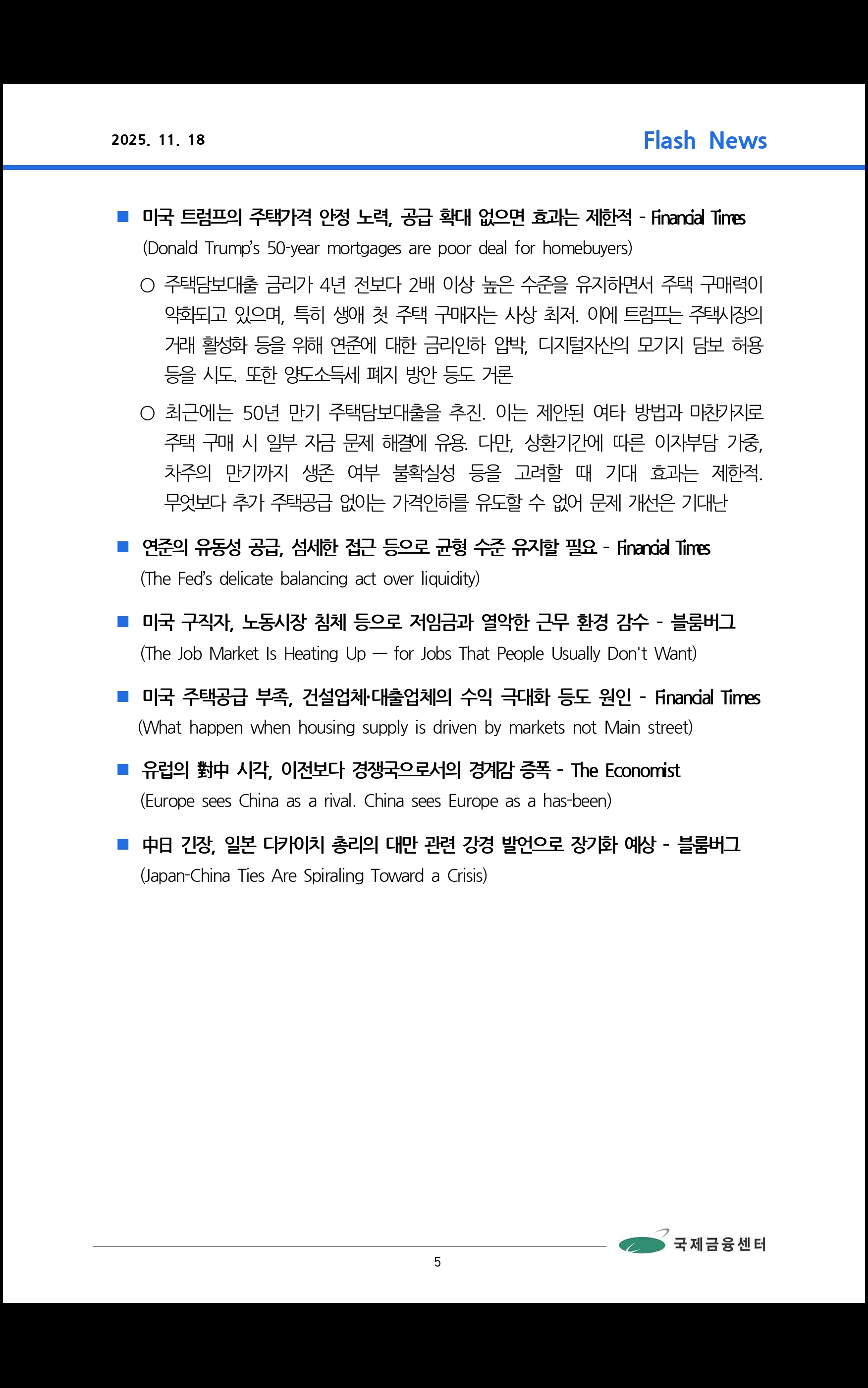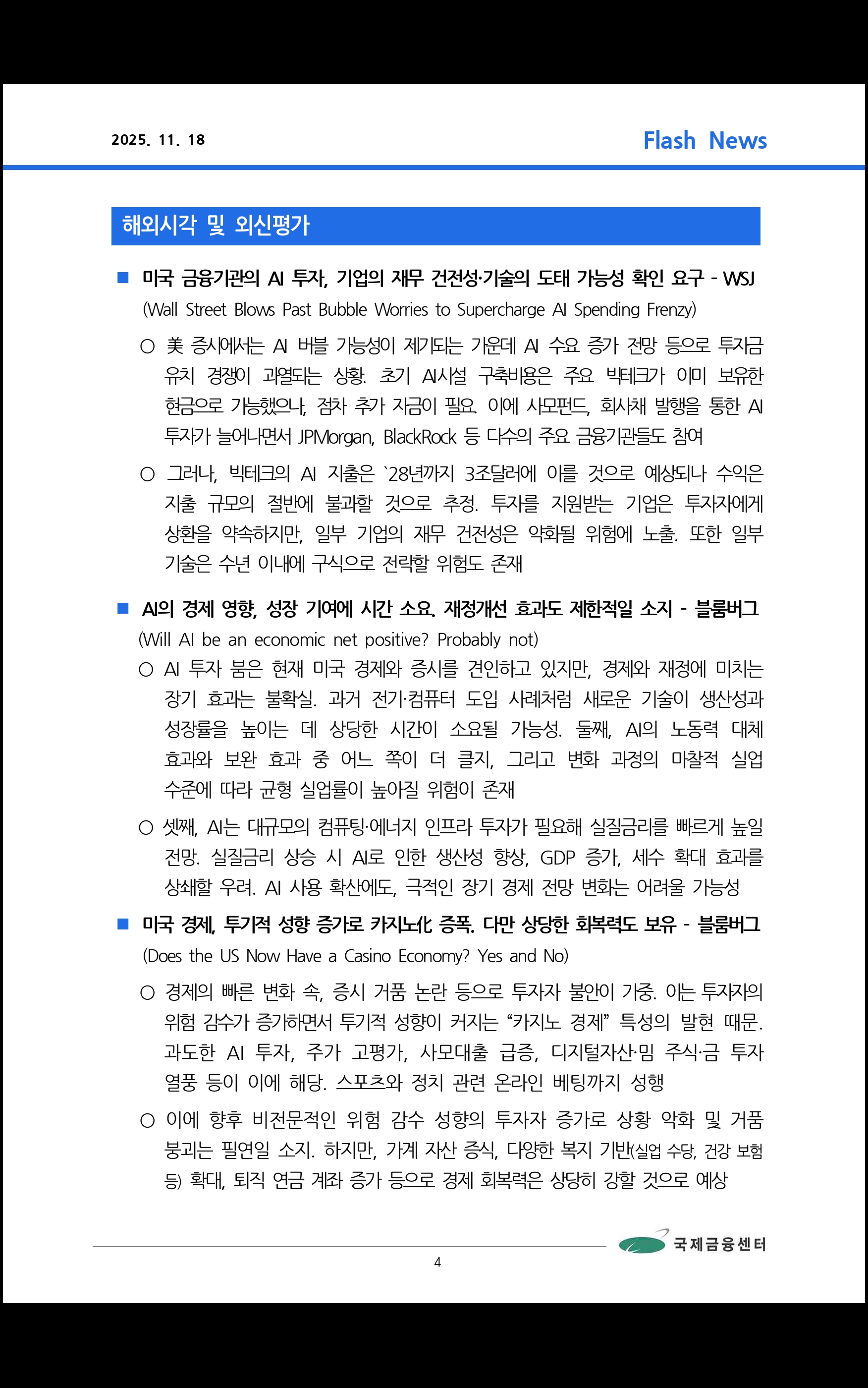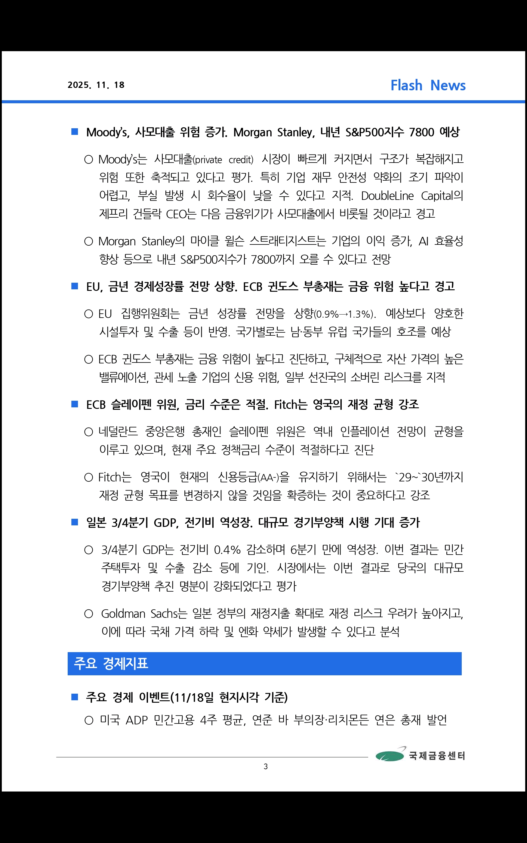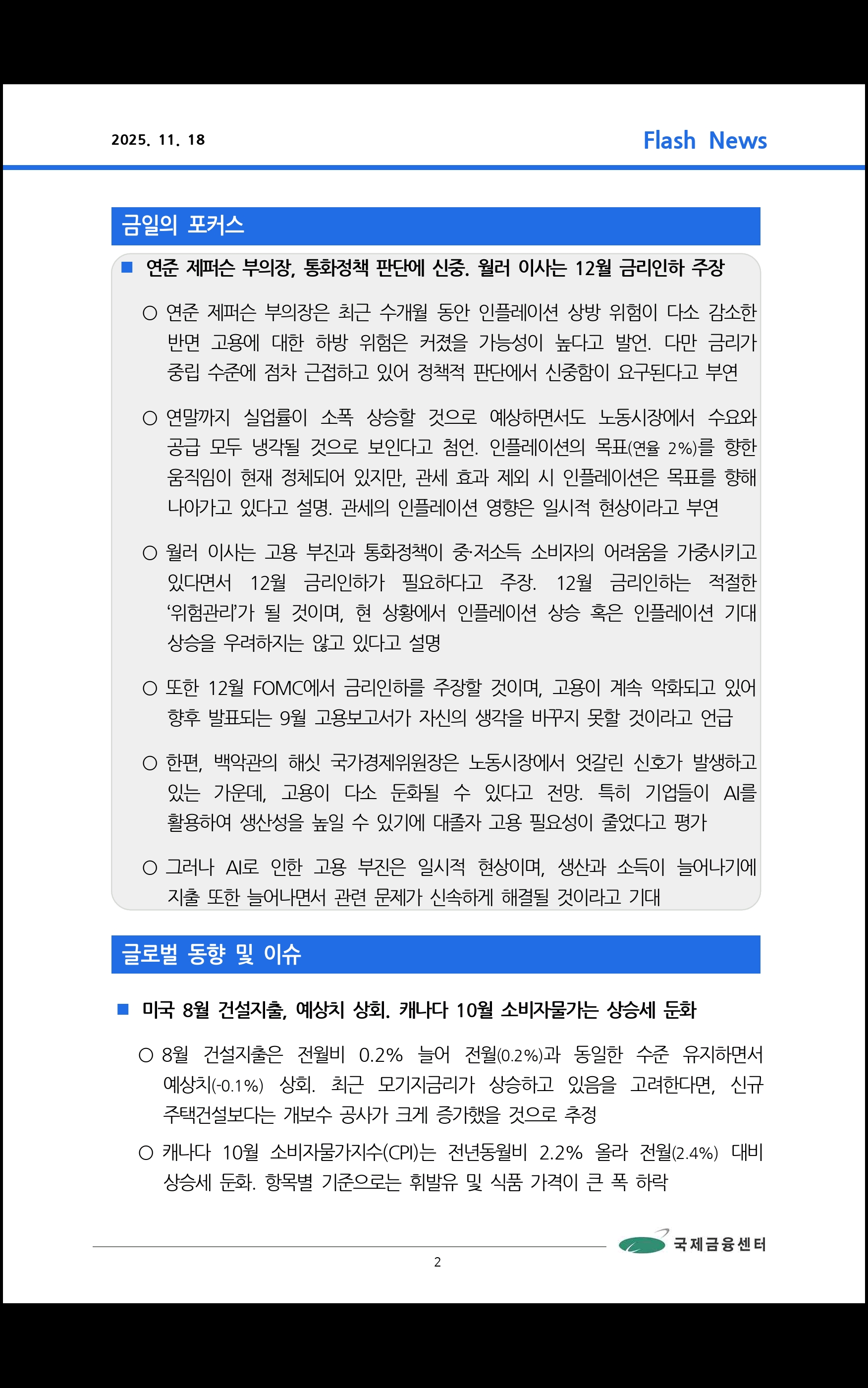 데일리 브리핑 ('25.11.18 국제금융센터)