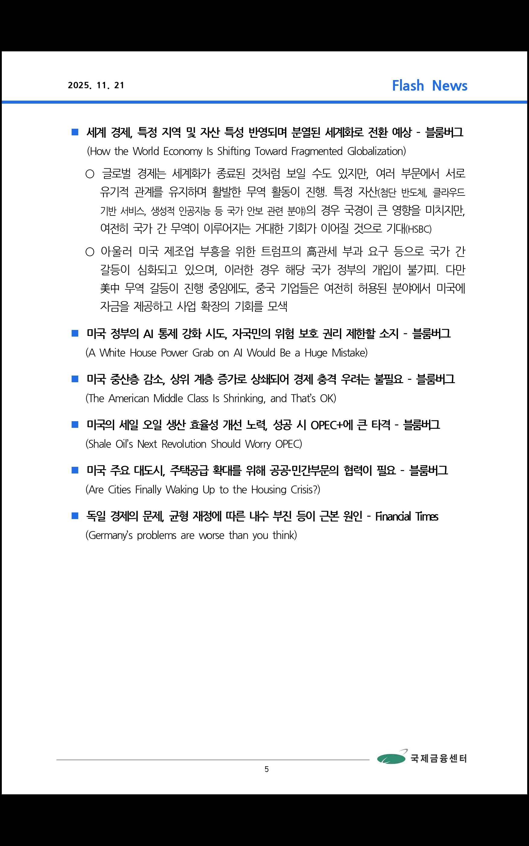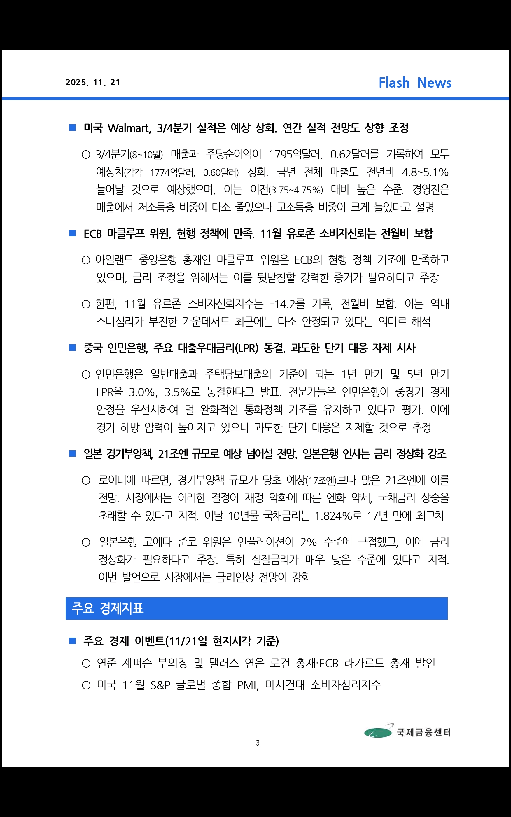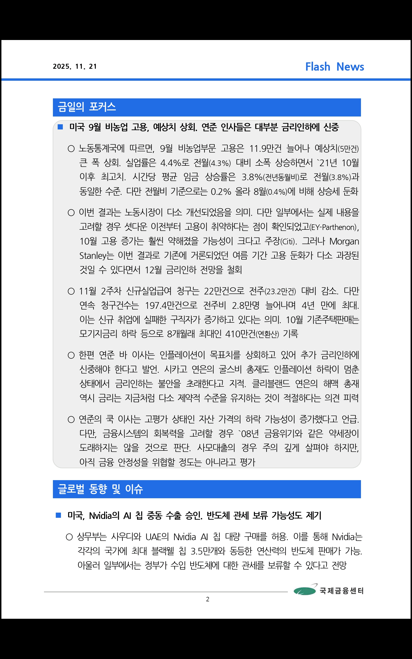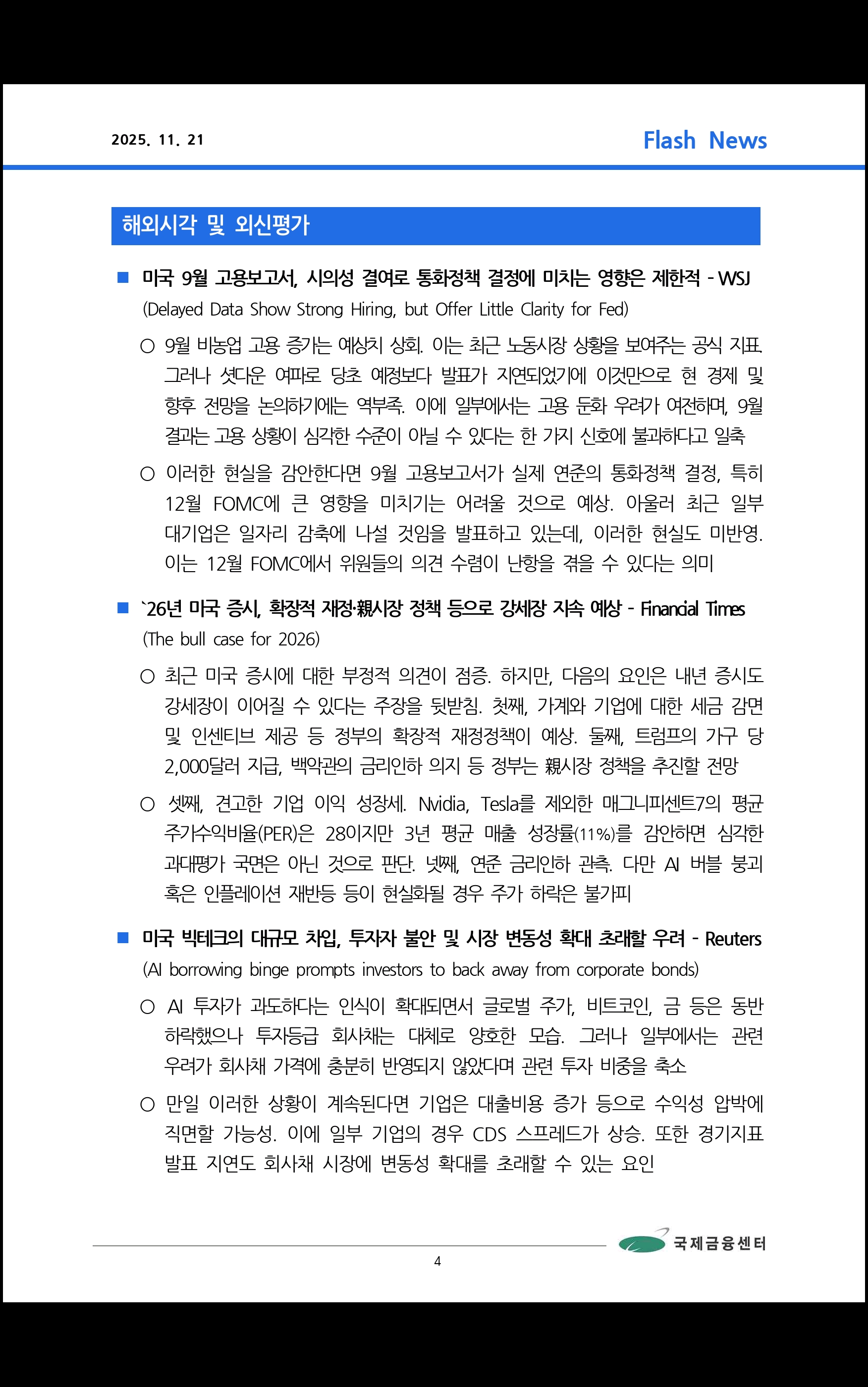 데일리 브리핑 ('25.11.21 국제금융센터)