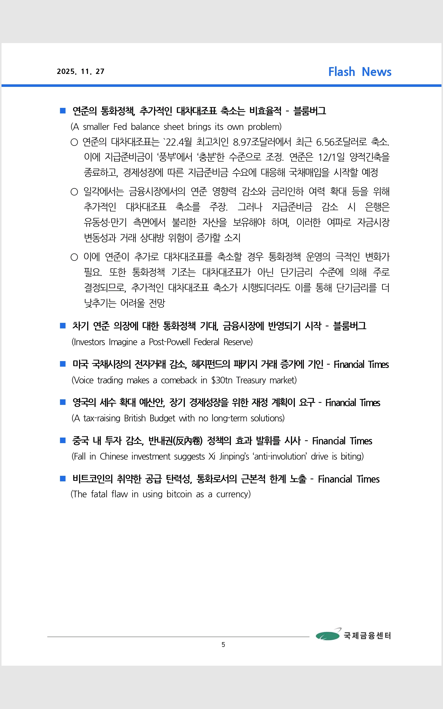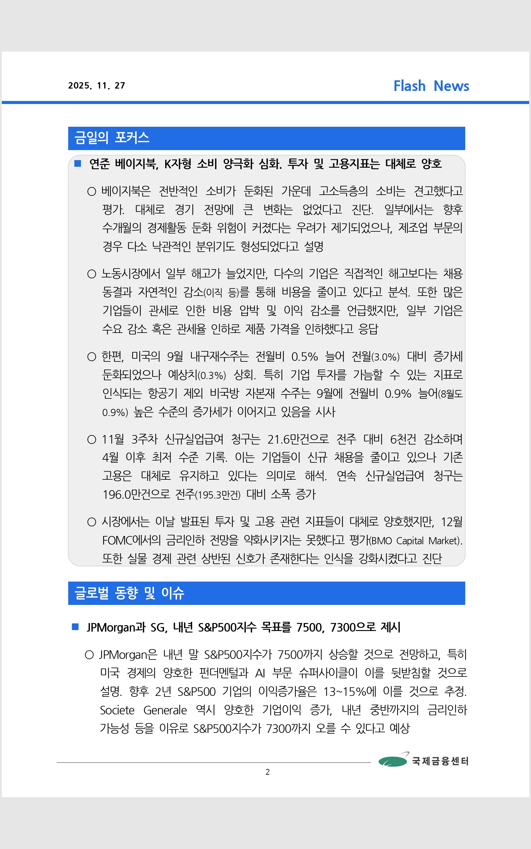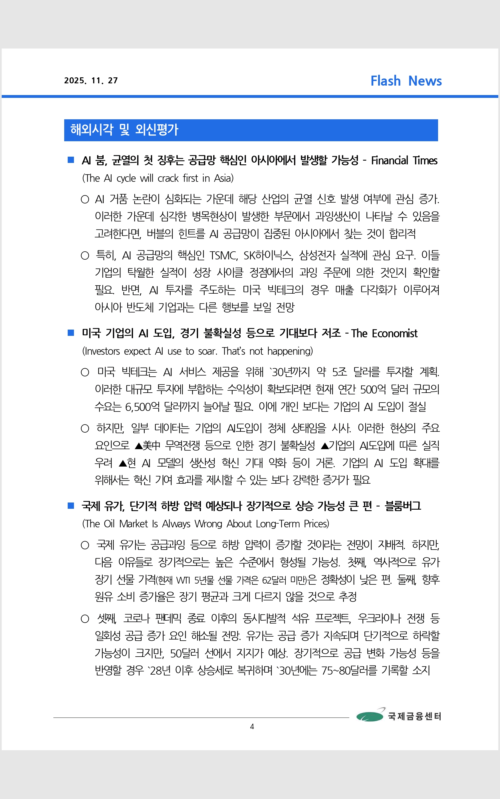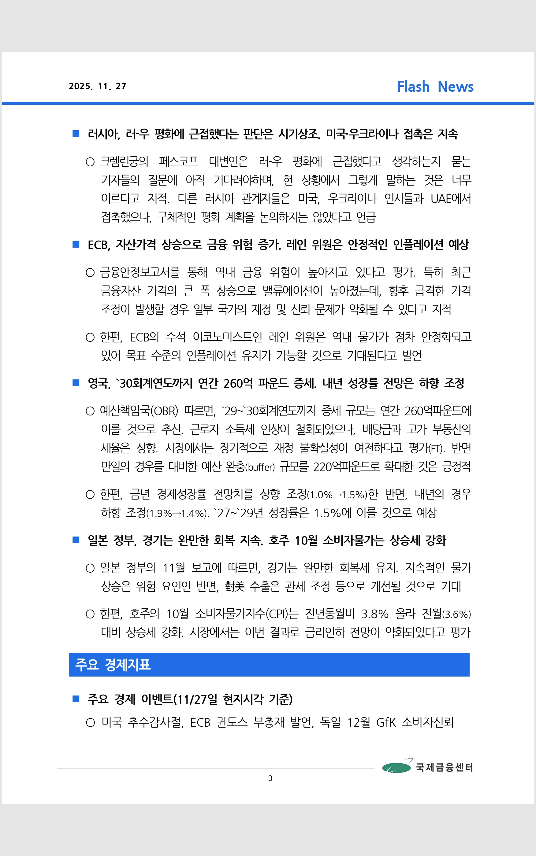 데일리 브리핑 ('25.11.27 국제금융센터)