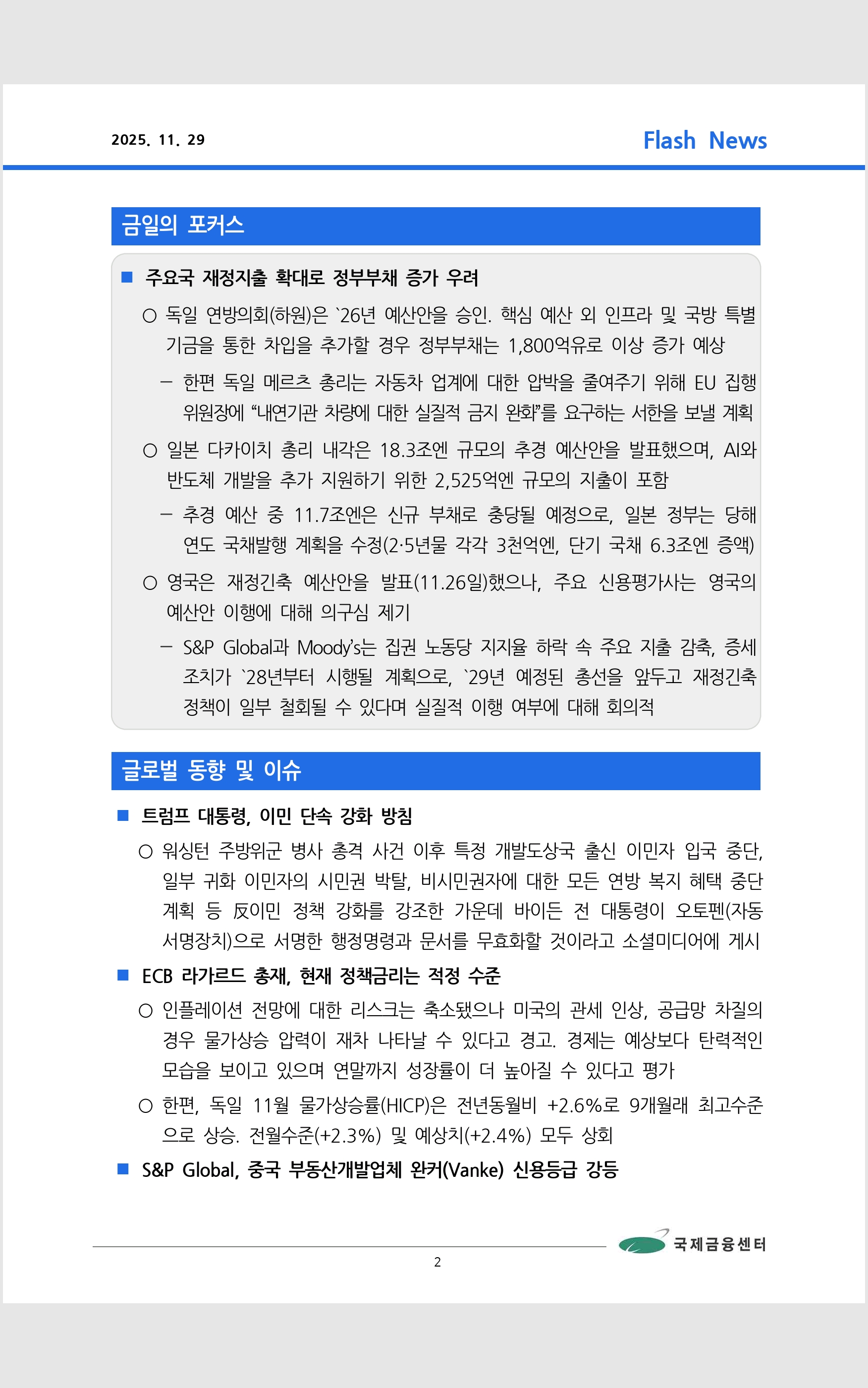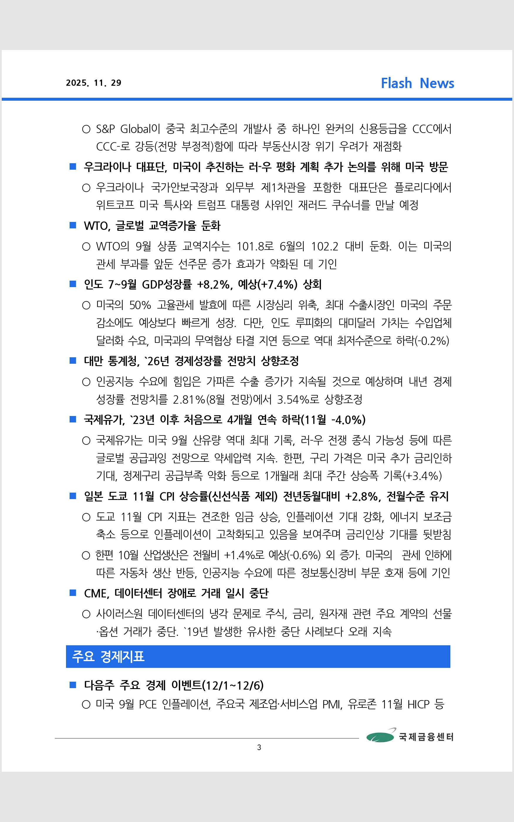 데일리 브리핑 ('25.11.29 국제금융센터)