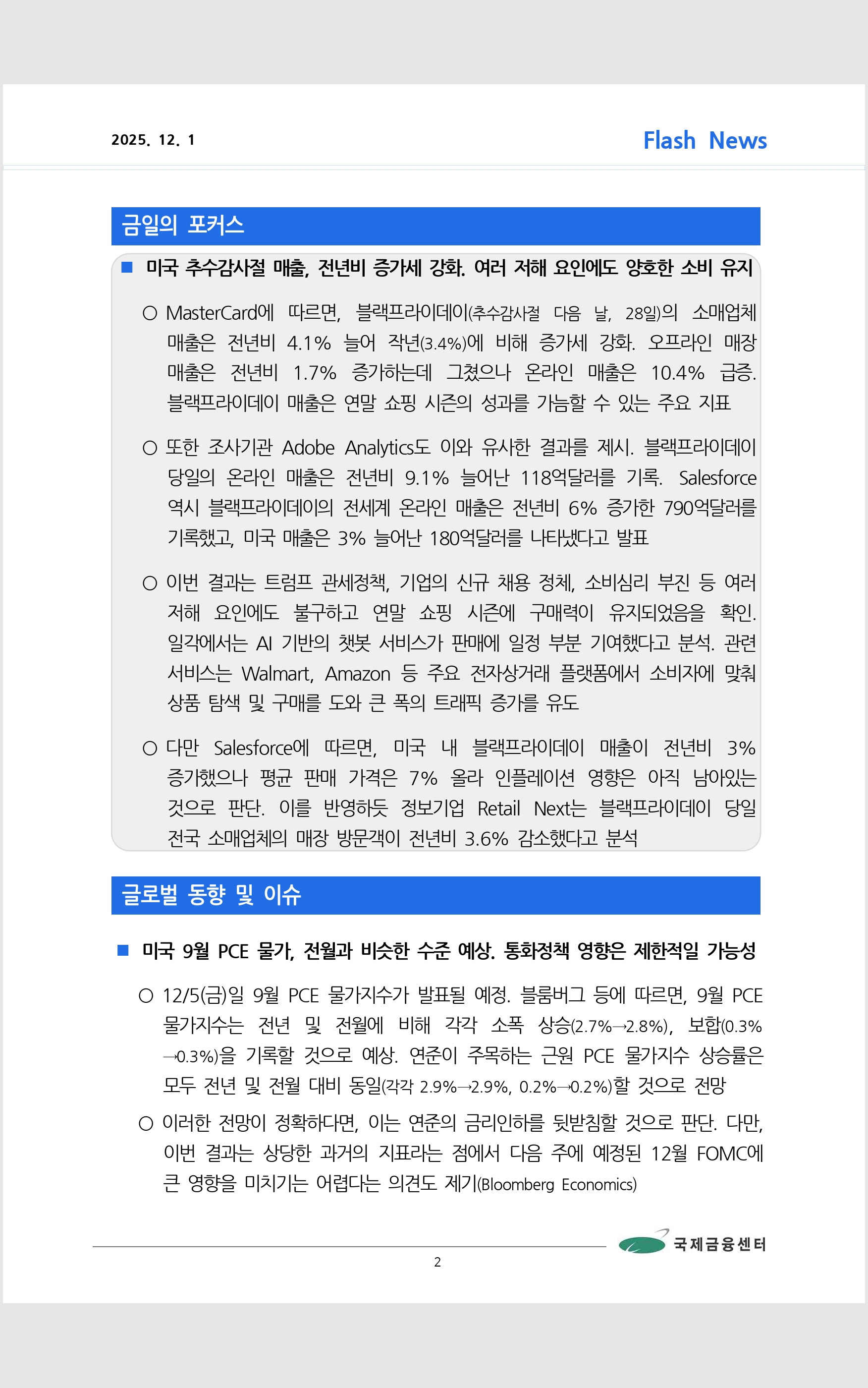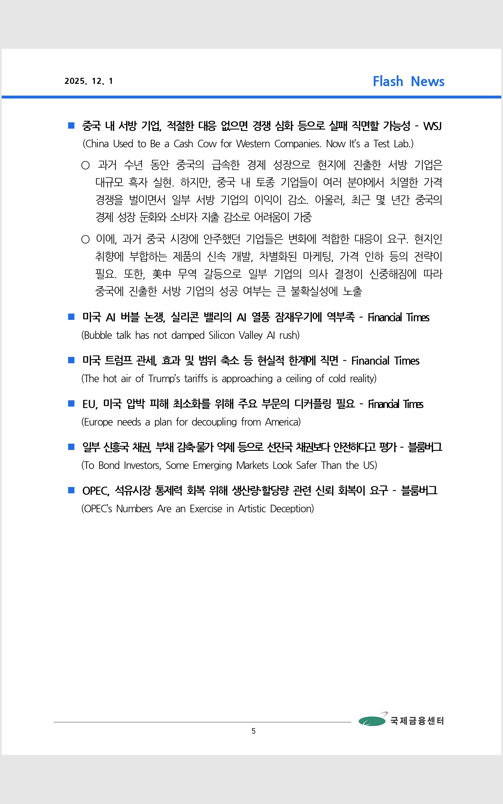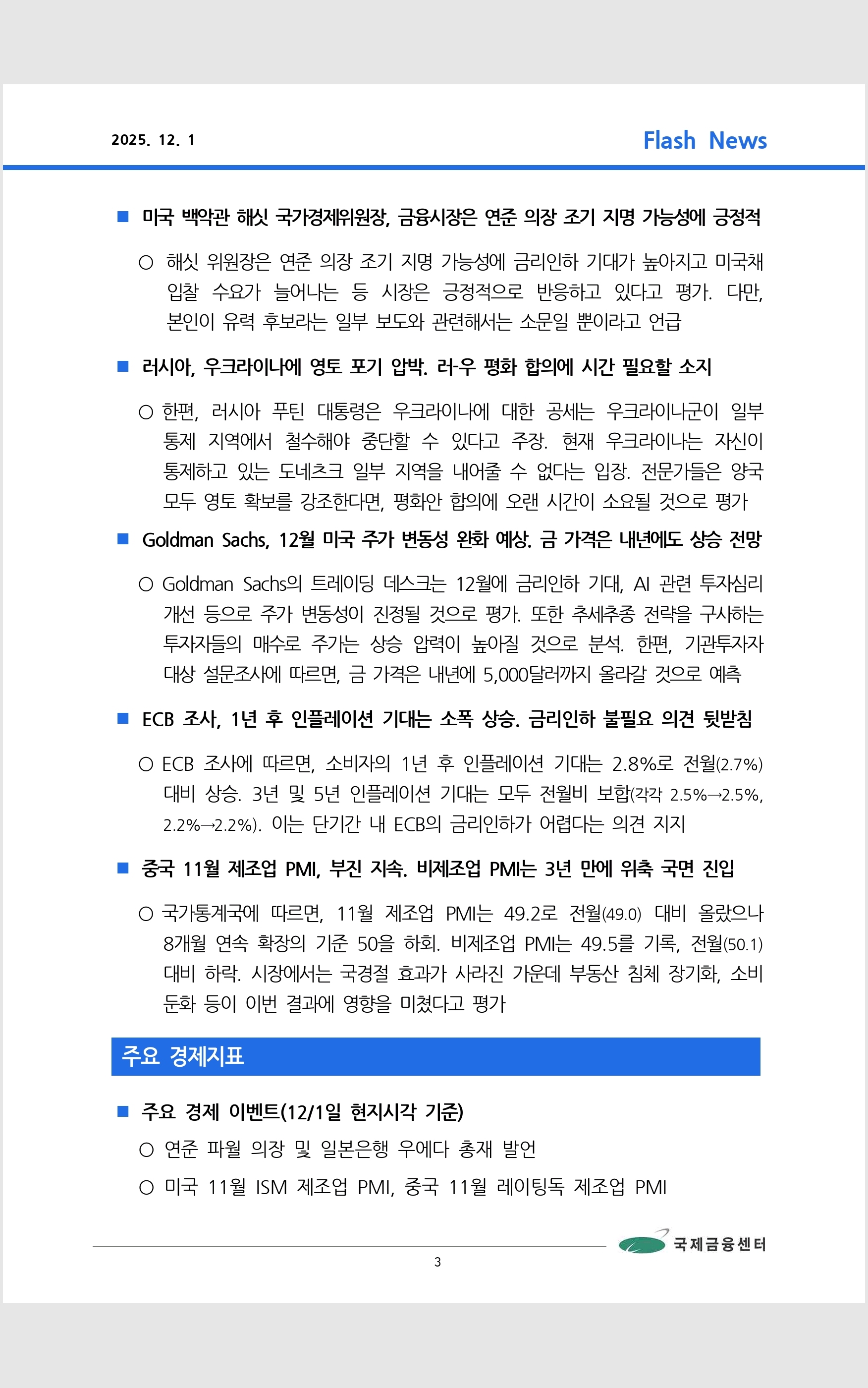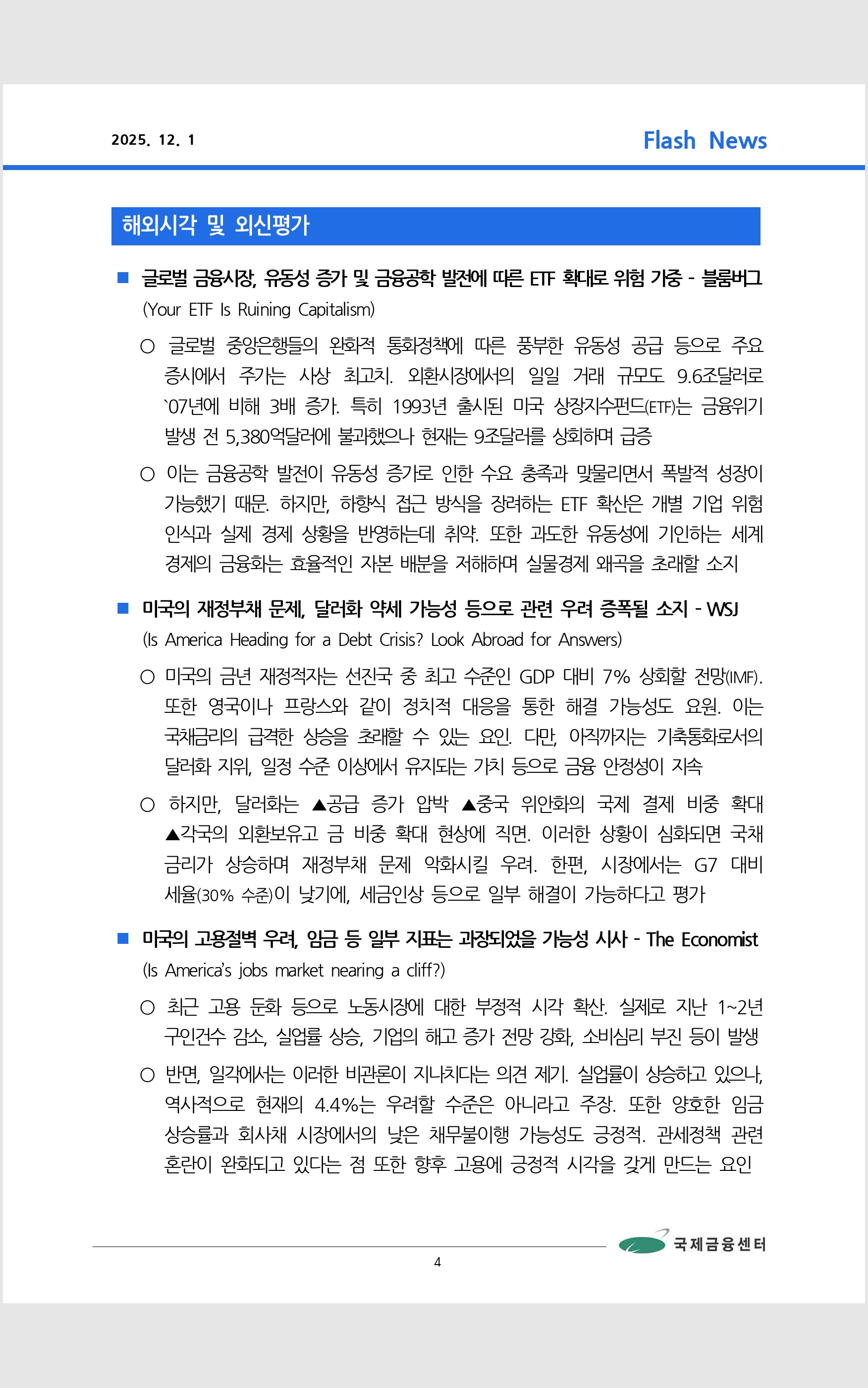 데일리 브리핑 ('25.12.1 국제금융센터)