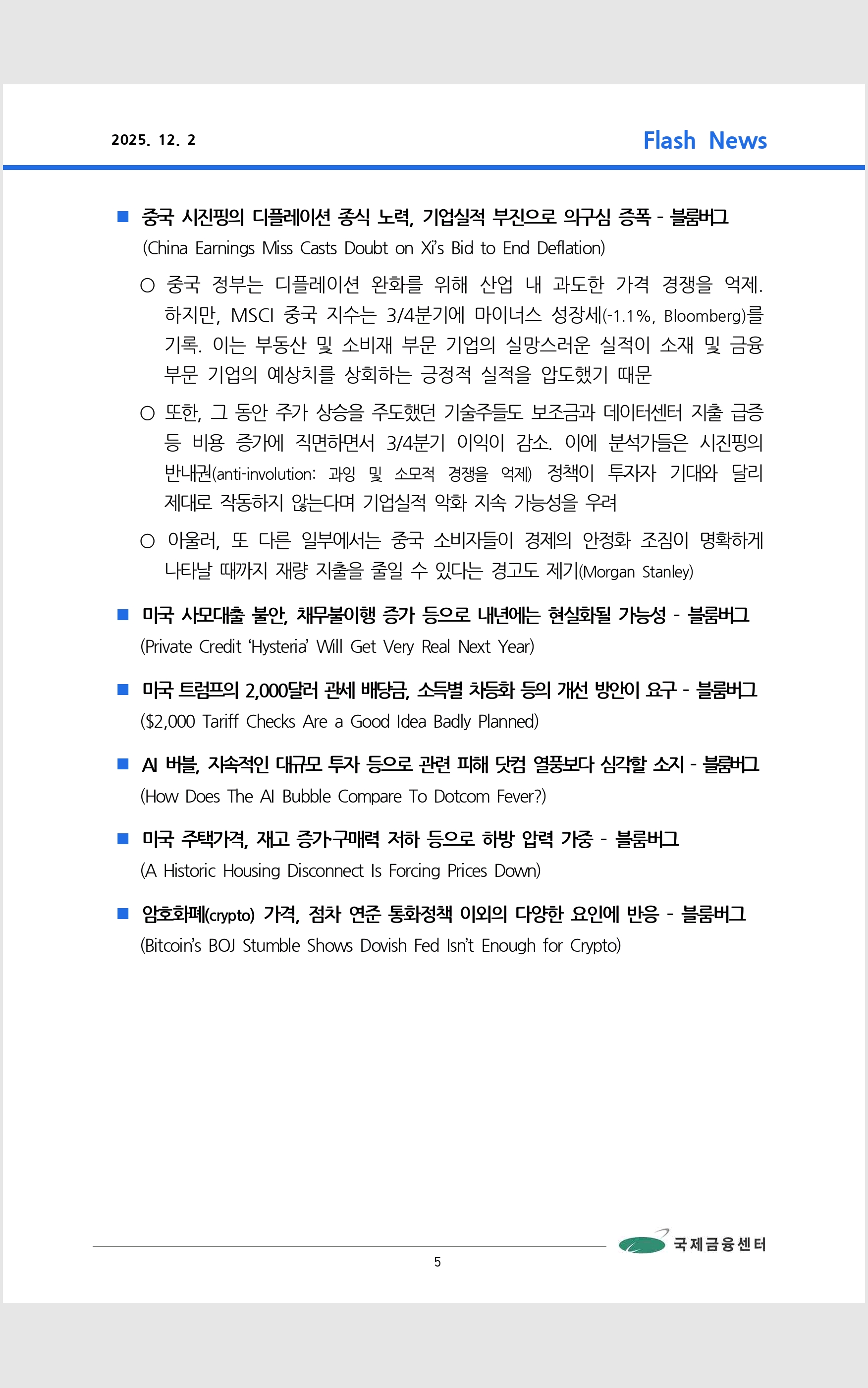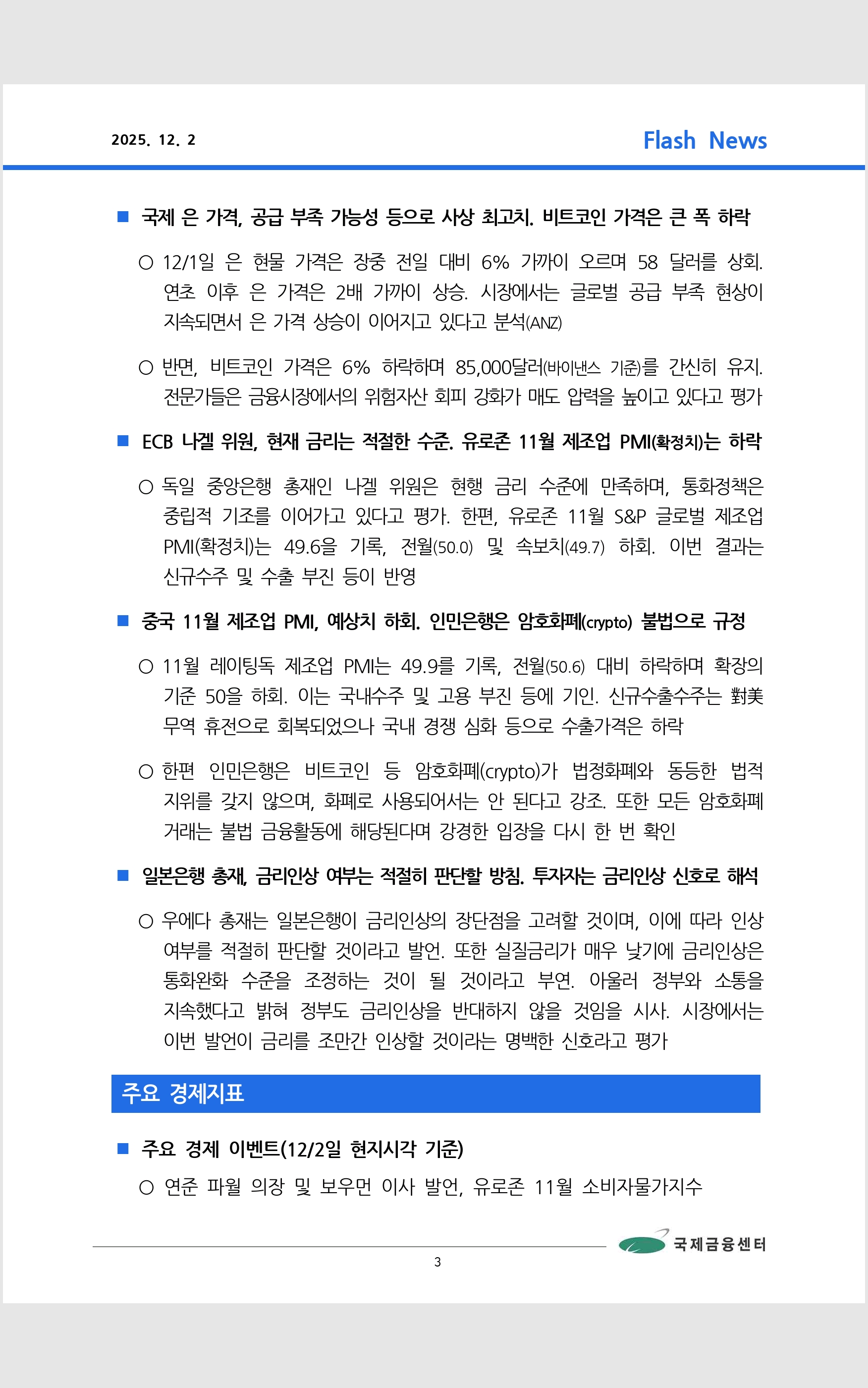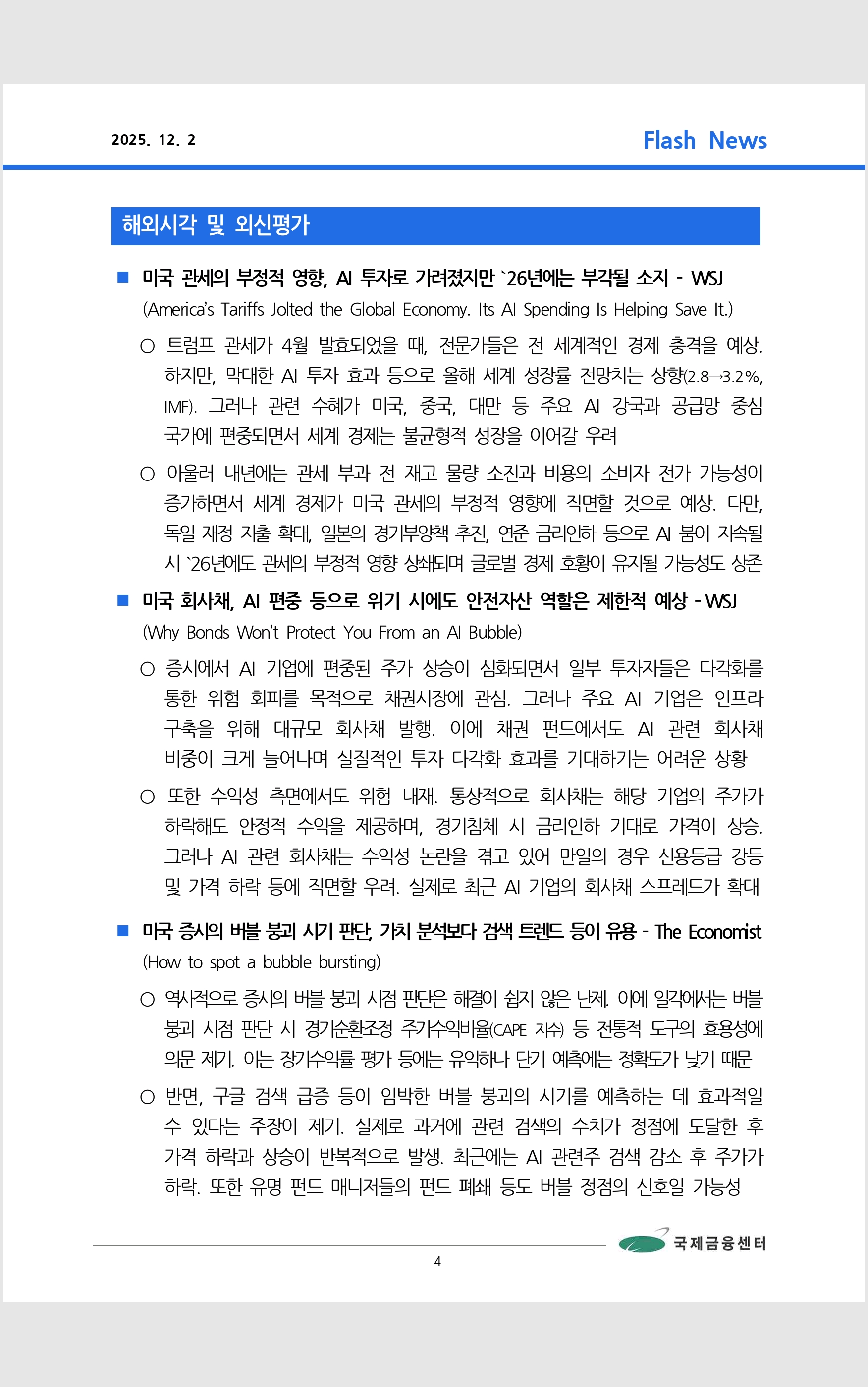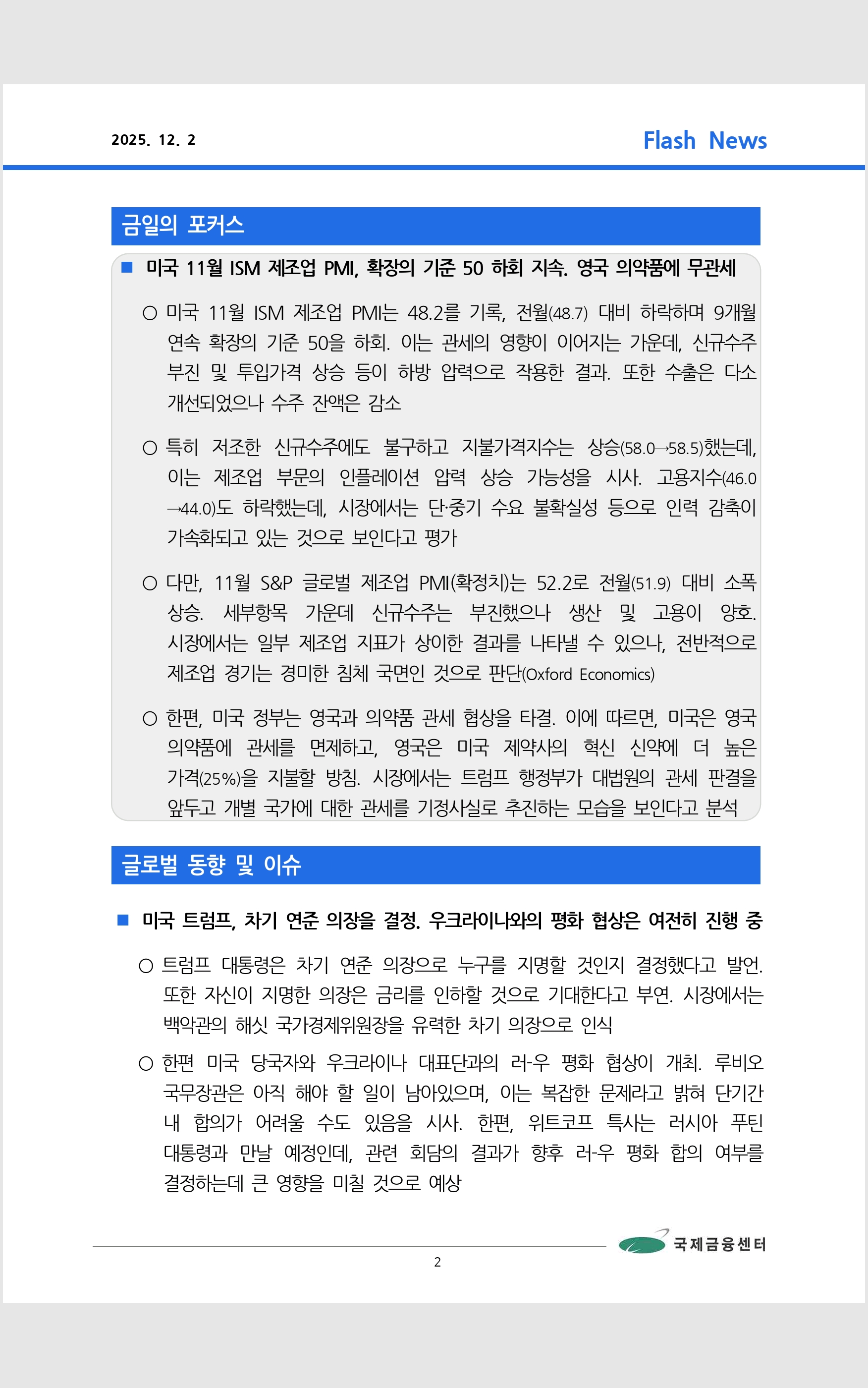 데일리 브리핑 ('25.12.2 국제금융센터)