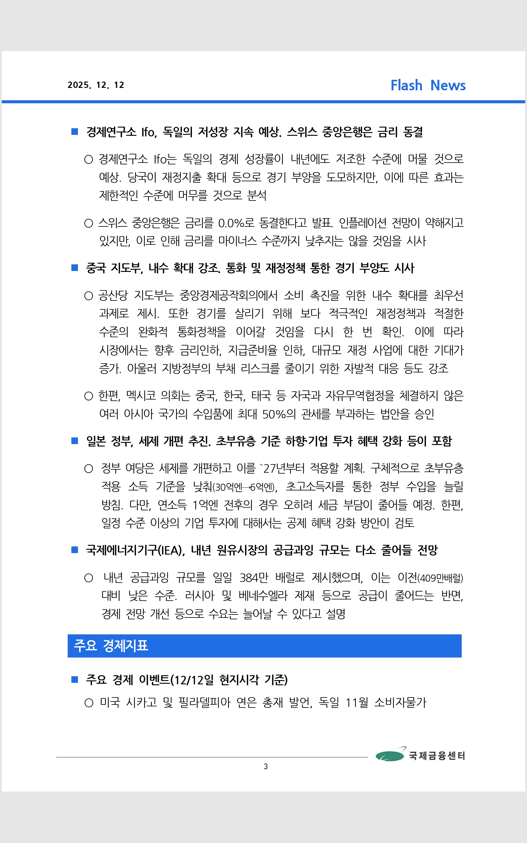 데일리 브리핑 ('25.12.11 국제금융센터)
